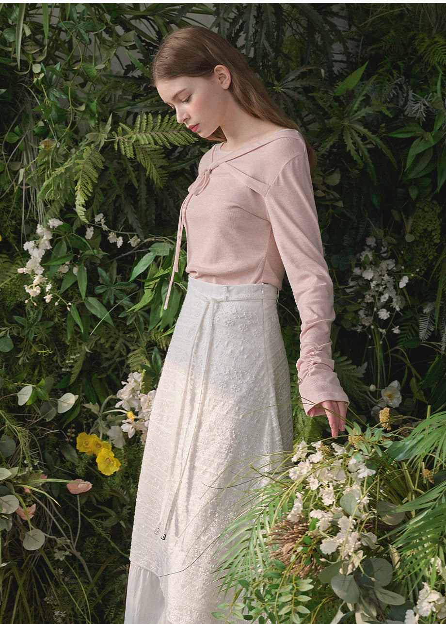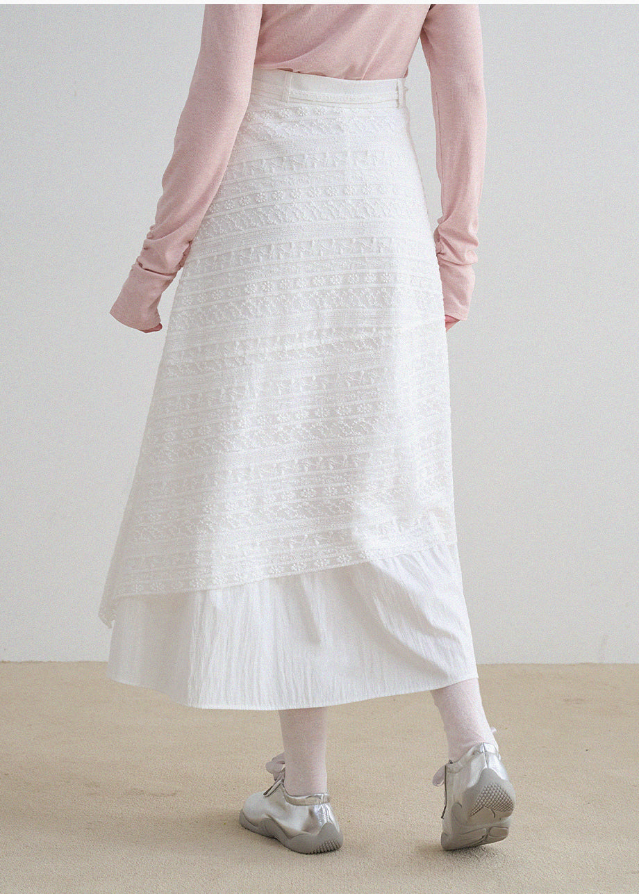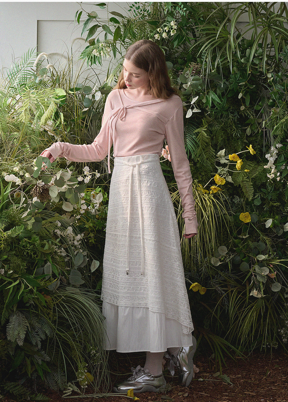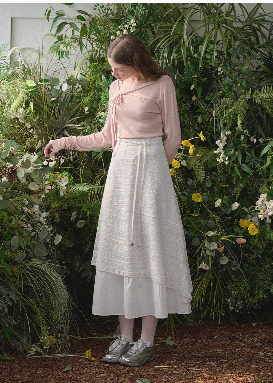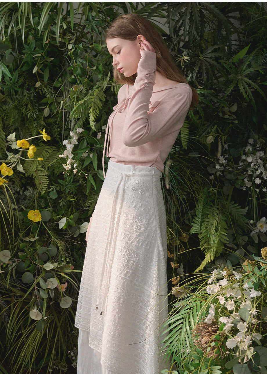 ロマンティックなムードで着用できるロングスカートです。レースストラップが付属し、お好みでコーデしてフェミニンな印象に仕上げられます。レイヤードされたデザインが魅力的なユニークさを添えています。*装飾が施された製品のため、クリーニング専門店でのお手入れをおすすめいたします。