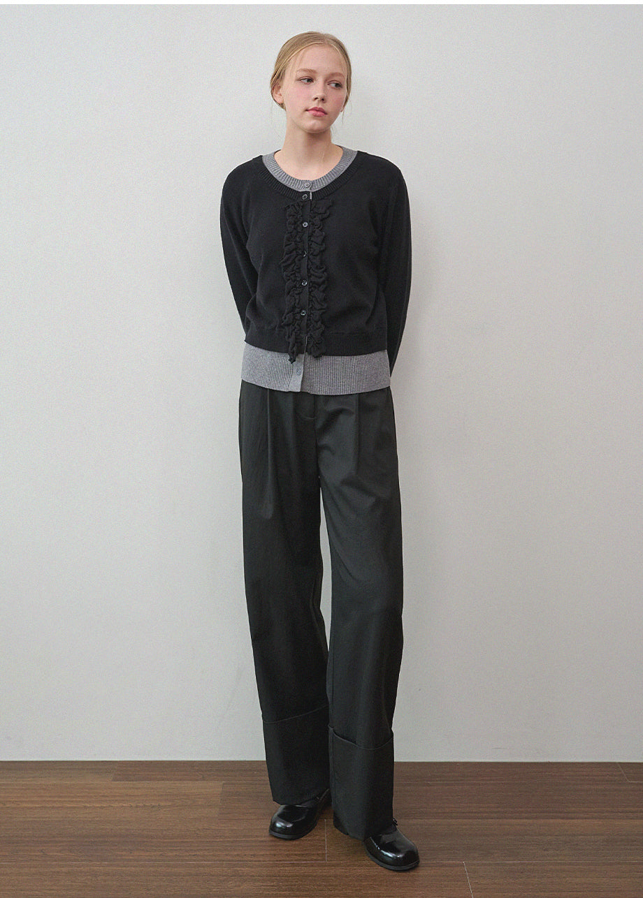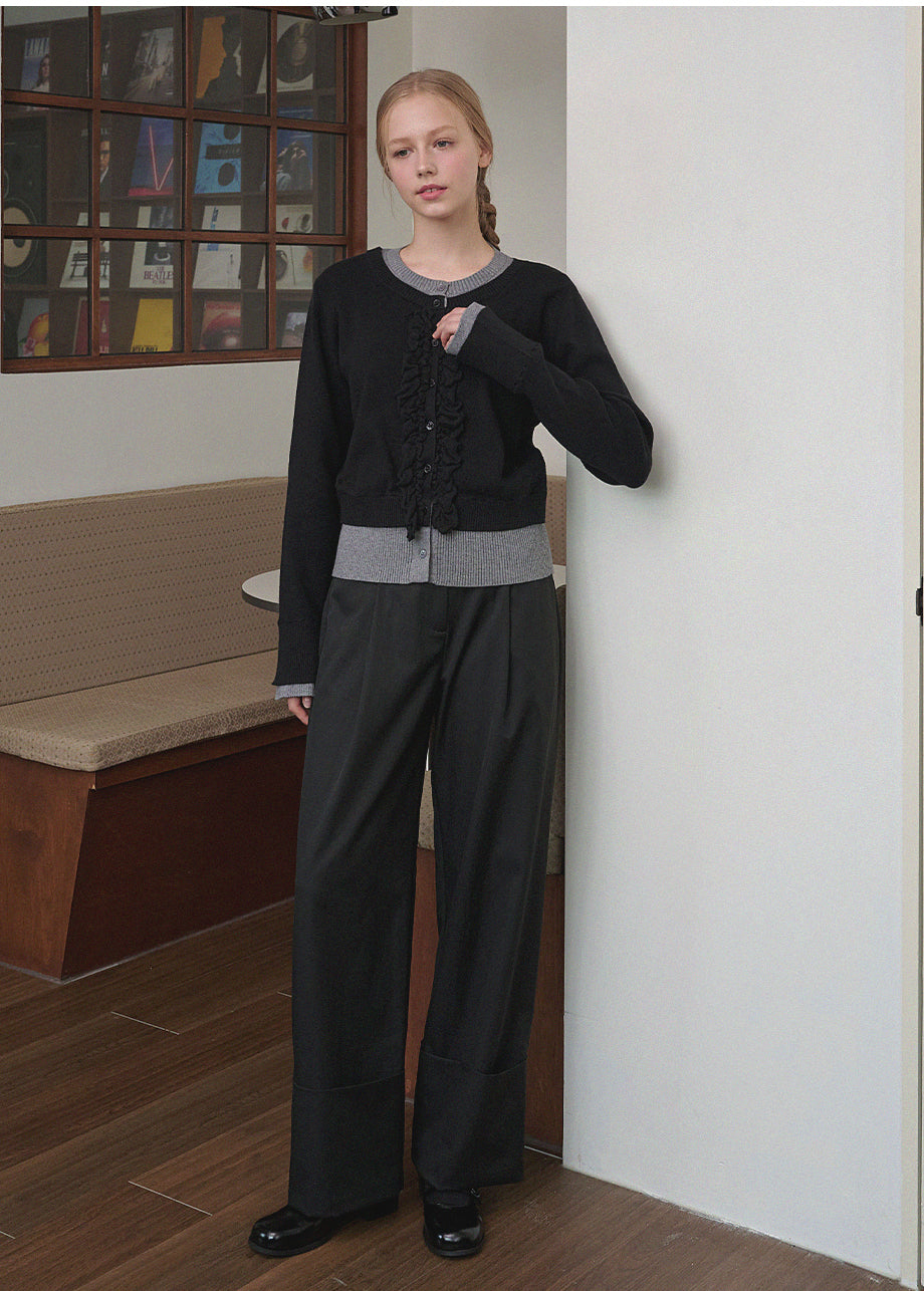 程よくハリ感のある素材を使用した、ヴィンテージライクなワイドパンツ。リンクル素材の独特な風合いが、こなれ感を演出してくれます。ロールアップできる裾や、ゆったりとしたマキシシルエットで、カジュアルながらもスタイリッシュな着こなしに。ウエスト後ろの切り替えディテールや、ポケット横のペンダントが、デザイン性を高めてくれます。*装飾が施された製品のため、クリーニング専門店でのお手入れをおすすめいたします。