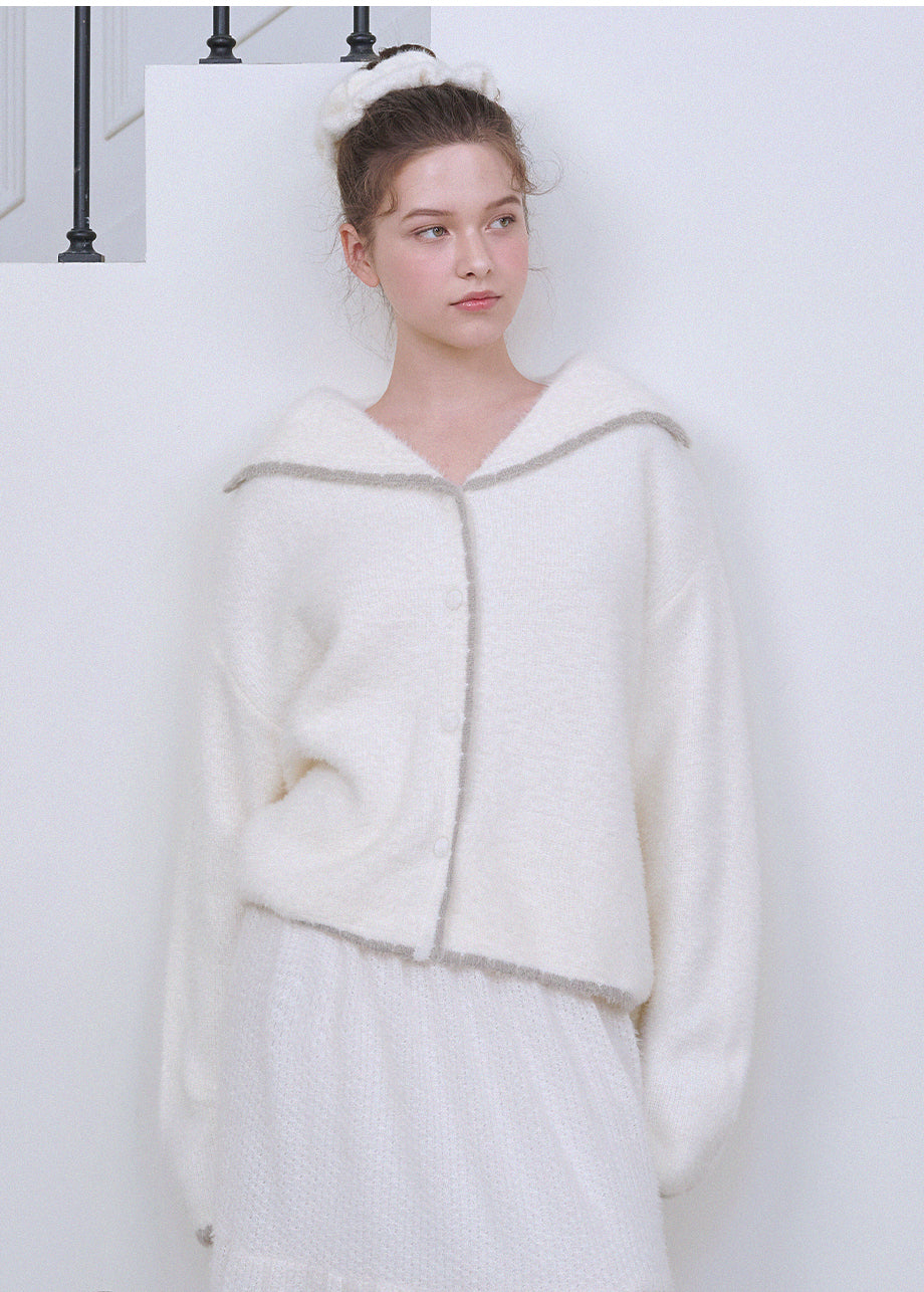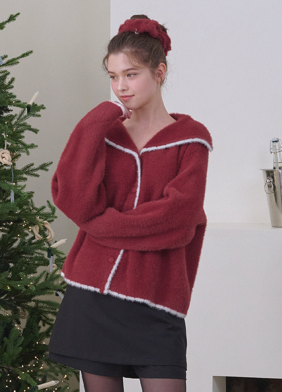 ラブリービンテージムードのカーディガンとシュシュのセットです。抜け毛を最小限に抑えつつ密度感を高めたヘアリー糸を使用し、シーズンらしい雰囲気とともに柔らかく暖かな着心地が特徴です。オープンネックデザインにルーズフィットで仕立てられ、セットのシュシュでポイントを加えて着用できます。ウェーブラインの配色がポイントとなり、シンプルすぎずに演出が可能です。さまざまなボトムスと相性が良いデザインでおすすめです。カーディガンのバックネック中央にはペンダント装飾を施して仕上げ、シュシュにもラウンドペンダントをあしらい感性豊かに仕上げました。*装飾や特殊な素材を使用した製品のため、クリーニング専門店でのお手入れをおすすめいたします。
