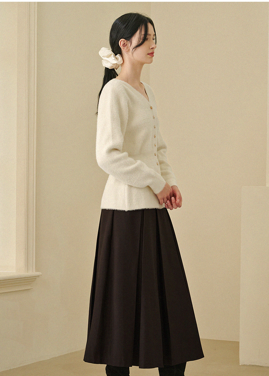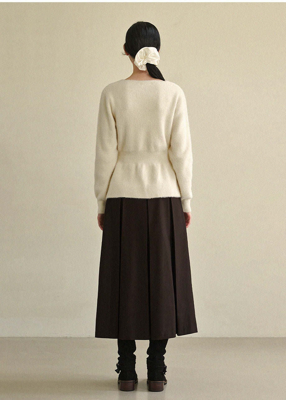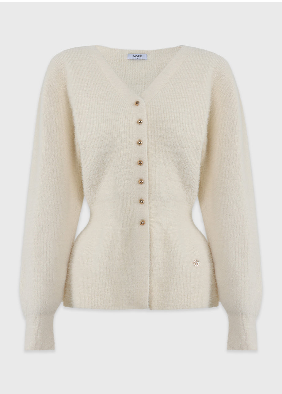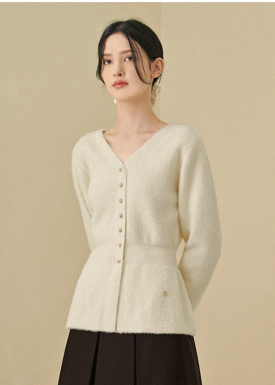 フェミニンムードで着用できるカーディガンです。密度の高い編み地と耐久性に優れた糸を使用し、クオリティを高めました。