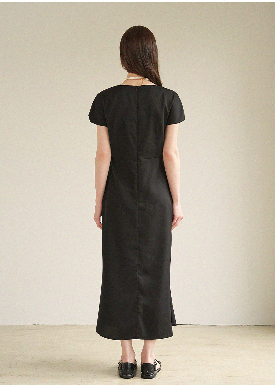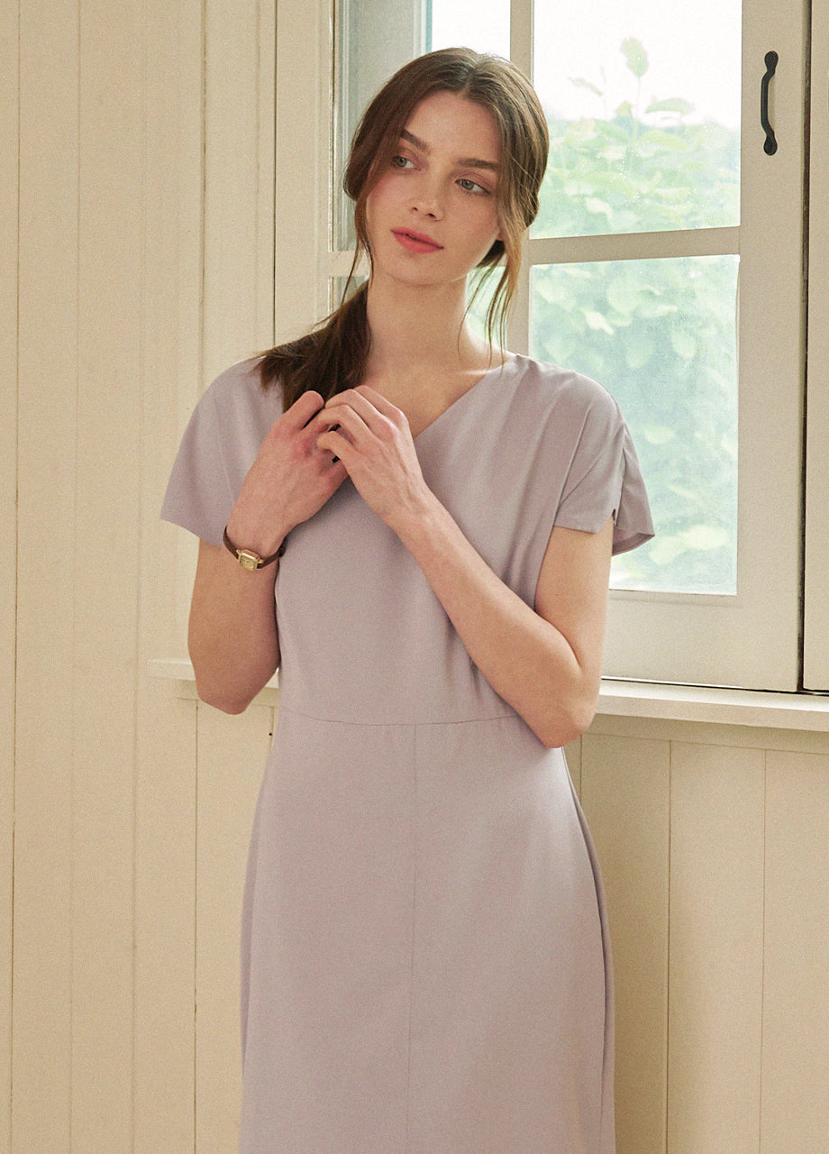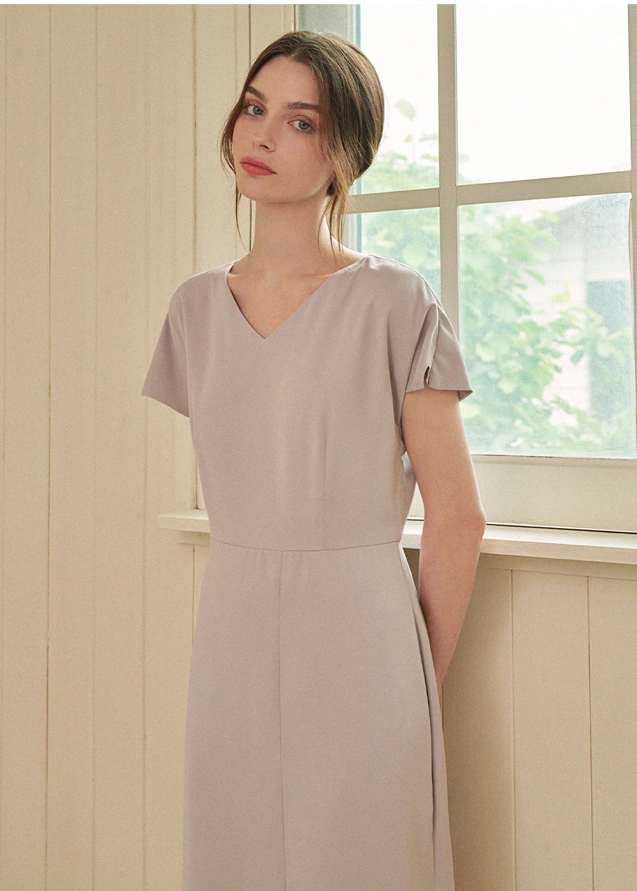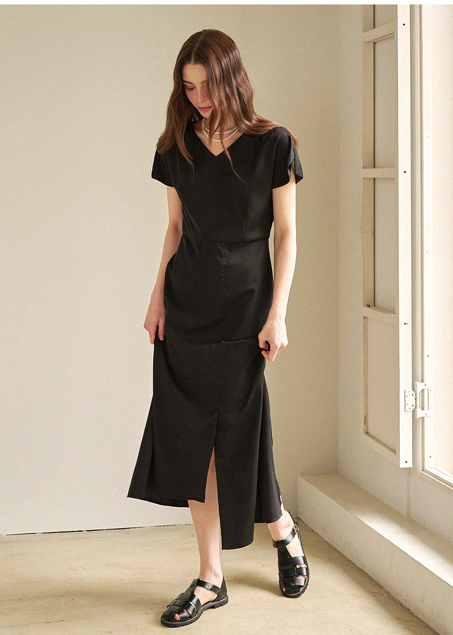 フェミニンでデイリーなムードのワンピースです。軽くて丈夫な素材を使用し、フィット感とクオリティを高めました。Vネックデザインとロング丈のマーメイドシルエットで、スリムに見える効果も期待できます。