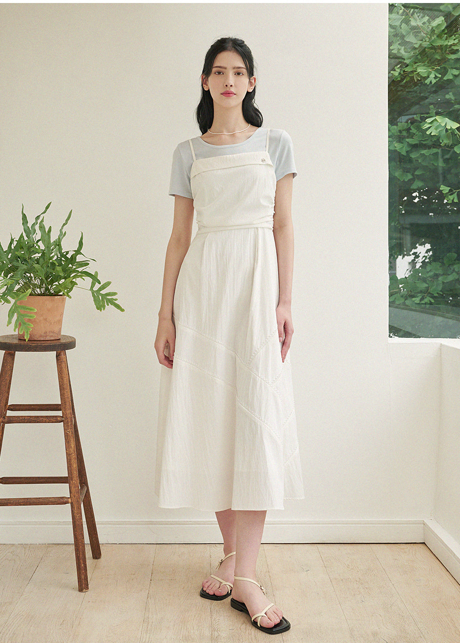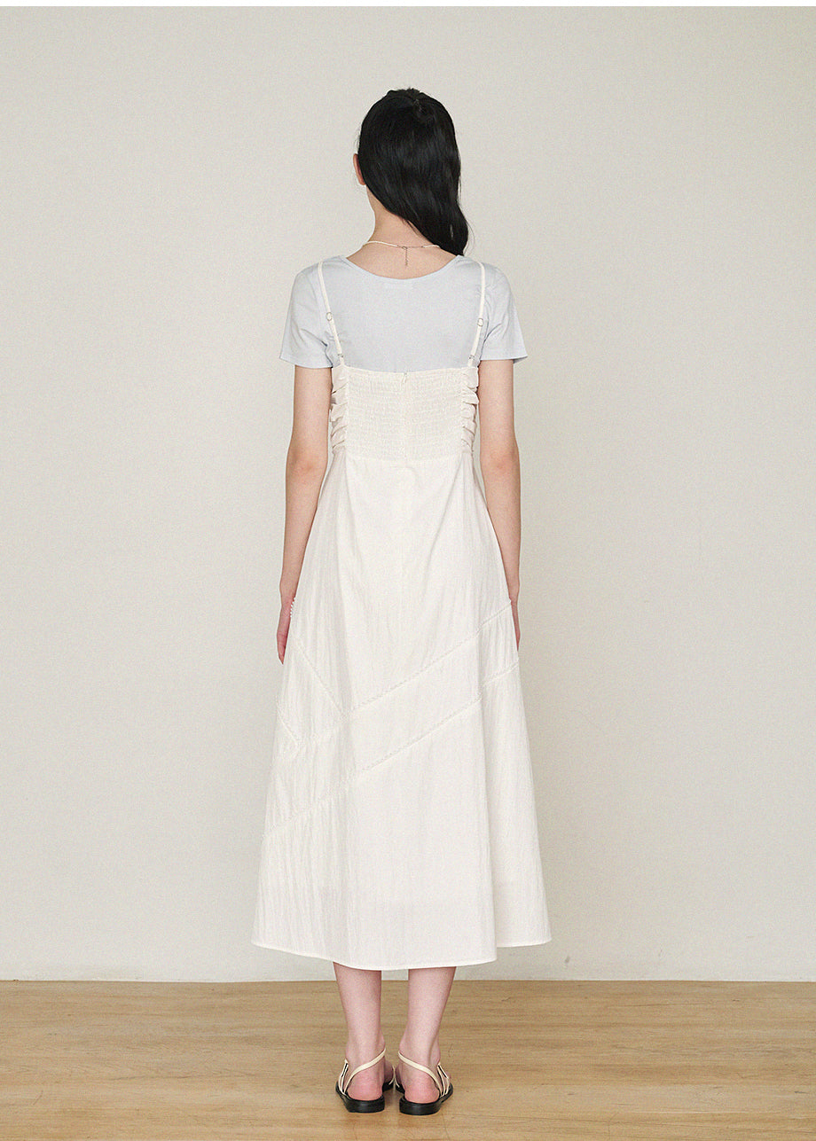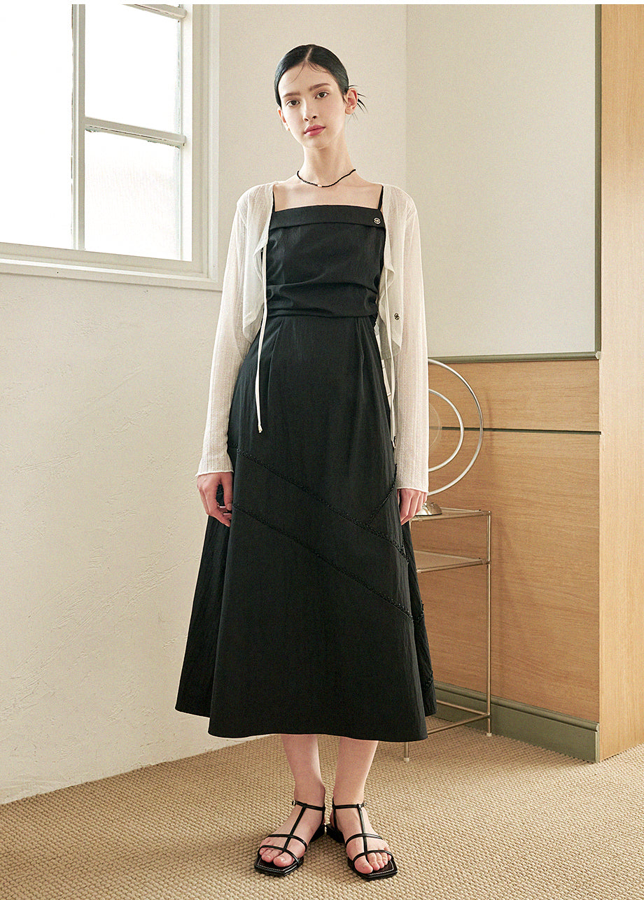 フェミニンでデイリーなムードのビスチェワンピースです。軽量で耐久性のある素材を使用し、フィット感とクオリティを高めました。さらさらとしたテクスチャーで快適な着用が可能です。