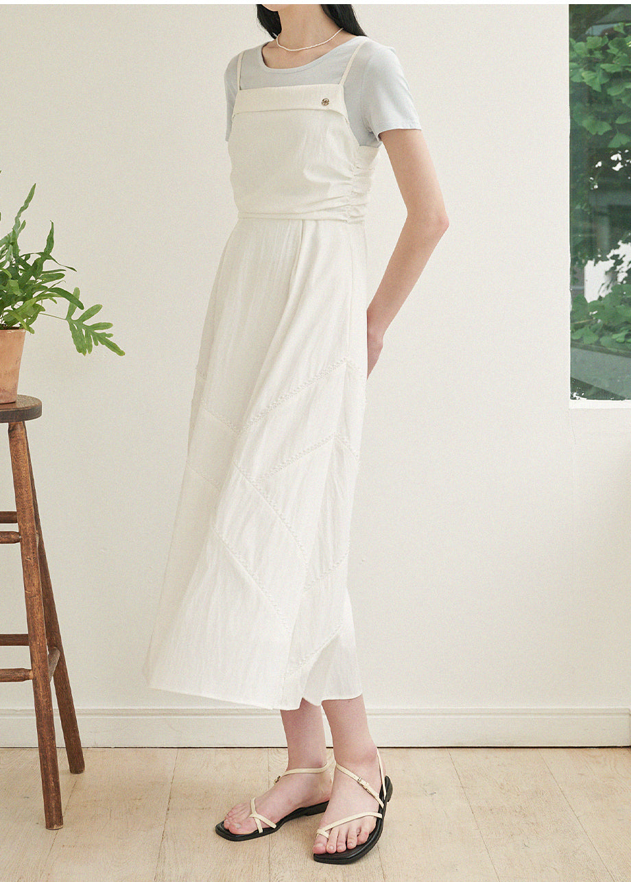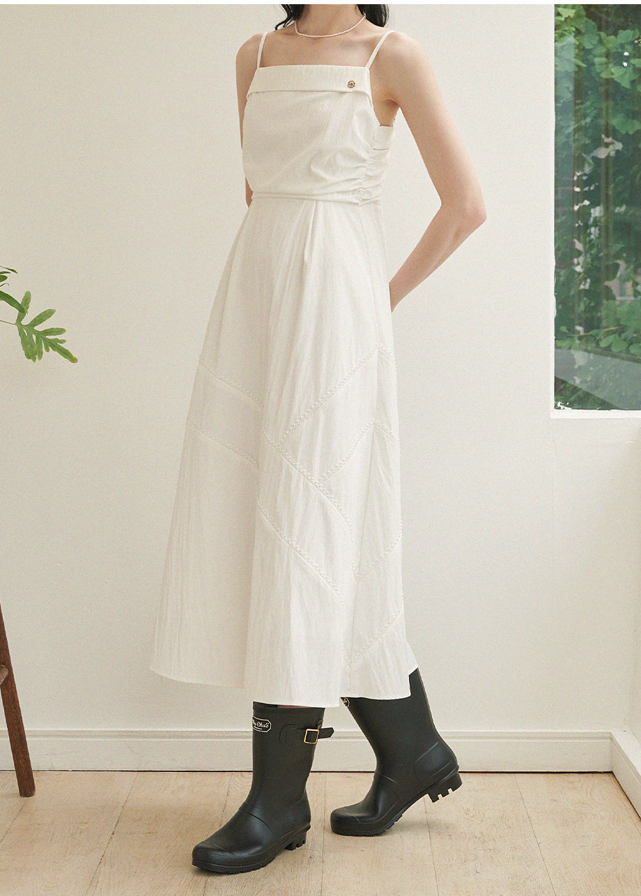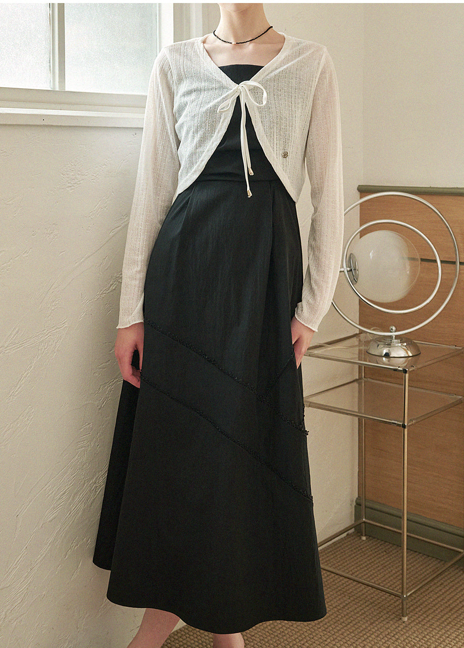 フェミニンでデイリーなムードのビスチェワンピースです。軽量で耐久性のある素材を使用し、フィット感とクオリティを高めました。さらさらとしたテクスチャーで快適な着用が可能です。