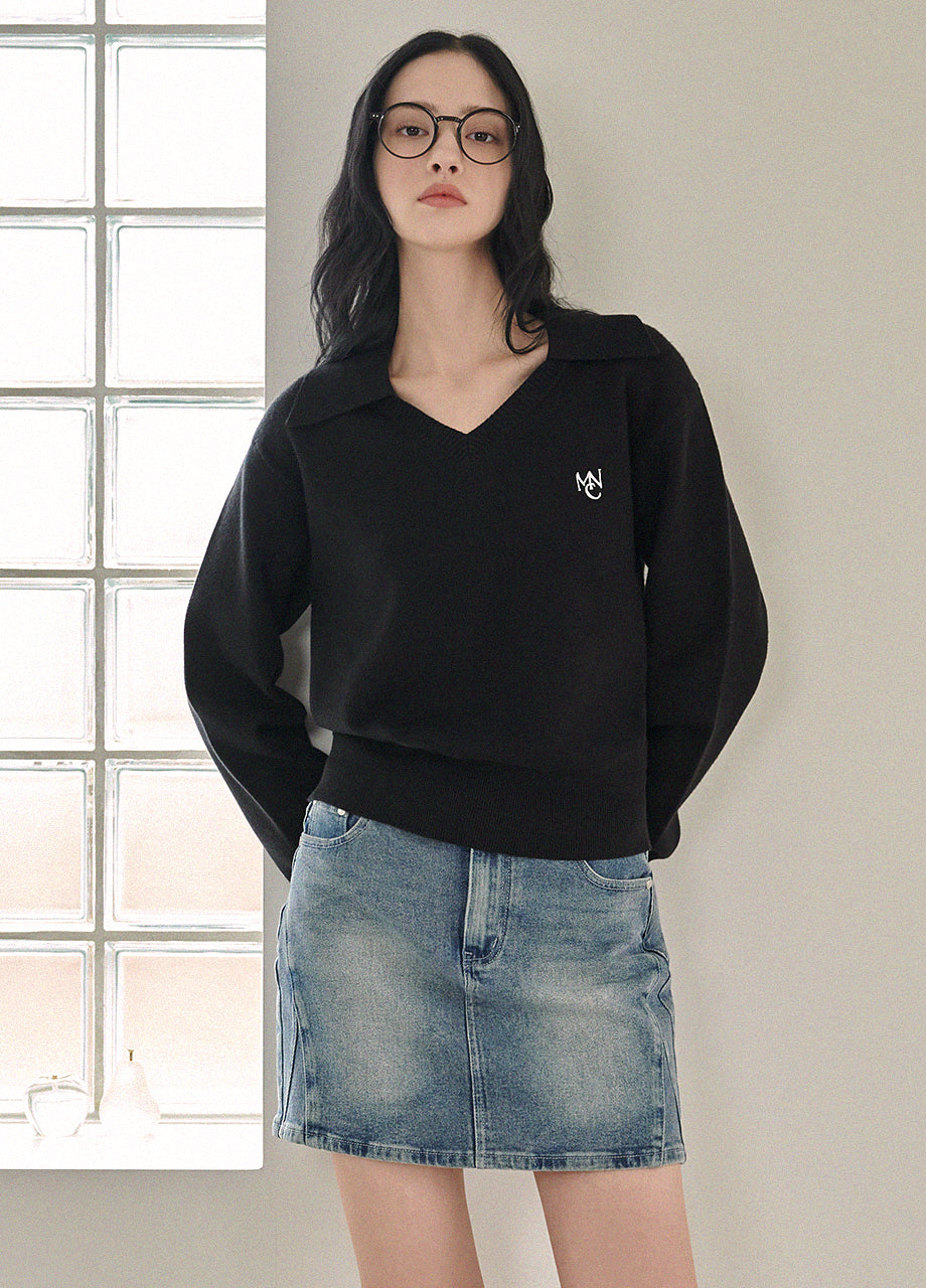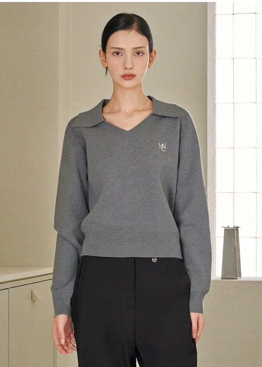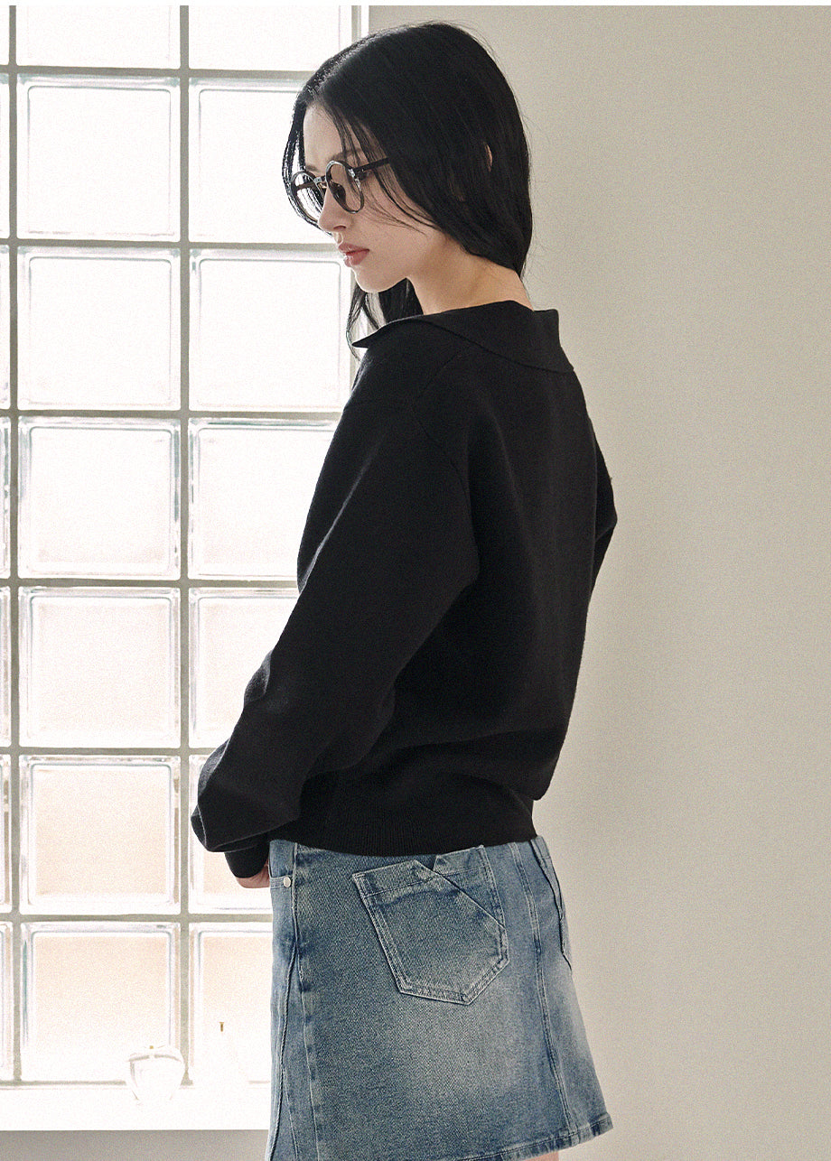 Base Open Collar Loose Fit Knit