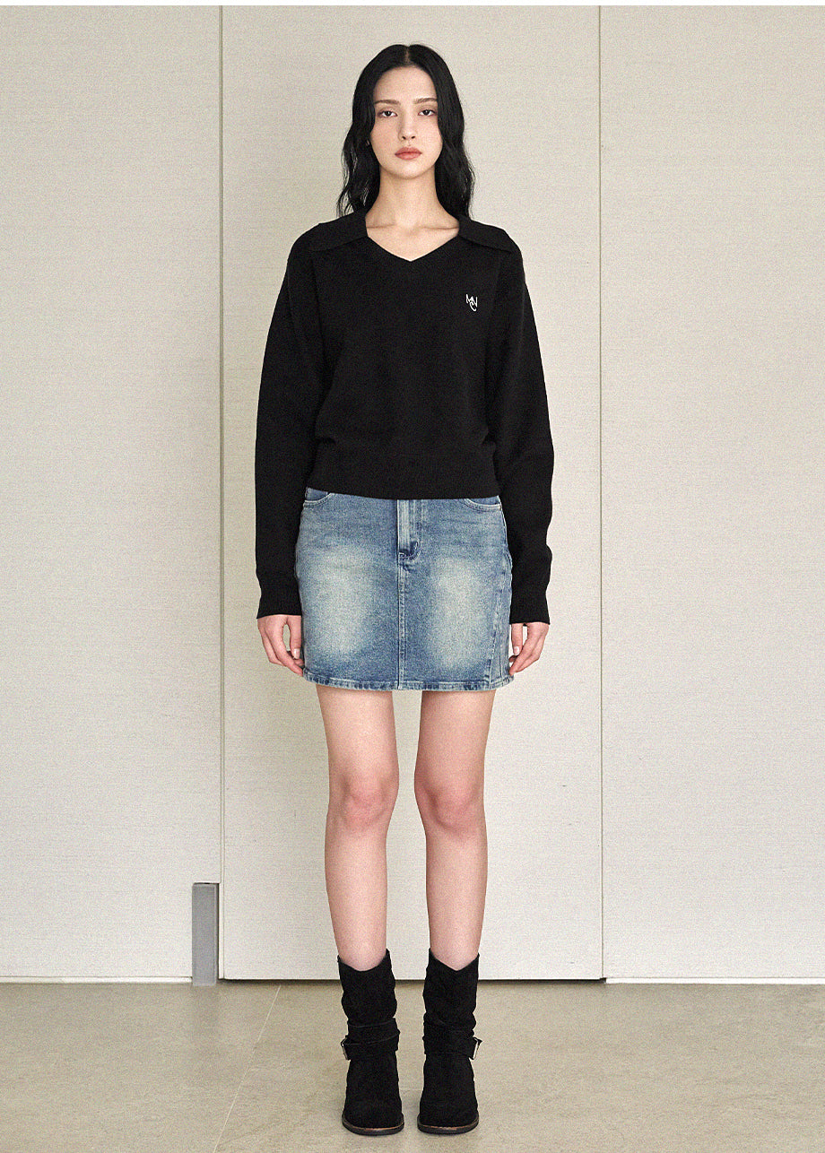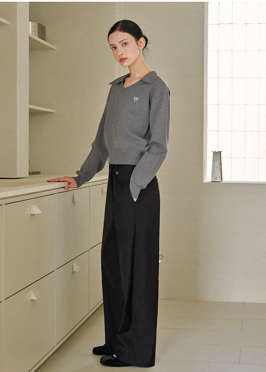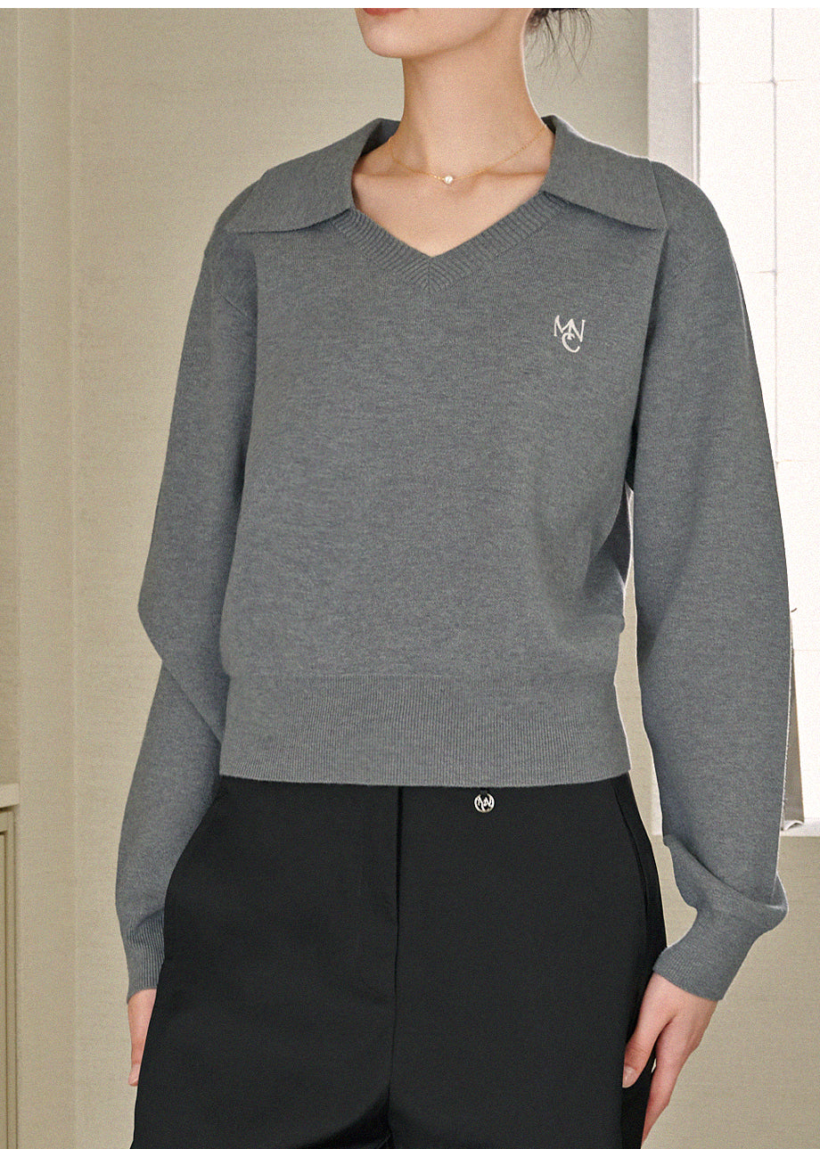 Base Open Collar Loose Fit Knit