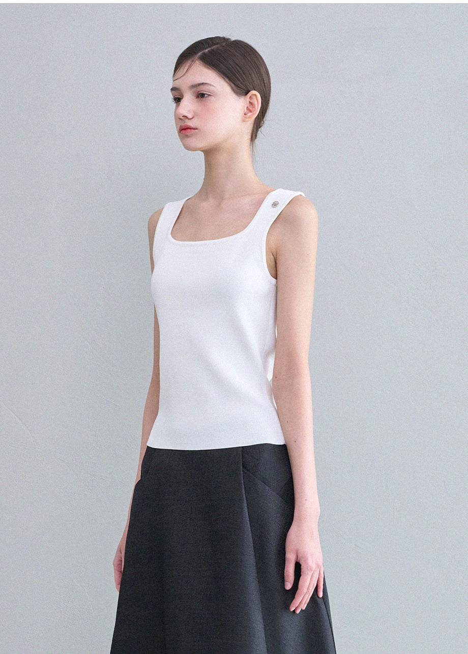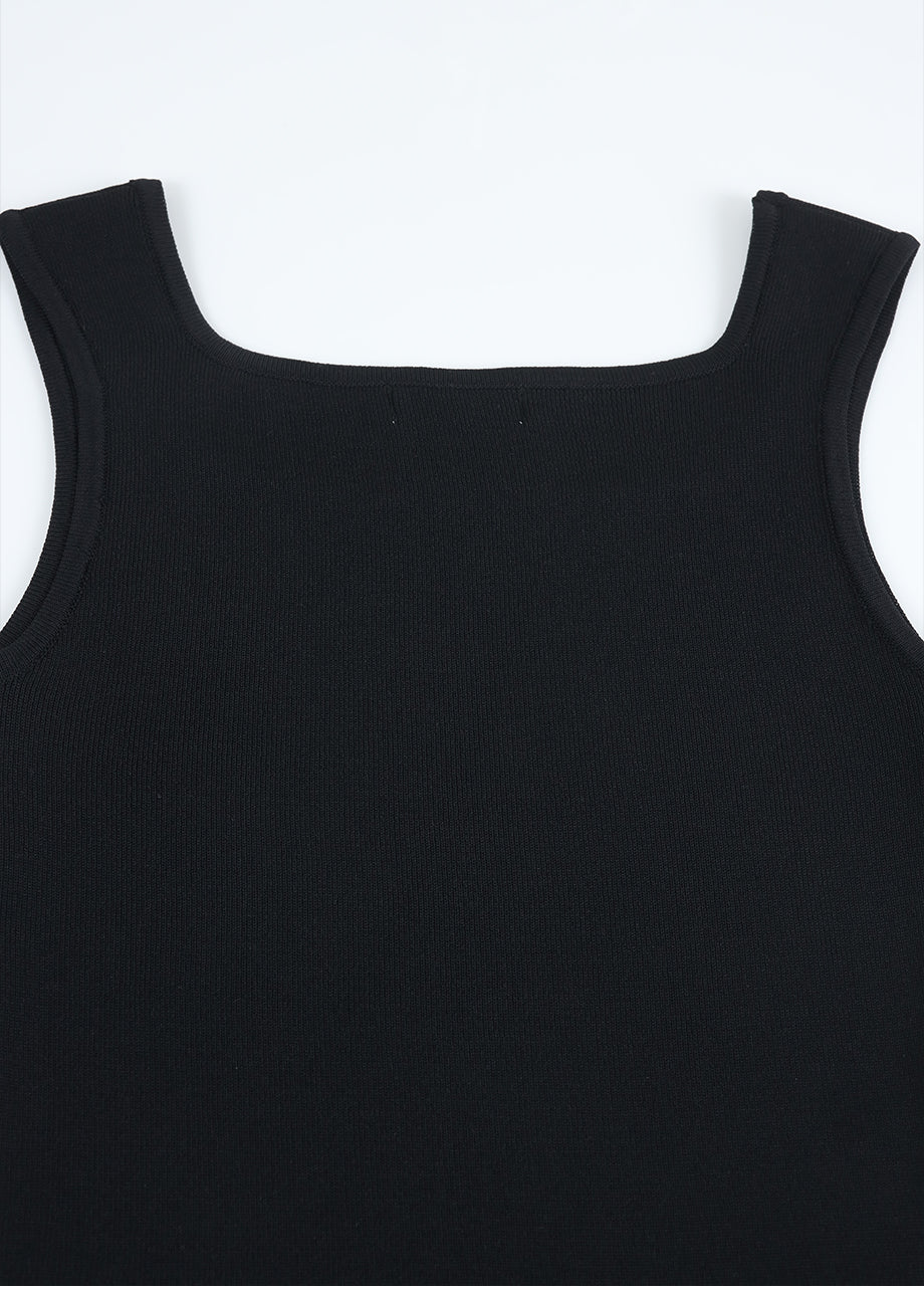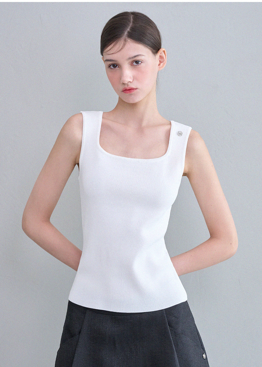 クラシックな感性のニットスリーブレスです。ワイドなスクエアネックとセミ丈で、幅広いスタイリングに活用いただけます*装飾が施された製品のため、クリーニング専門店でのお手入れをおすすめいたします。
