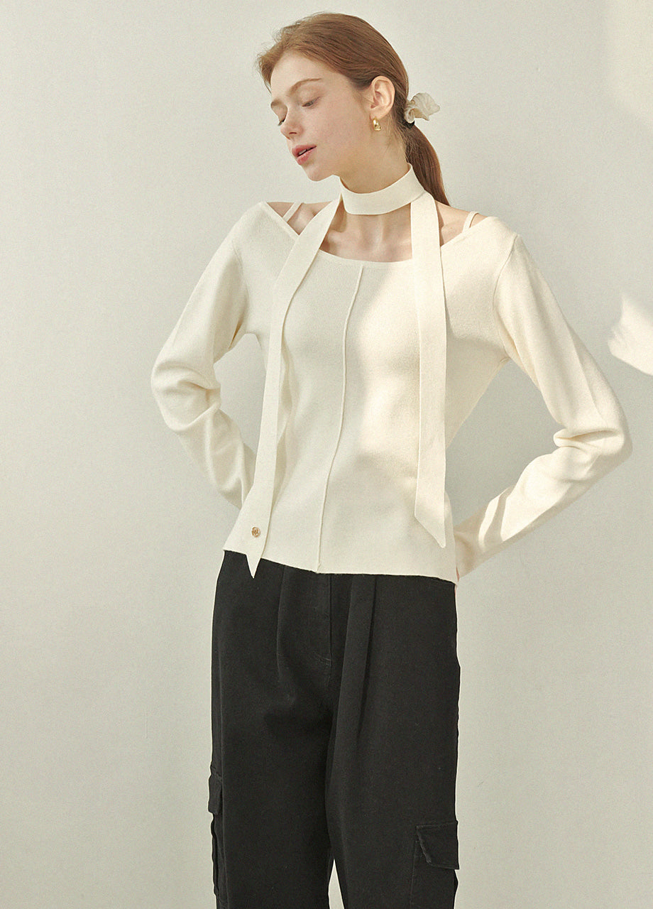 デイリーでフェミニンなムードのニットです。柔らかく繊細な糸を使用しており、お肌が敏感な方でも快適に着用いただけます。
