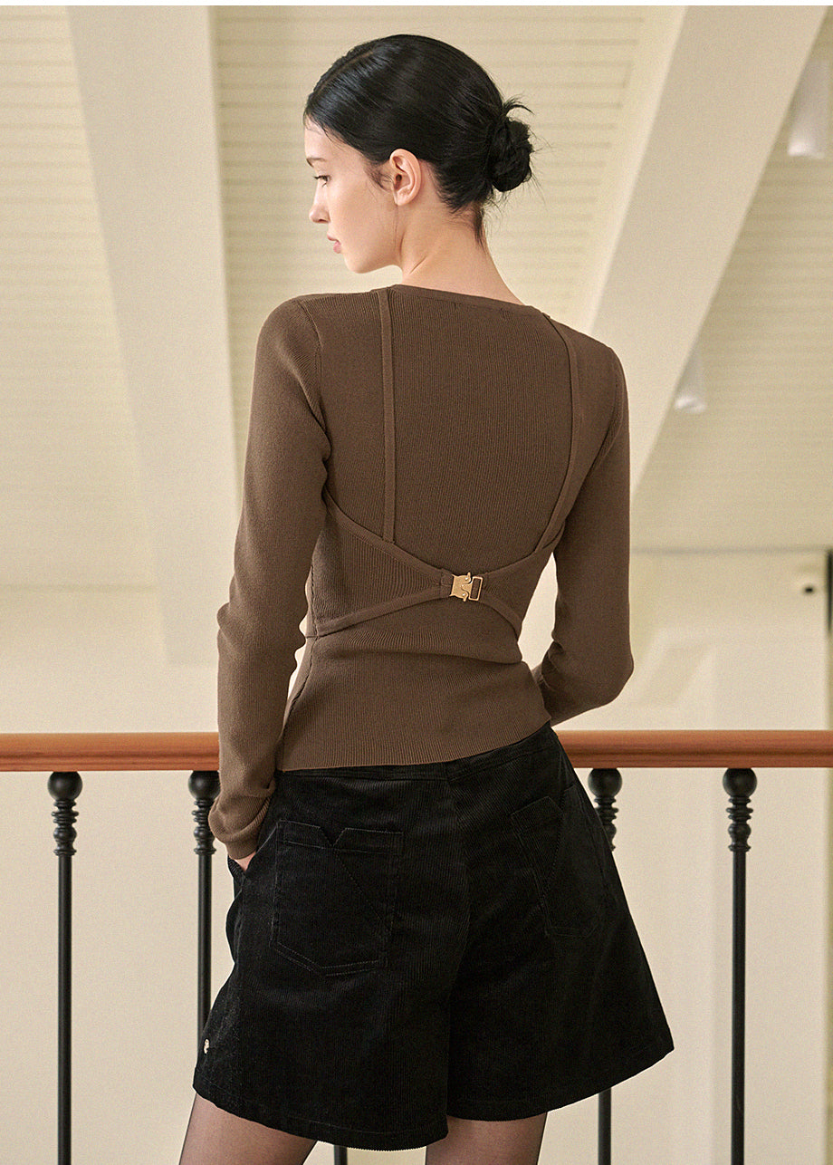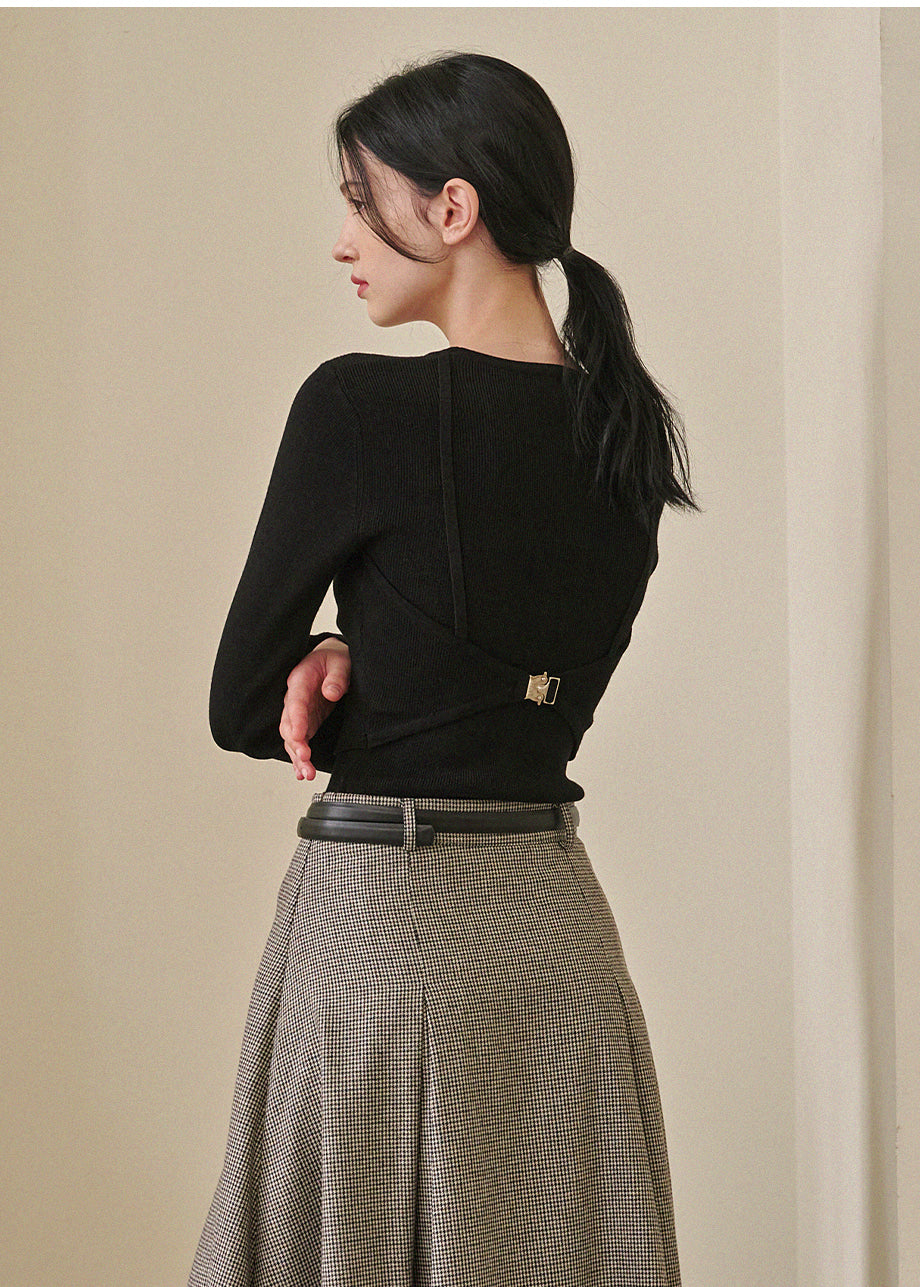フェミニンなムードのニットTシャツです。耐久性と伸縮性に優れた糸を使用し、気になる部分をカバーしながら滑らかなシルエットを演出します。