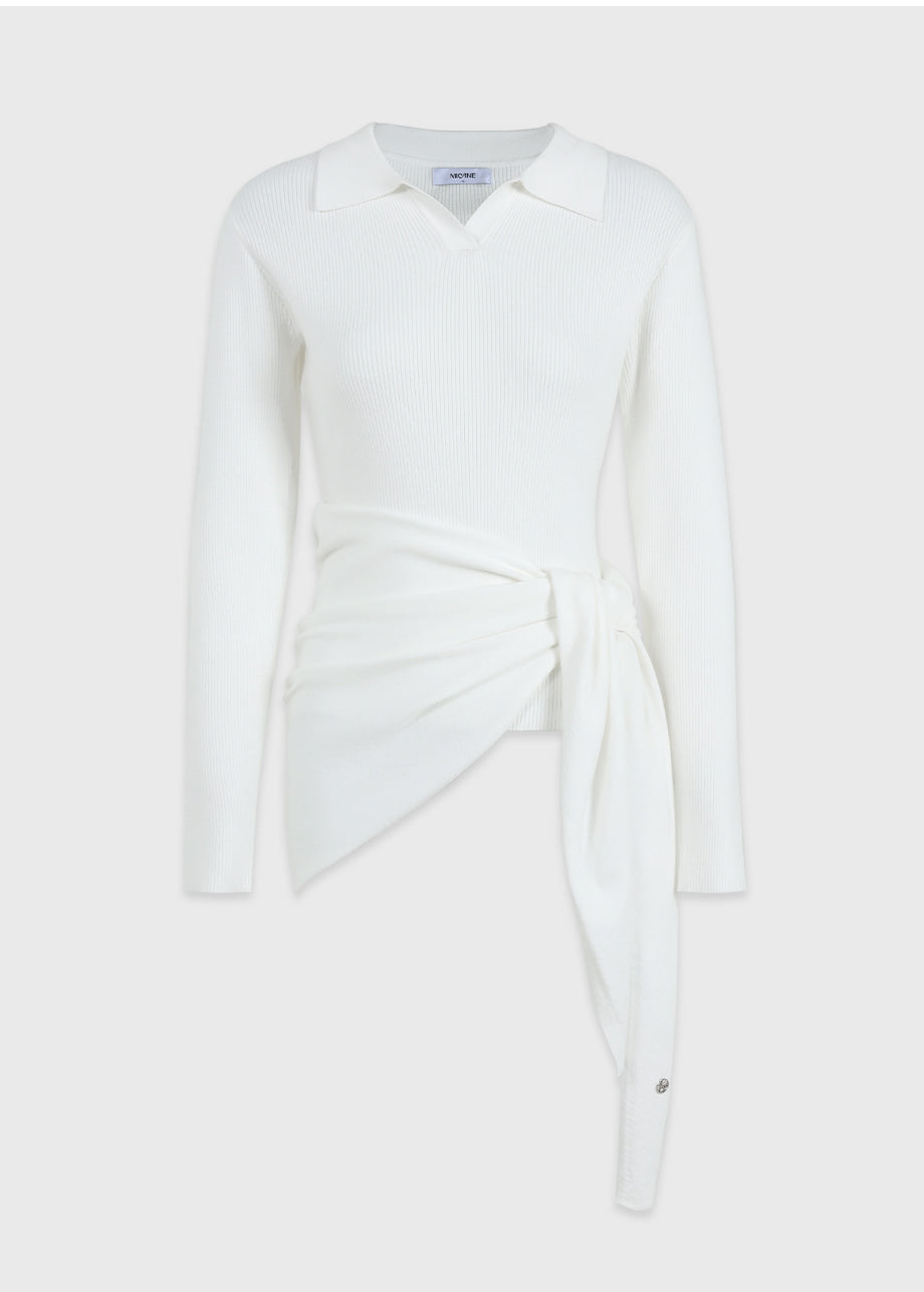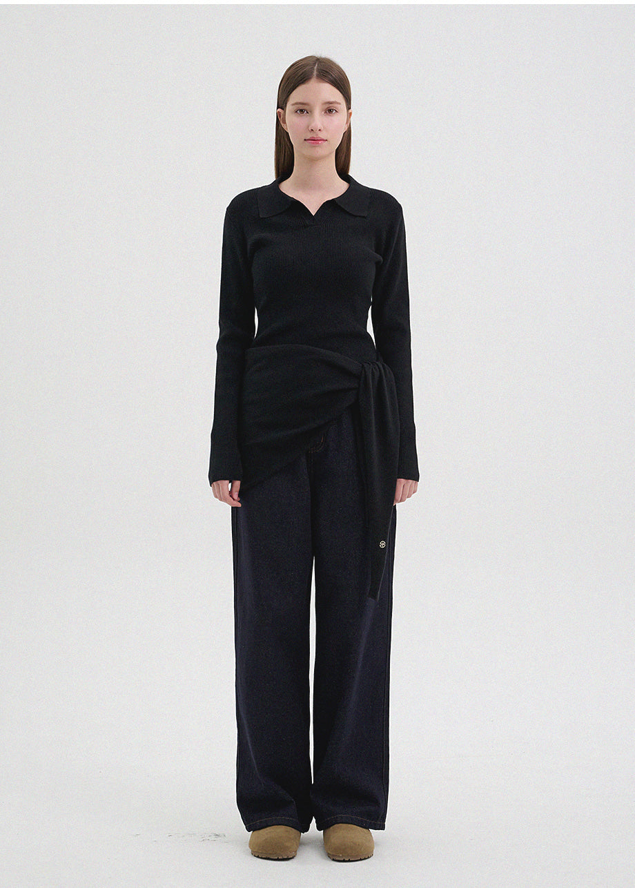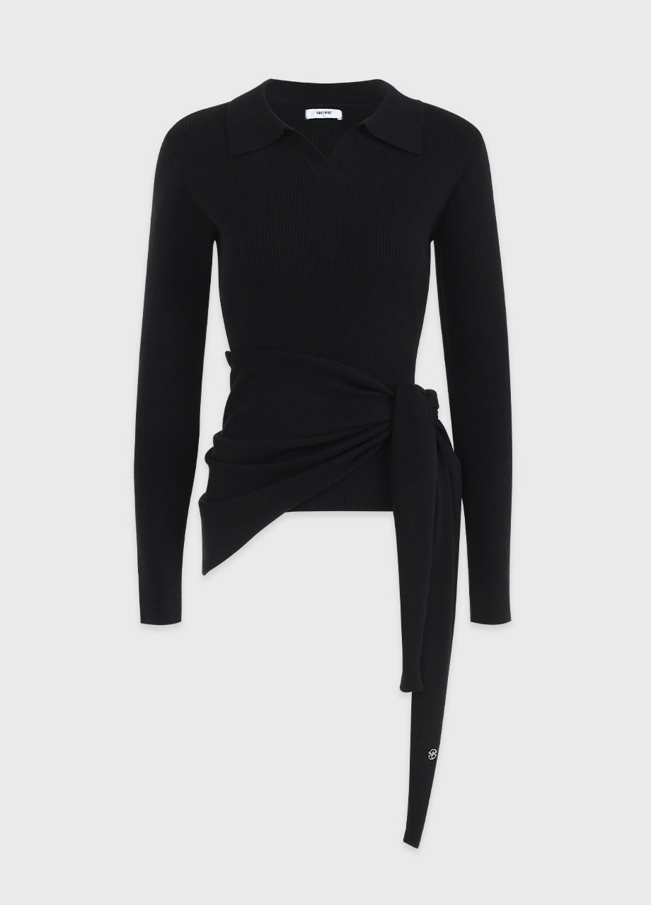クラシックカジュアルムードのニット。柔らかく伸縮性に優れたリブ編み素材を使用し、肌にやさしく暖かく快適な着心地が魅力。軽やかな着用感で、秋は一枚着として、冬は厚手アウターのインナーとしても活躍します。オープンカラーのデザインで首元もすっきり。セットのスカーフは肩掛けやウエストマークなど、アレンジ次第でさまざまなスタイリングを楽しめます。後ろ襟元のペンダントディテールで仕上げ、上質感をプラスしました。*装飾が施された製品のため、クリーニング専門店でのお手入れをおすすめいたします。