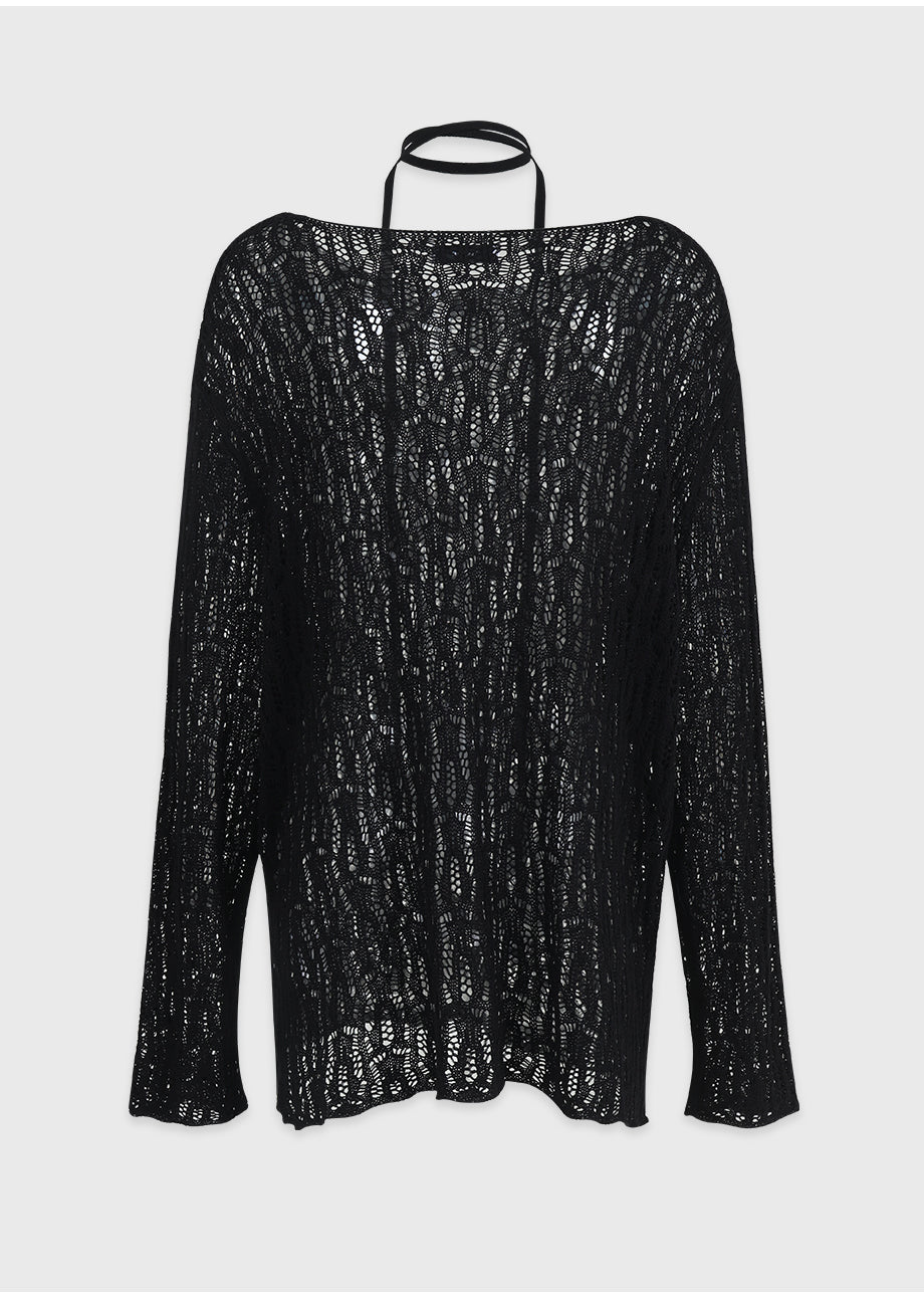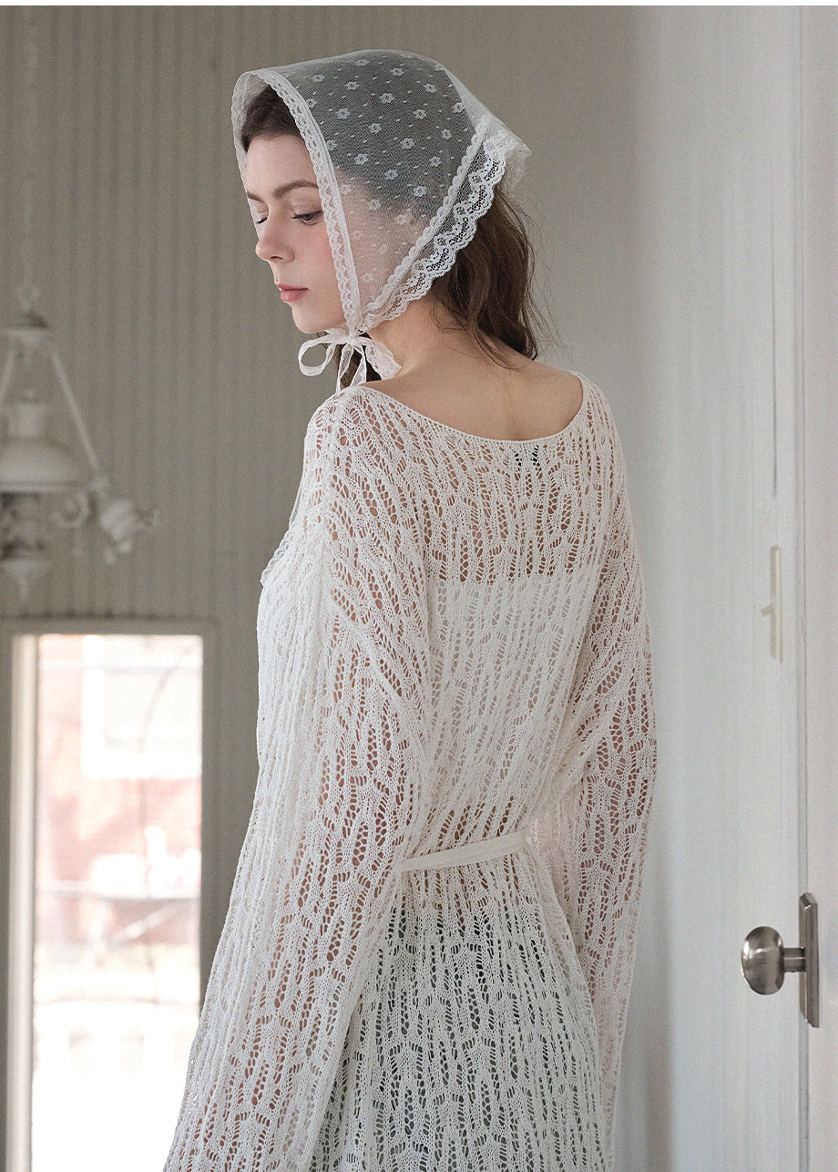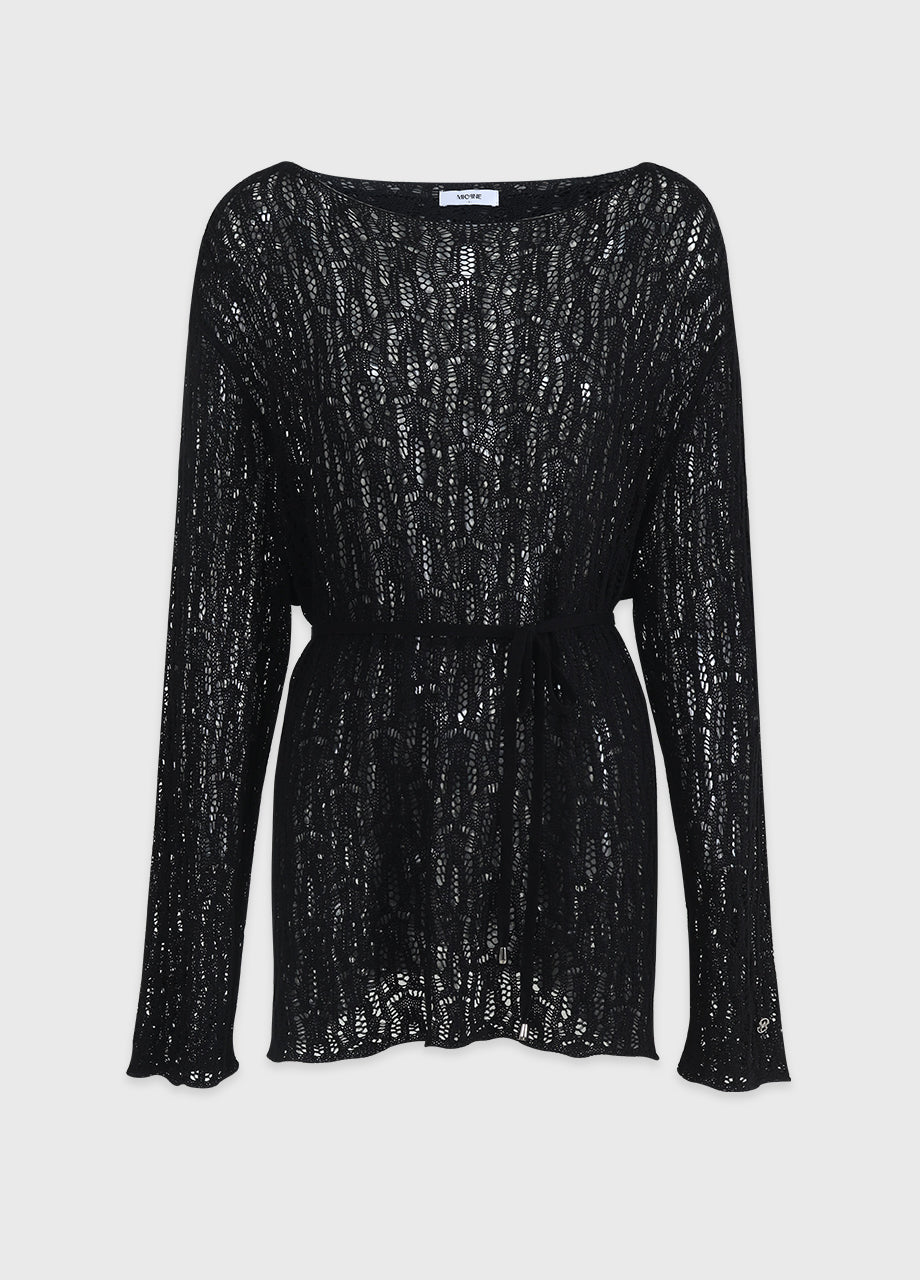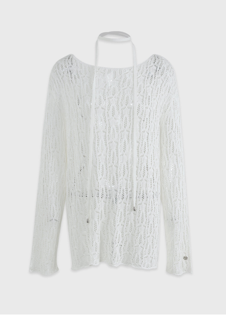 ヴィンテージな感性のロングノースリーブニットです。繊細なパターンとほんのり透け感のあるデザインが、フェミニンでユニークな雰囲気を演出します。*装飾が施された製品のため、クリーニング専門店でのお手入れをおすすめいたします。