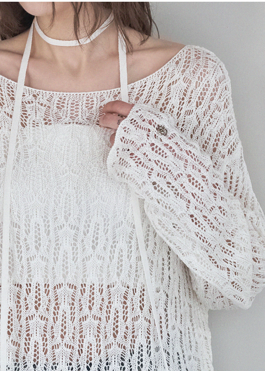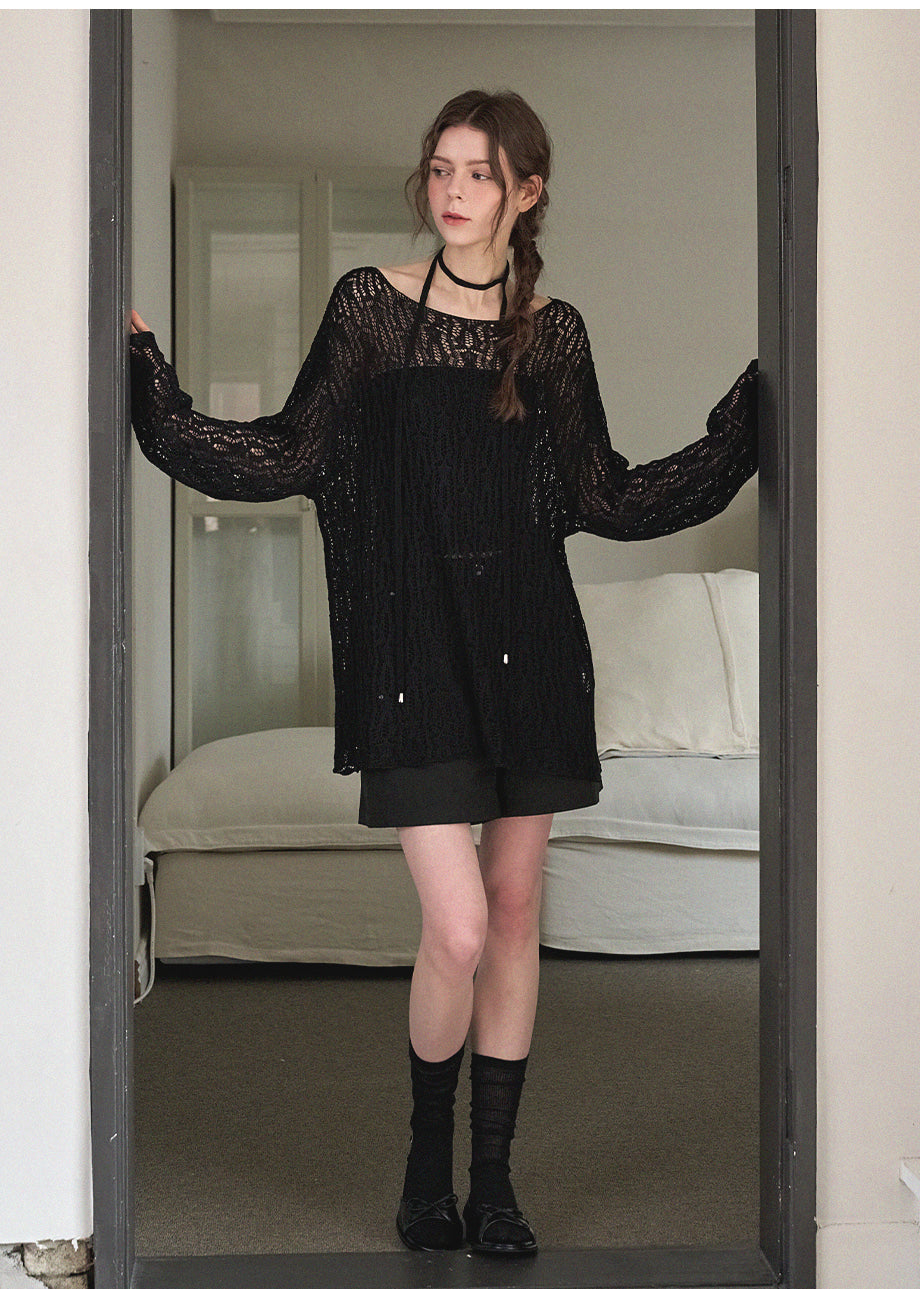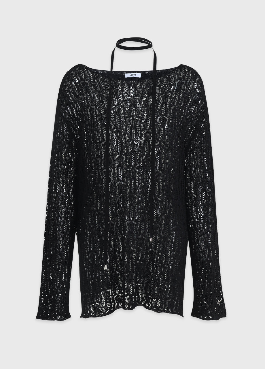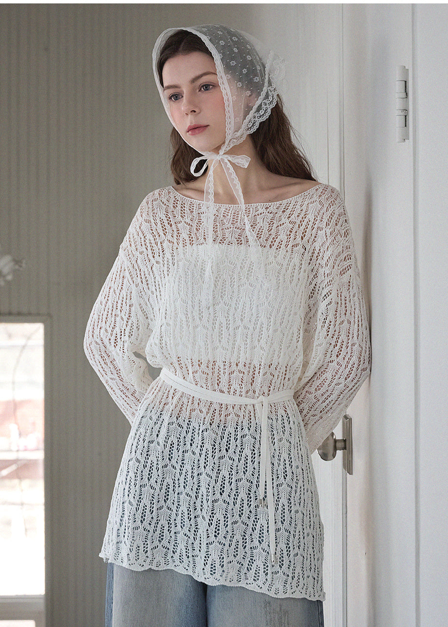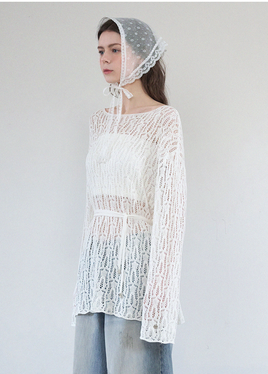 ヴィンテージな感性のロングノースリーブニットです。繊細なパターンとほんのり透け感のあるデザインが、フェミニンでユニークな雰囲気を演出します。*装飾が施された製品のため、クリーニング専門店でのお手入れをおすすめいたします。