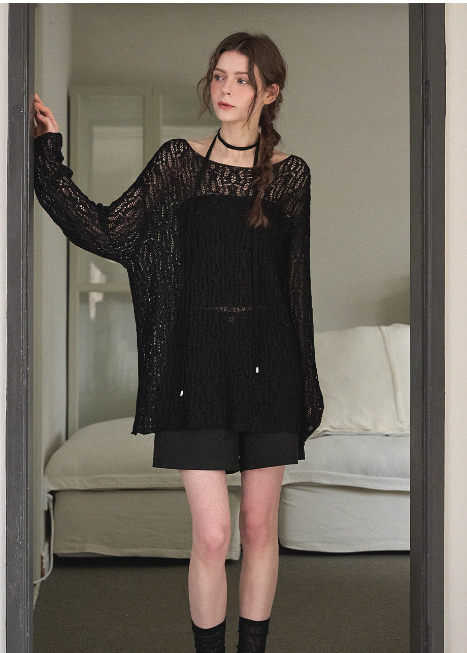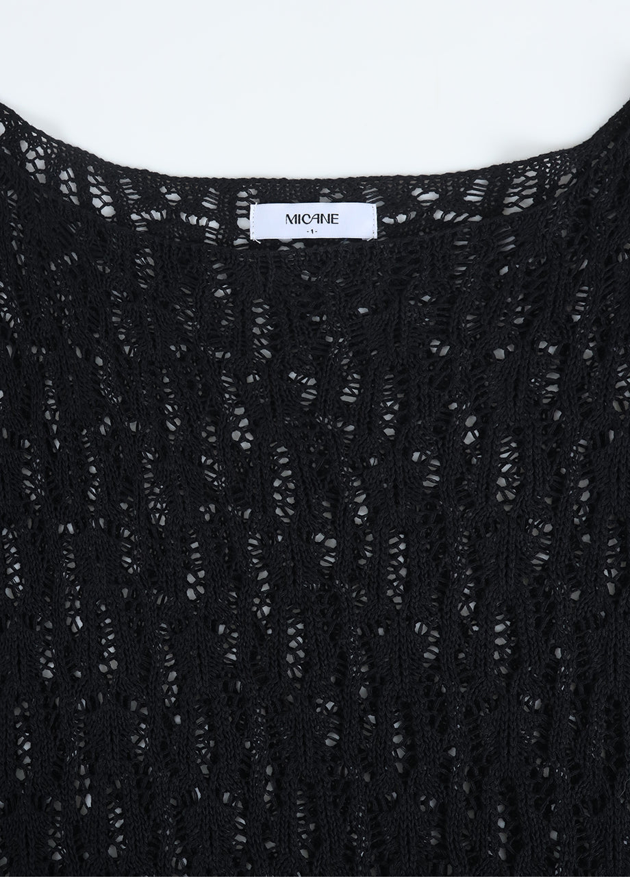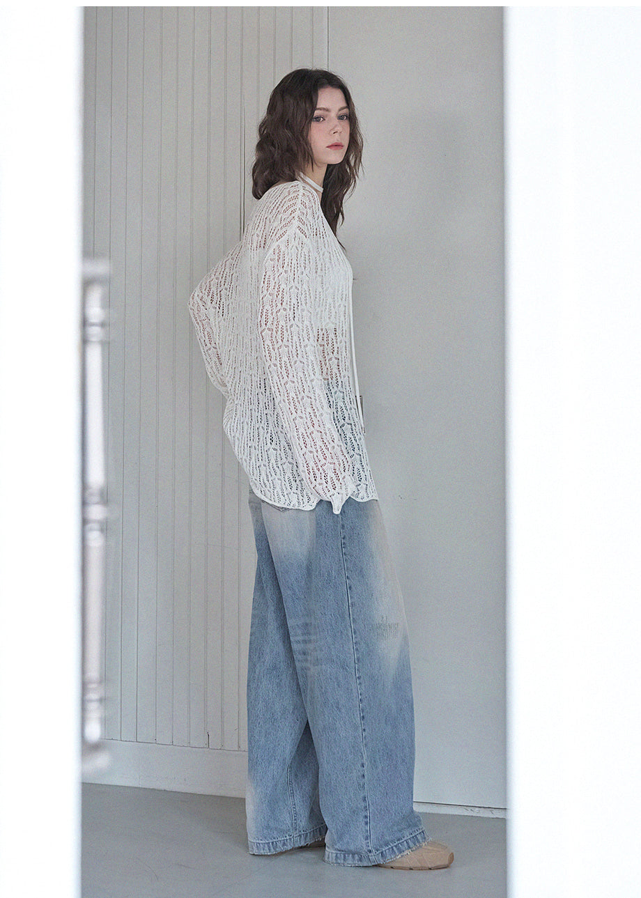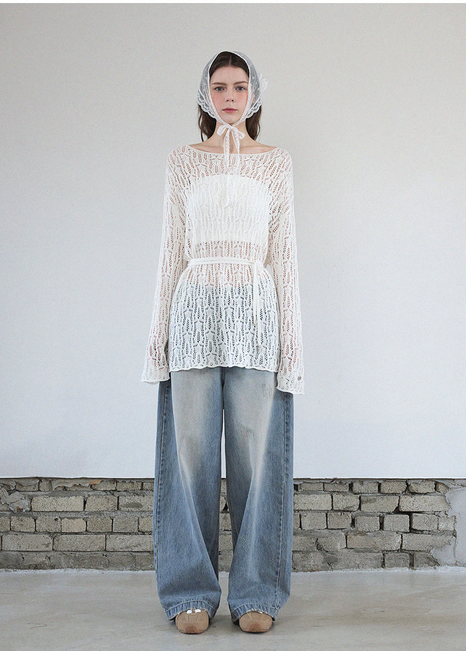 ヴィンテージな感性のロングノースリーブニットです。繊細なパターンとほんのり透け感のあるデザインが、フェミニンでユニークな雰囲気を演出します。*装飾が施された製品のため、クリーニング専門店でのお手入れをおすすめいたします。