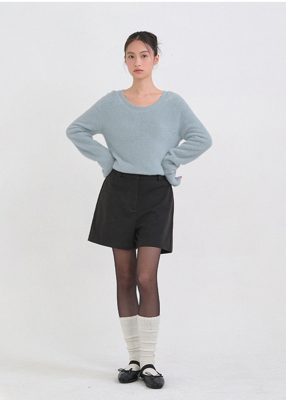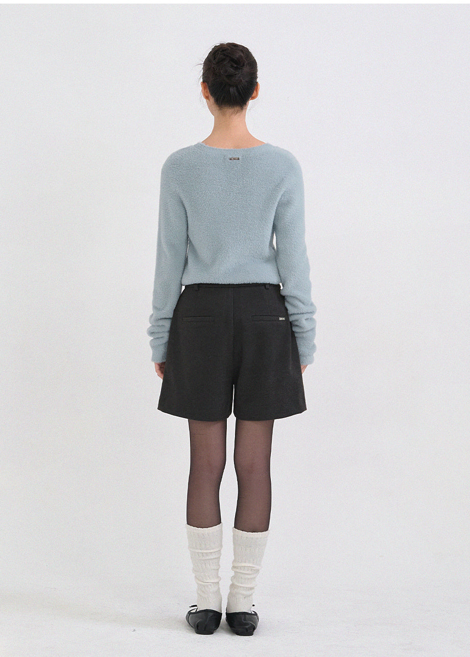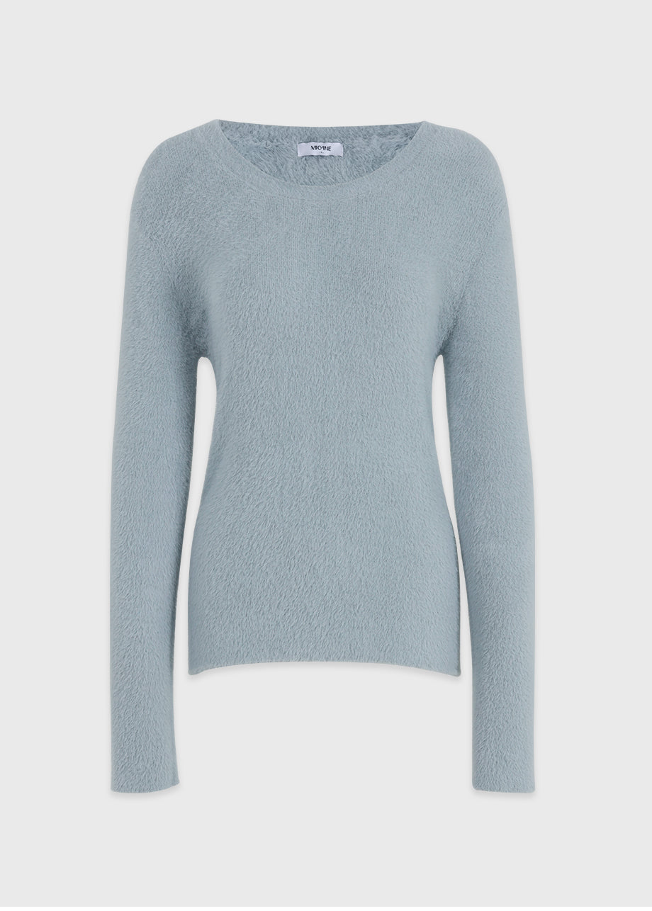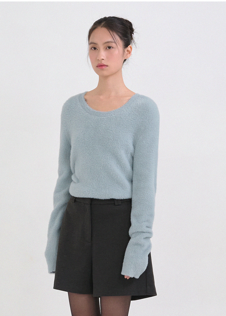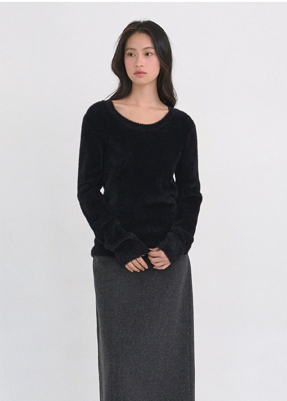 クラシックフェミニンムードのニットです。高級感のあるヘアリー糸を使用し、刺激のない柔らかく温かな着心地が特徴です。ヘアリー糸特有の毛抜けがほとんどなく、お手入れも簡単です。ボディラインを拾わないスリムルーズフィットに、控えめなUネックデザインで、さまざまなアウターのインナーとしてポイント使いにおすすめです。細やかな編み仕上げで長くご愛用いただけます。ベーシックなデザインで幅広いコーディネートが可能です。バックネック中央にはペンダント風の装飾を加え、上品に仕上げました。*装飾や特殊なデザインが施された製品のため、クリーニング専門店でのお手入れをおすすめいたします。