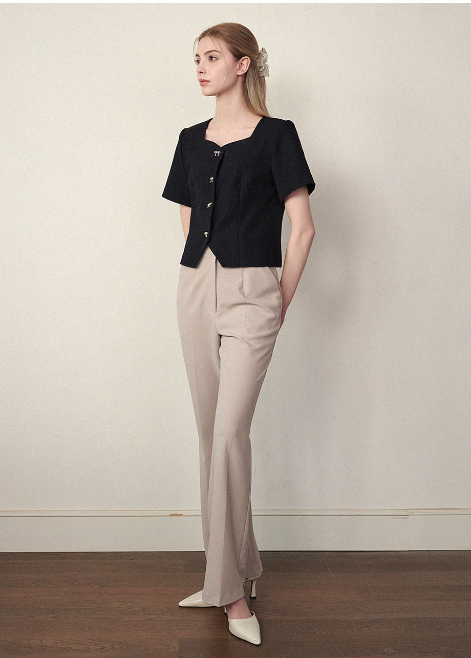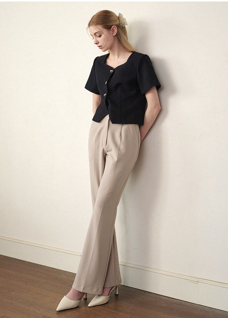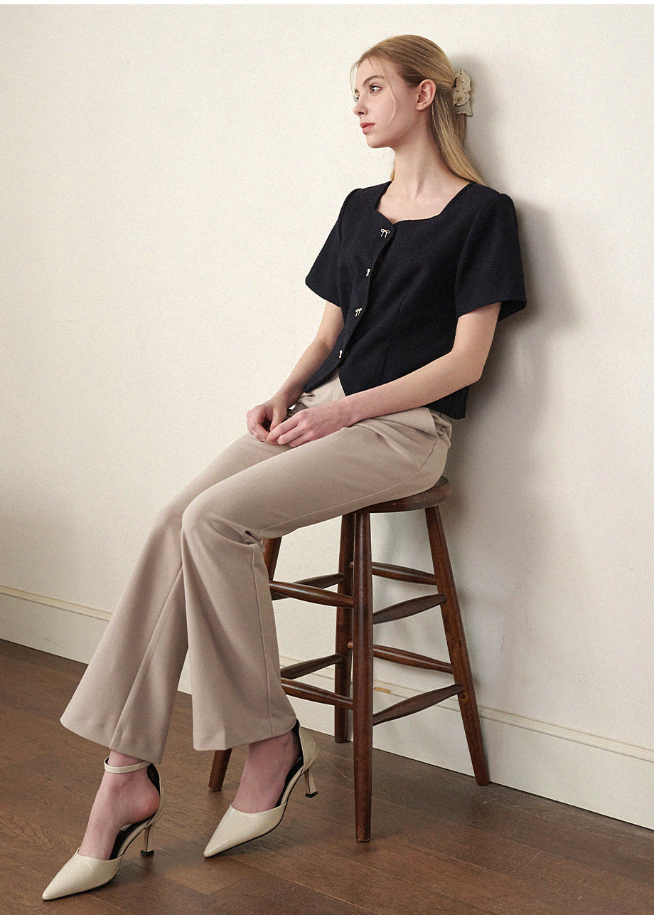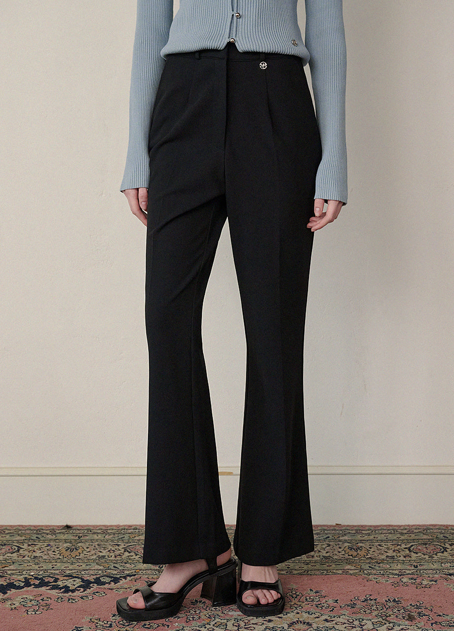 デイリークラシックムードで着用できるスラックスです。テンション感と耐久性に優れたポリエステルとスパン配合素材を使用し、シルエットとメンテナンス性の両方に優れています。