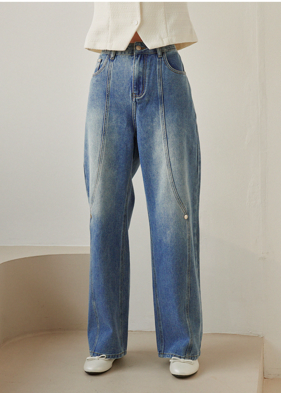 ユニークでヴィンテージなムードのデニムパンツです。しっかりとしたコットン素材にウォッシュ加工を加え、デニムならではのムードを引き立てました。