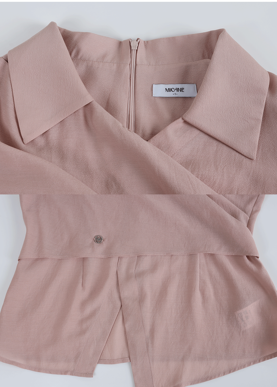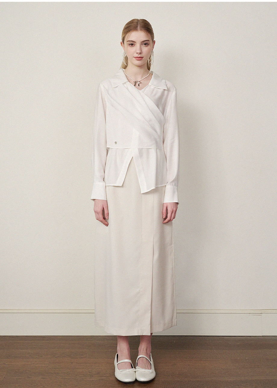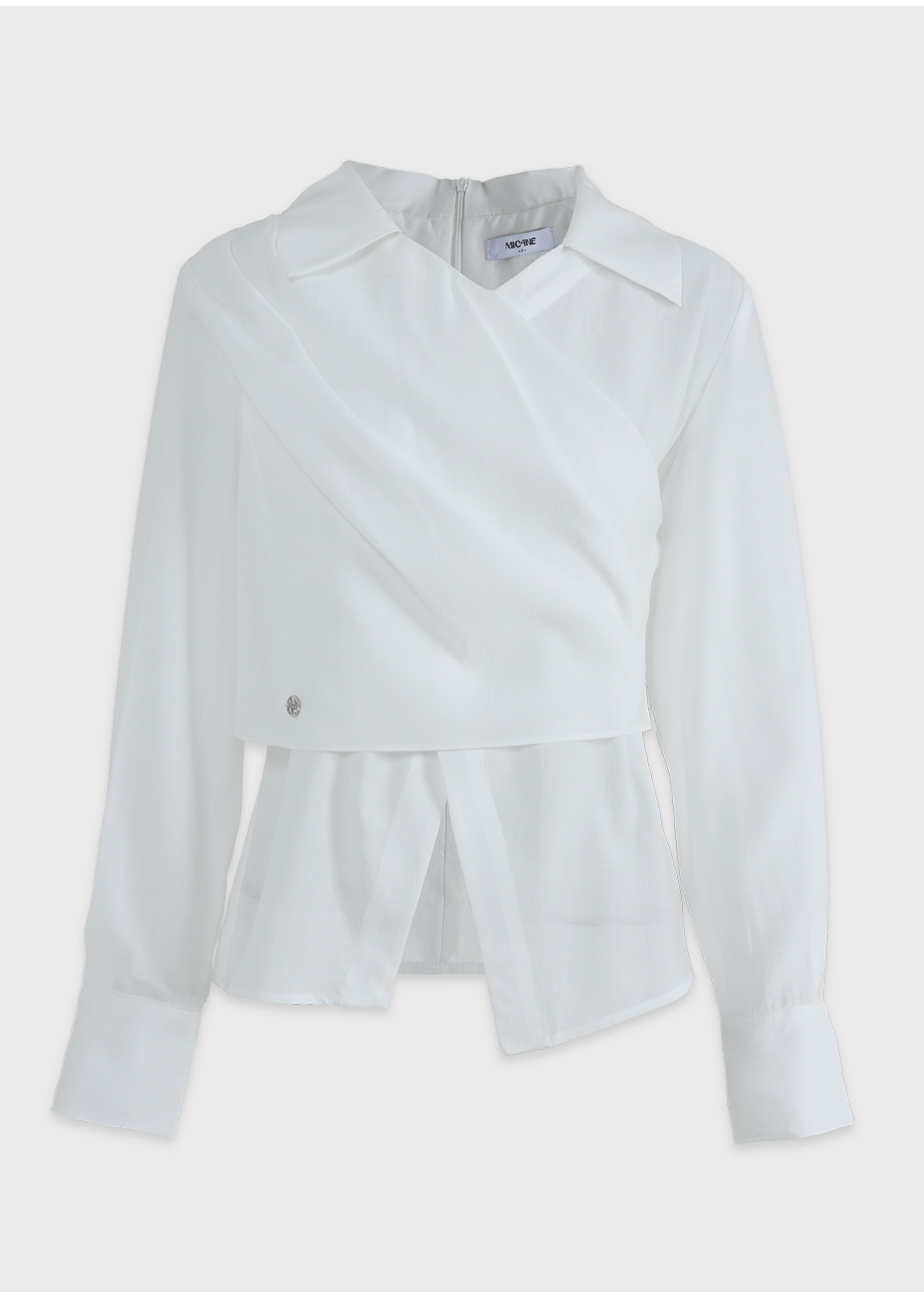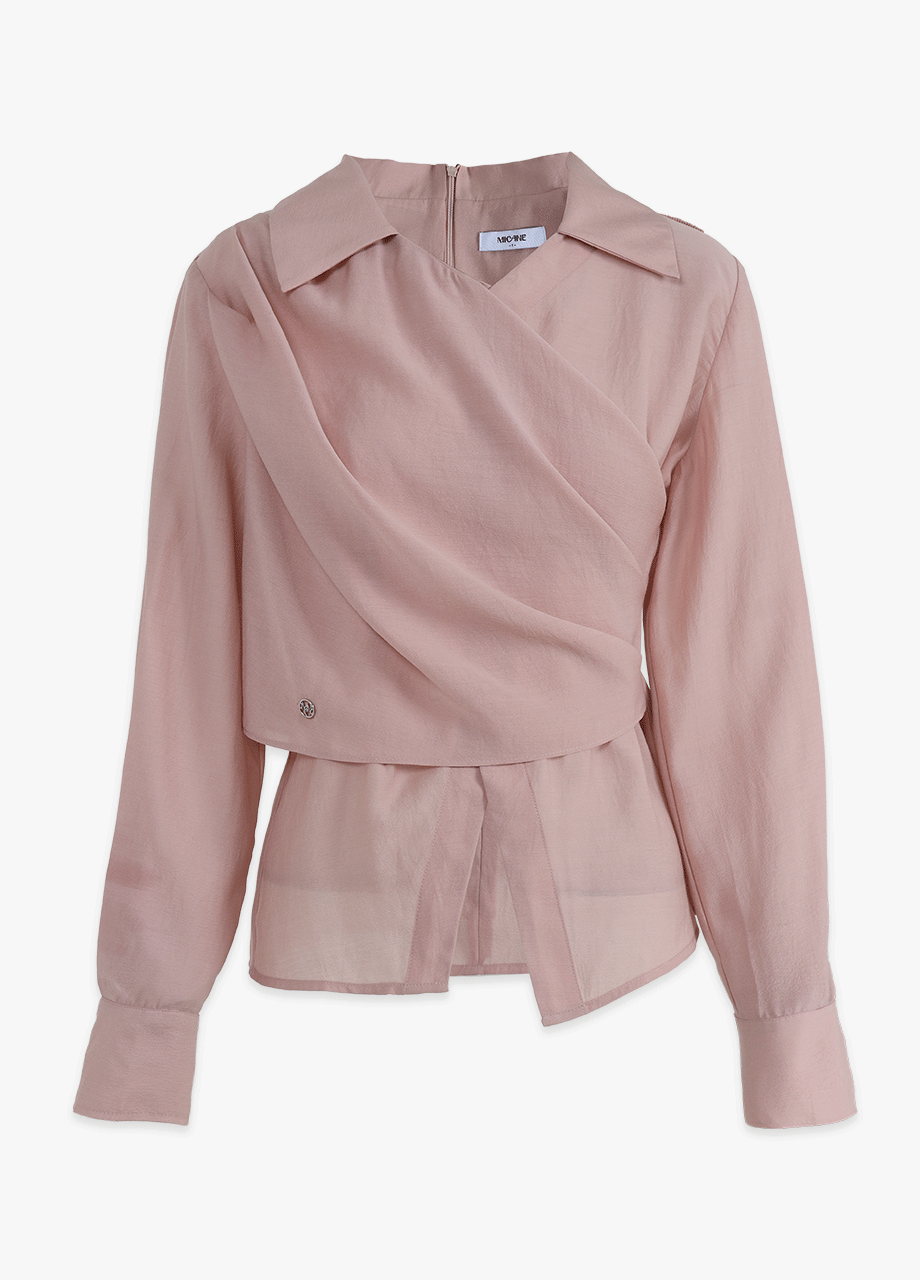 フェミニンムードで着用できるブラウスです。耐久性のあるポリエステルと肌触りの良いアセテートを混紡した生地で、肌への刺激を抑え快適に着用いただけます。