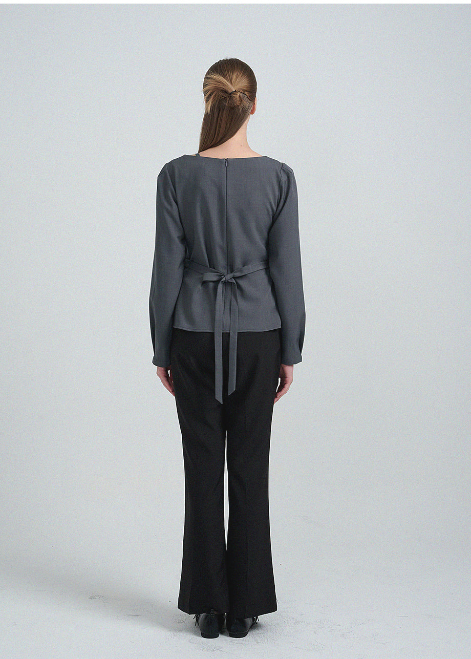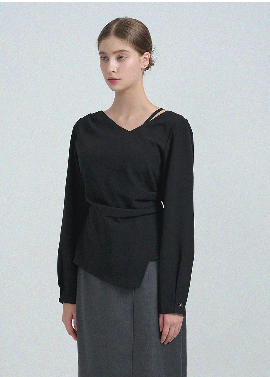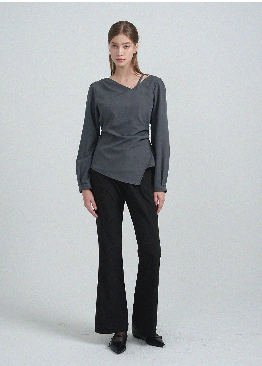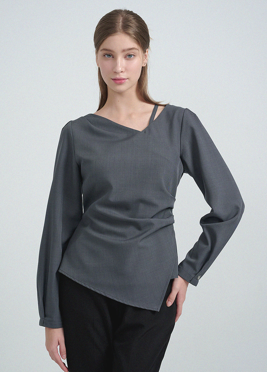 クラシックでフェミニンムードのブラウスです。FWバージョンとして季節感を深く表現した一着。耐久性と質感にこだわった高品質な生地を使用し、上品なムードと安定した着用感が特徴です。ヒップを覆う丈感とウエストをしっかりと整えて、ピンタックでアクセントを加えることで、洗練されたムードとともによりスリムなラインを演出。アンバランスなVネックにストラップをプラスし、ポイントを効かせてお楽しみいただけます。袖のサイドにはペンダント装飾を施し、クオリティを高めました。*装飾が施された製品のため、クリーニング専門店でのお手入れをおすすめいたします。