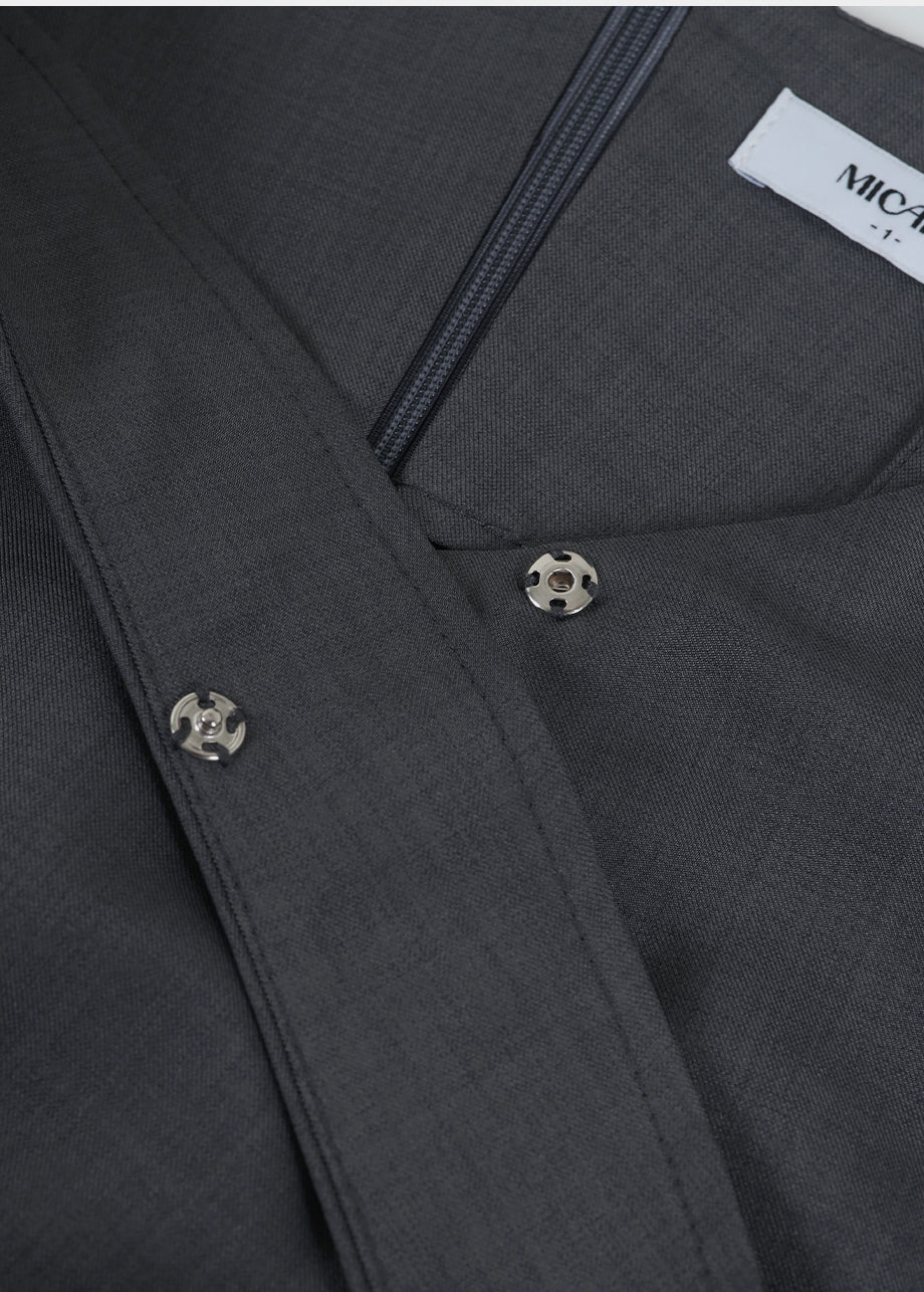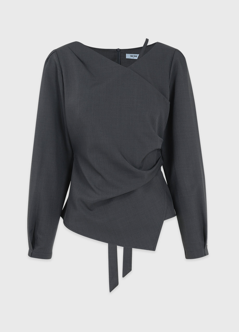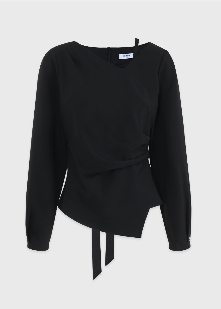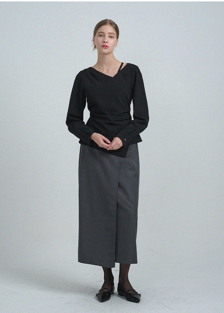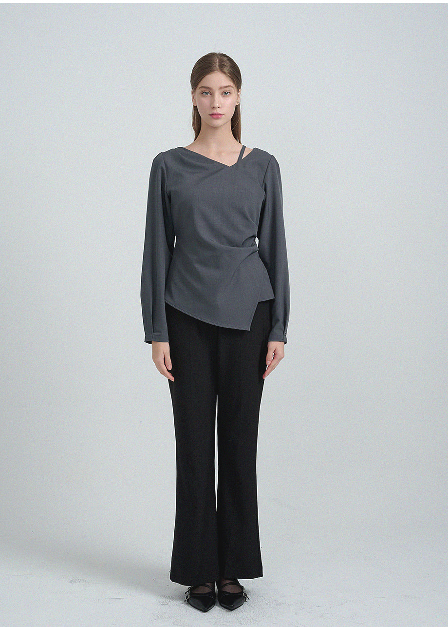 クラシックでフェミニンムードのブラウスです。FWバージョンとして季節感を深く表現した一着。耐久性と質感にこだわった高品質な生地を使用し、上品なムードと安定した着用感が特徴です。ヒップを覆う丈感とウエストをしっかりと整えて、ピンタックでアクセントを加えることで、洗練されたムードとともによりスリムなラインを演出。アンバランスなVネックにストラップをプラスし、ポイントを効かせてお楽しみいただけます。袖のサイドにはペンダント装飾を施し、クオリティを高めました。*装飾が施された製品のため、クリーニング専門店でのお手入れをおすすめいたします。