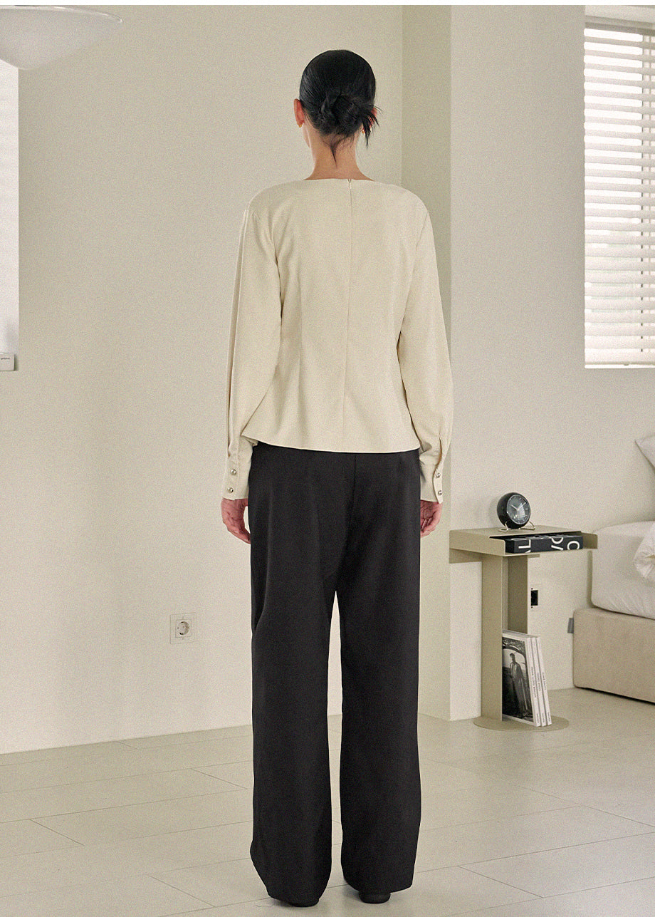 フェミニンで高級感のあるブラウスです。耐久性に優れた生地でフィットとクオリティを高め、ドレープの効いたラップ風レイヤードデザインで洗練されたスタイリングが可能です。