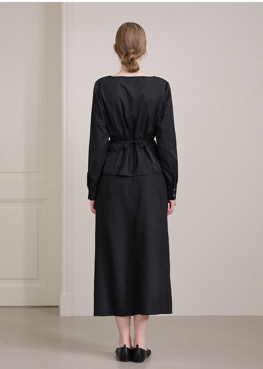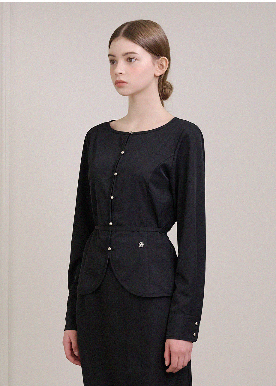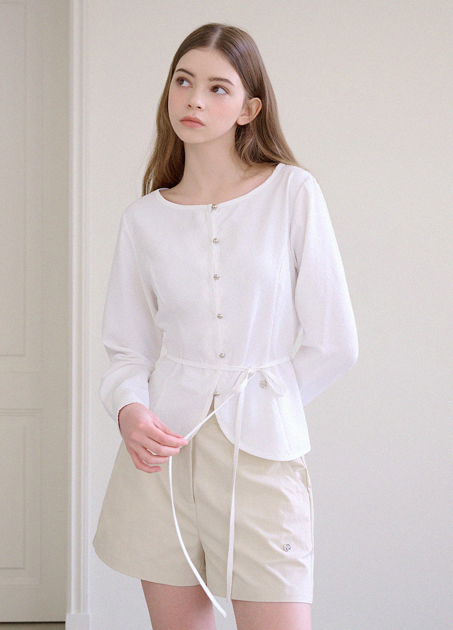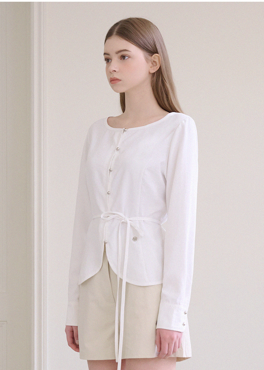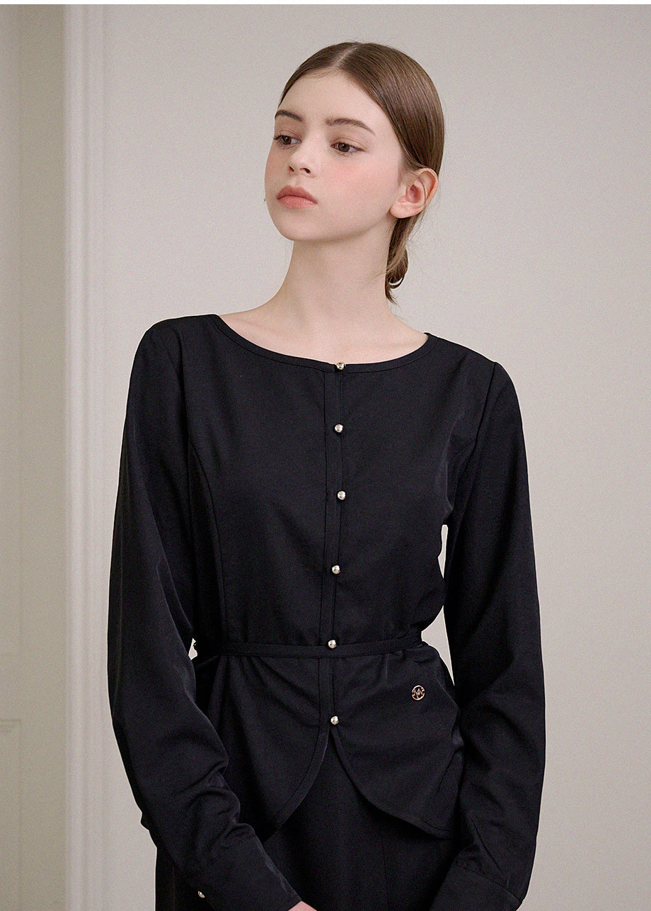 クラシックな感性のあるロングスリーブブラウスです。ヒップをそっと覆う丈感のスリムルーズフィットに、付属のストラップでウエストやネックの様々なアレンジが可能です。*装飾が施された製品のため、クリーニング専門店でのお手入れをおすすめいたします。