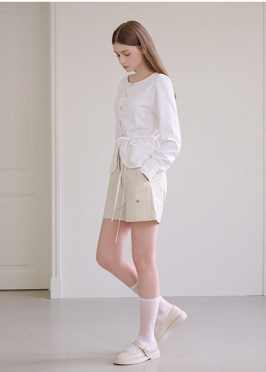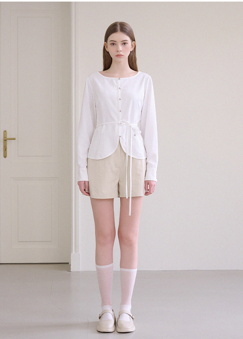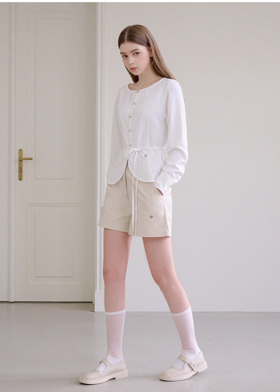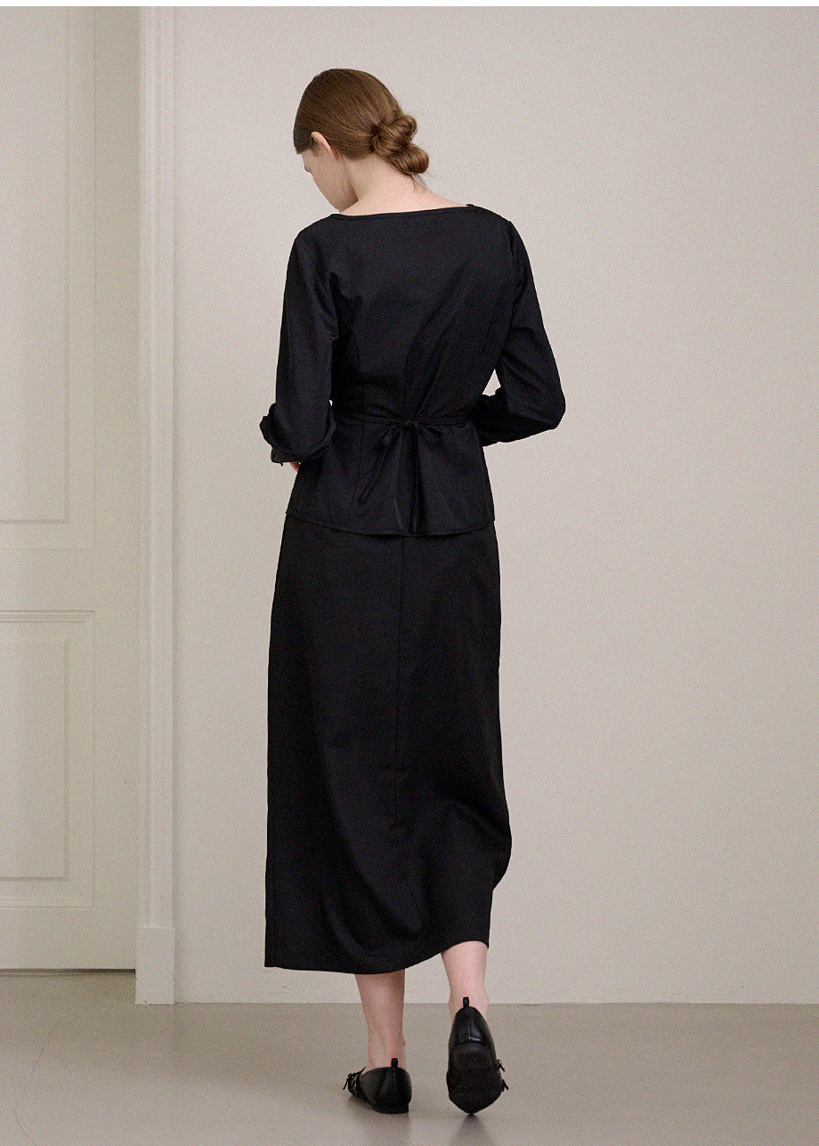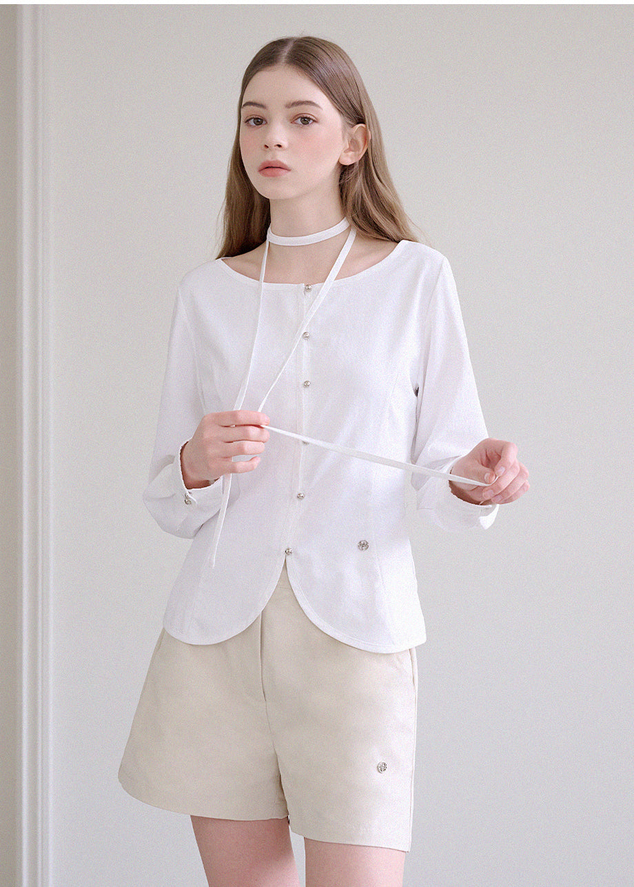クラシックな感性のあるロングスリーブブラウスです。ヒップをそっと覆う丈感のスリムルーズフィットに、付属のストラップでウエストやネックの様々なアレンジが可能です。*装飾が施された製品のため、クリーニング専門店でのお手入れをおすすめいたします。
