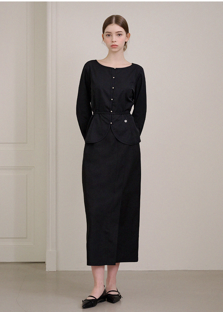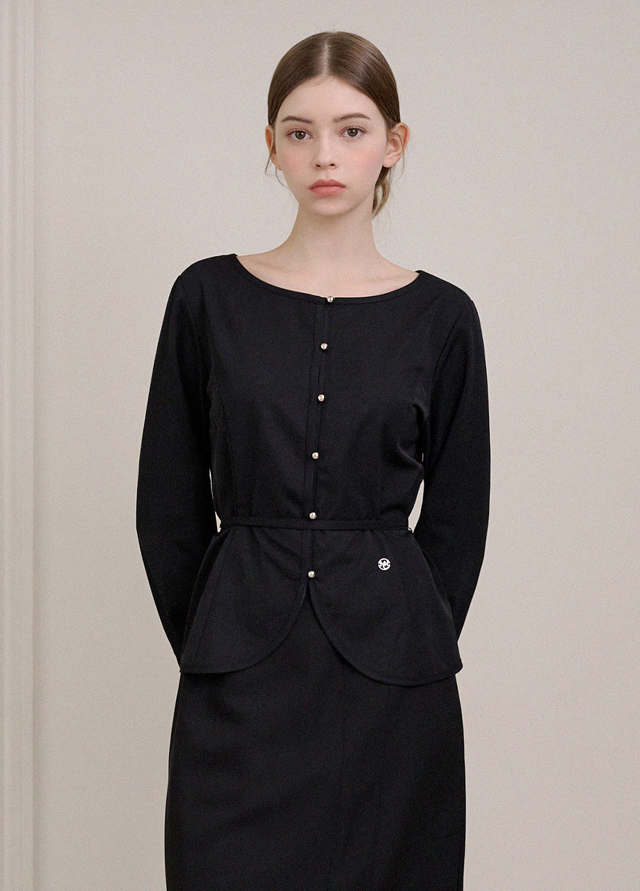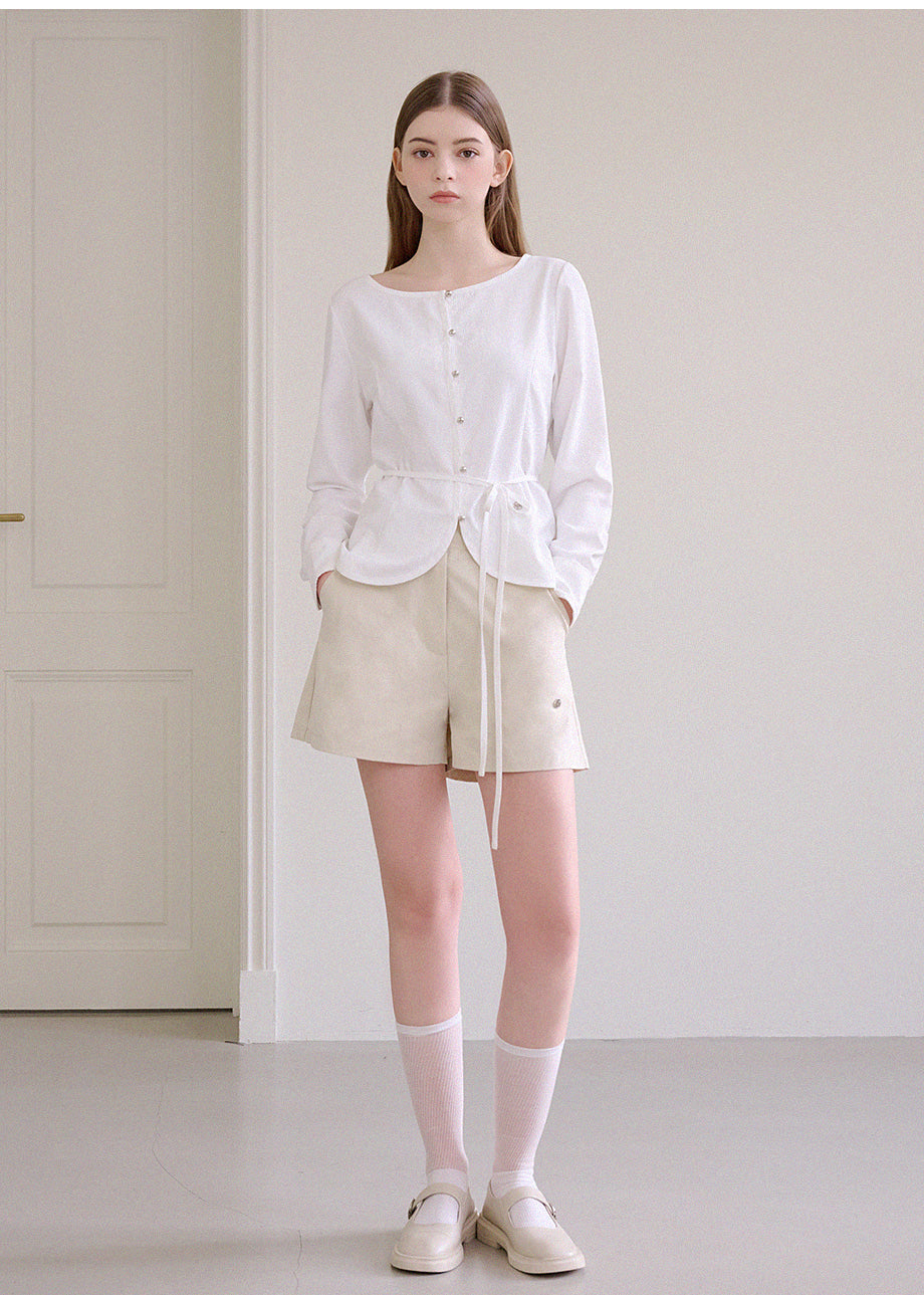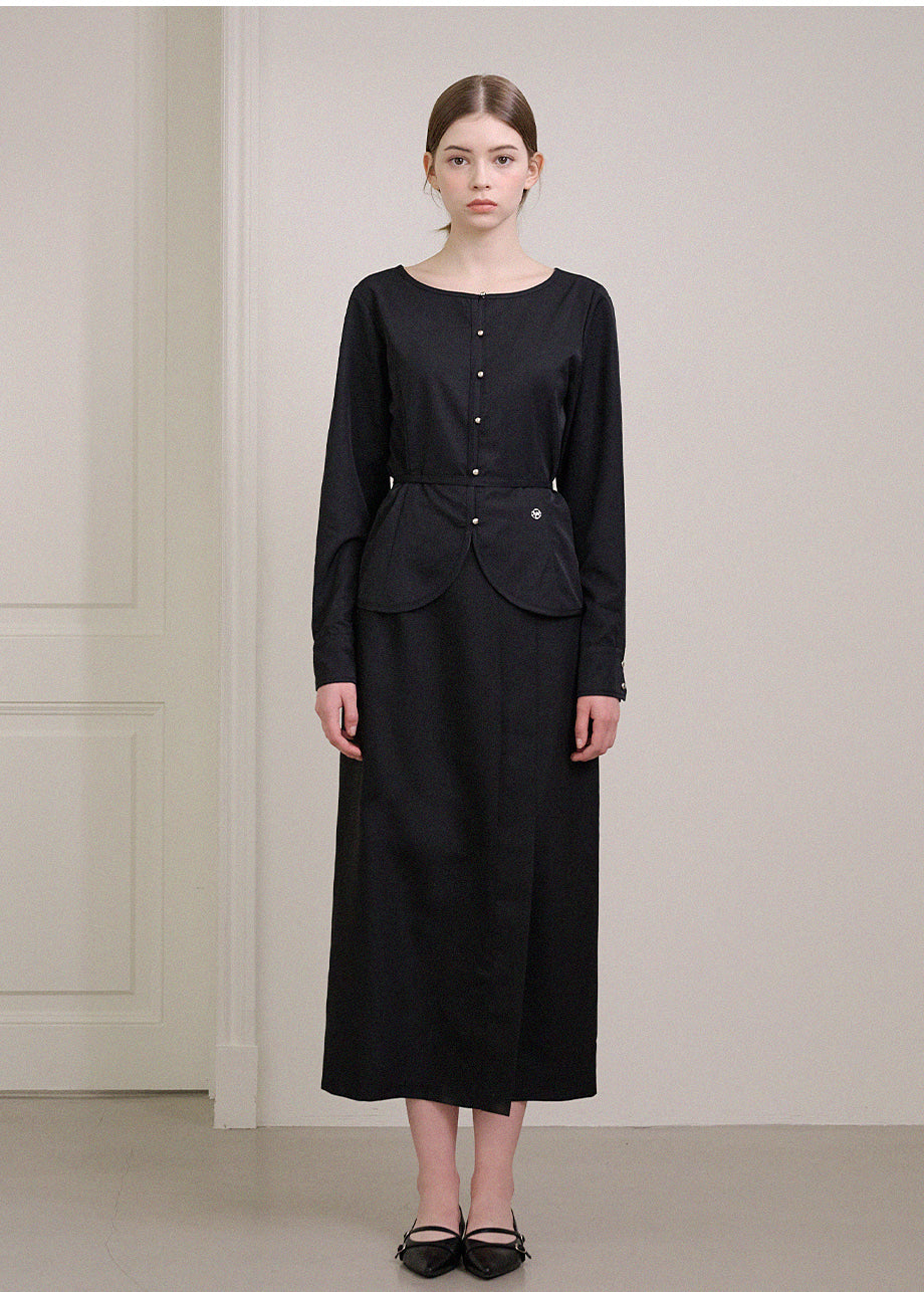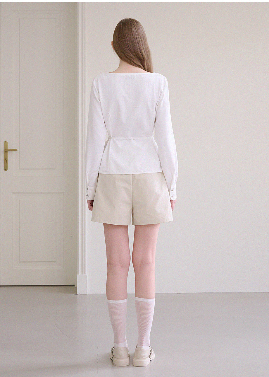 クラシックな感性のあるロングスリーブブラウスです。ヒップをそっと覆う丈感のスリムルーズフィットに、付属のストラップでウエストやネックの様々なアレンジが可能です。*装飾が施された製品のため、クリーニング専門店でのお手入れをおすすめいたします。