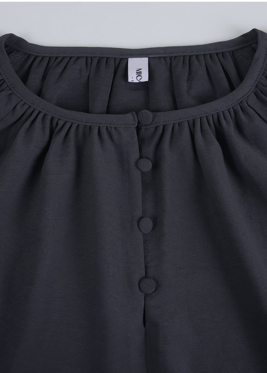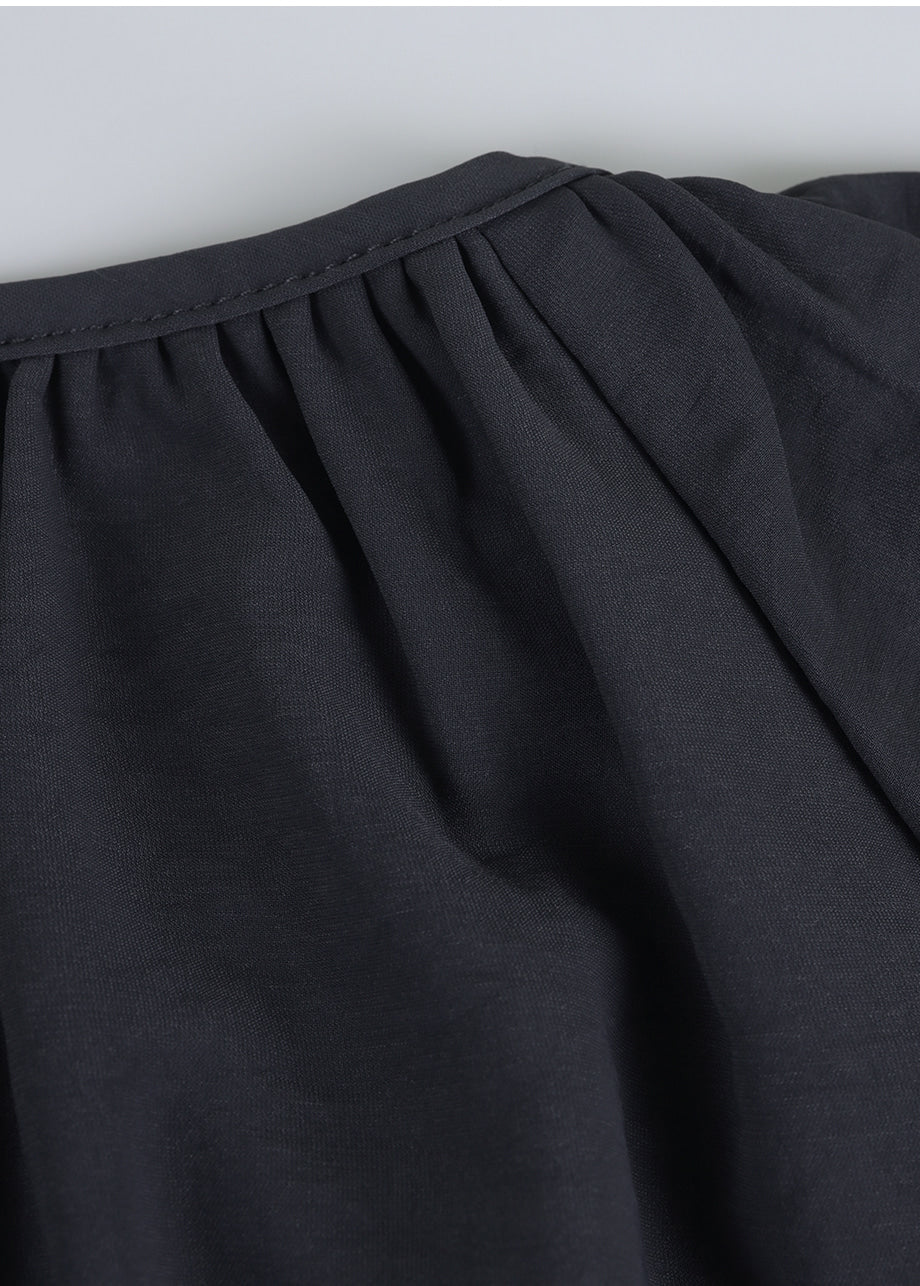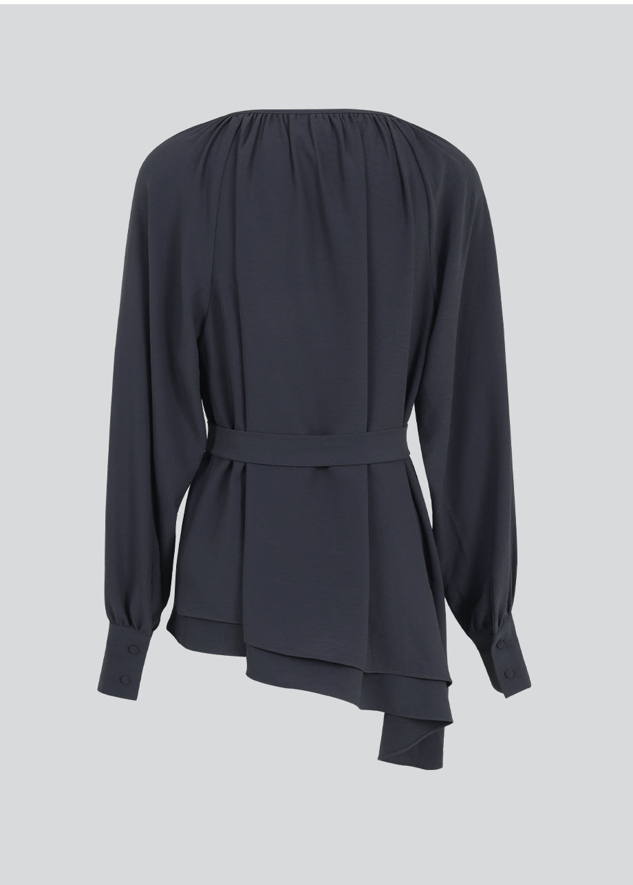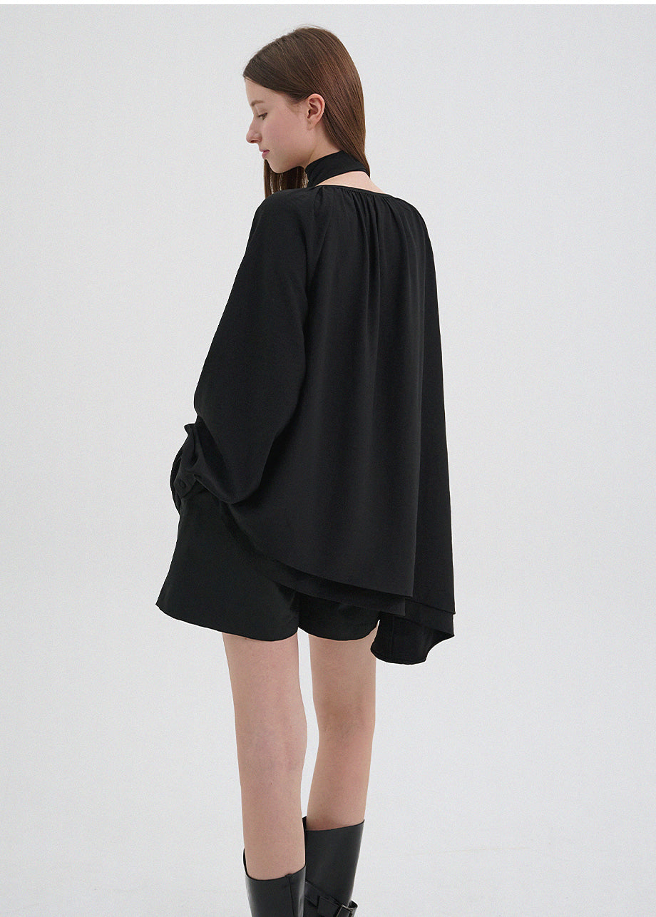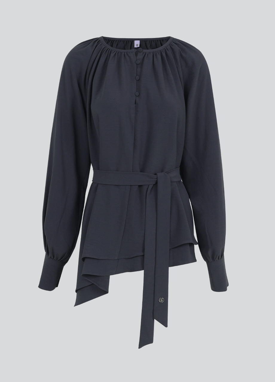 フェミニンムードのブラウス。やわらかな肌触りと高い耐久性を兼ね備えた生地を使用し、軽やかで快適な着心地を実現。ラウンドネックとルーズフィットでリラックスして着られ、ヒップをカバーする丈感にティアードデザインを重ね、より女性らしいシルエットを演出します。同素材のストラップがセットになっており、タイやウエストベルトとしてアレンジ可能。ストラップの先端にはペンダント装飾をあしらい、ディテールにもこだわりました。*装飾が施された製品のため、クリーニング専門店でのお手入れをおすすめいたします。