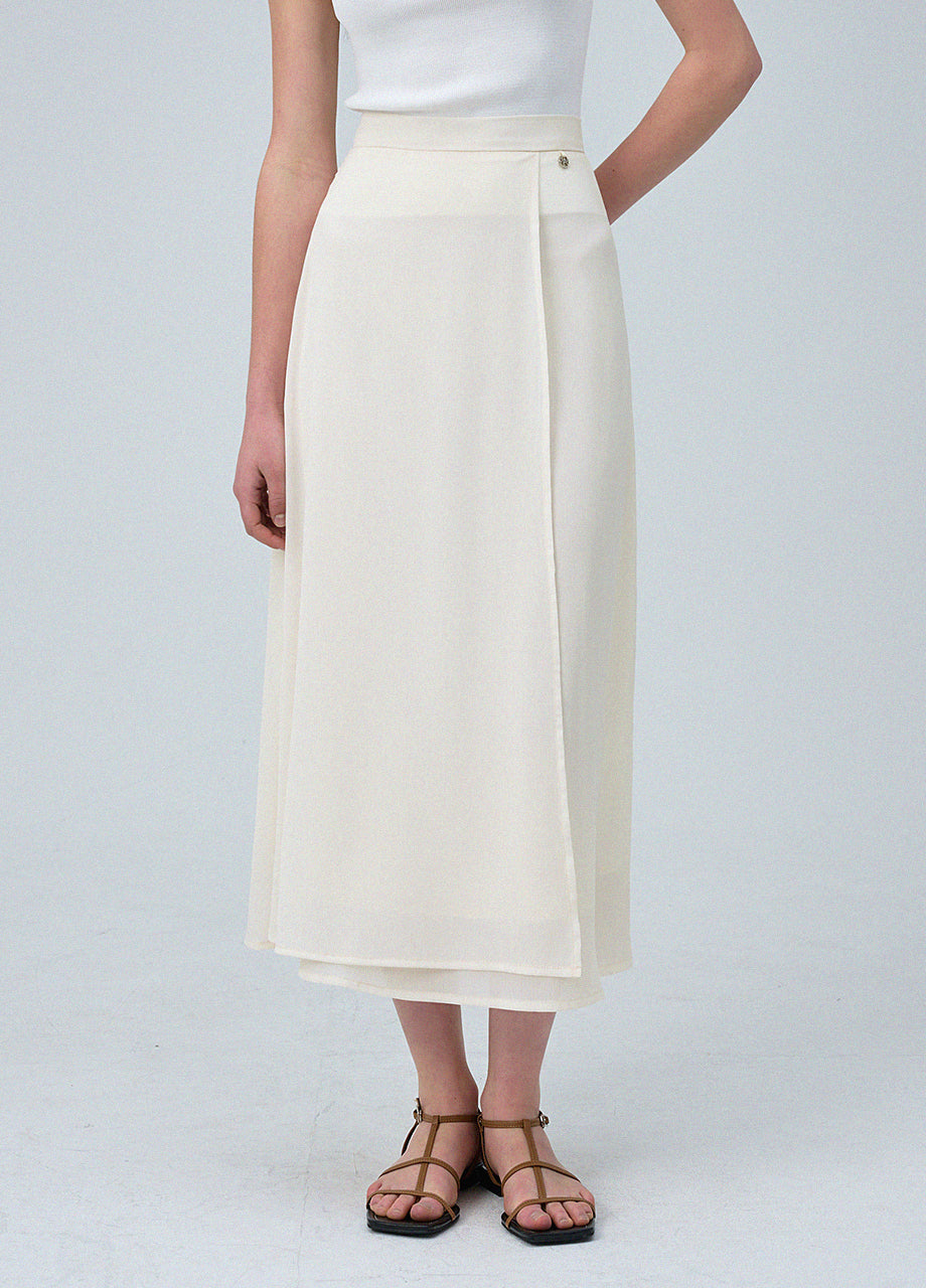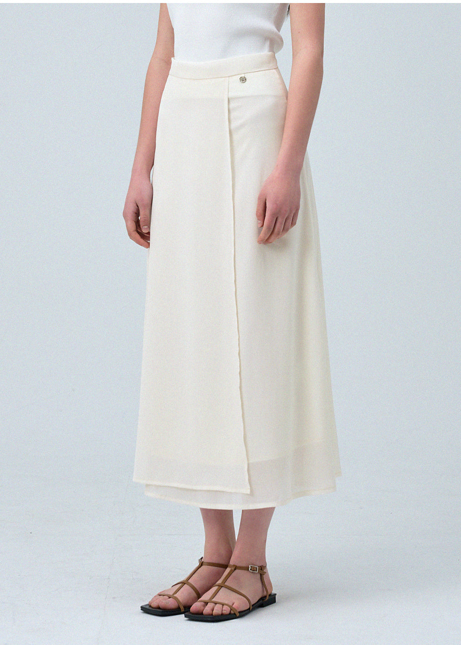フェミニンな感性のシフォンスカートです。ロング丈で体型カバーにも優れ、さまざまなスタイリングに活用できます。同シリーズのブラウスとのセットコーデもおすすめです。*装飾が施された製品のため、クリーニング専門店でのお手入れをおすすめいたします。
