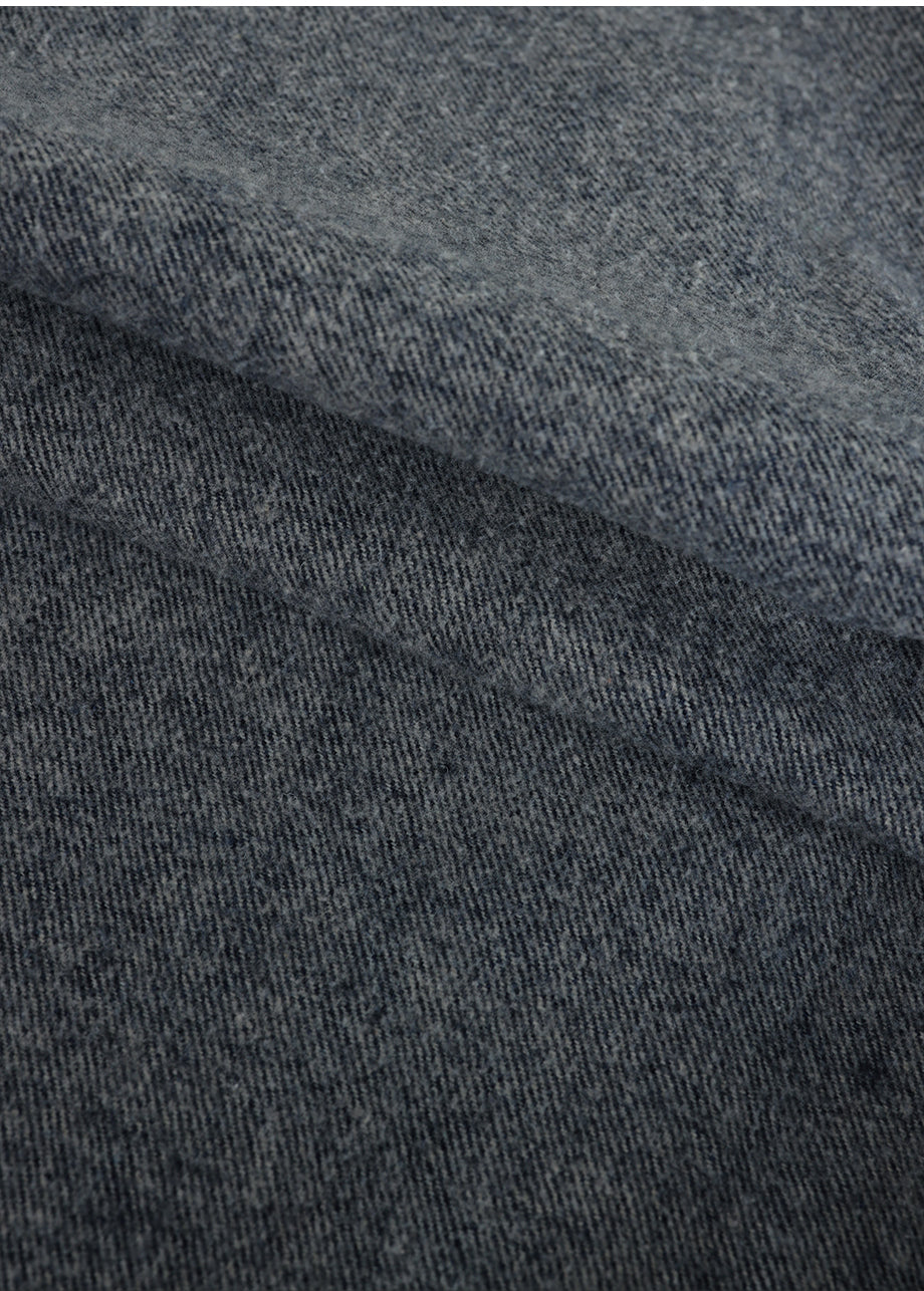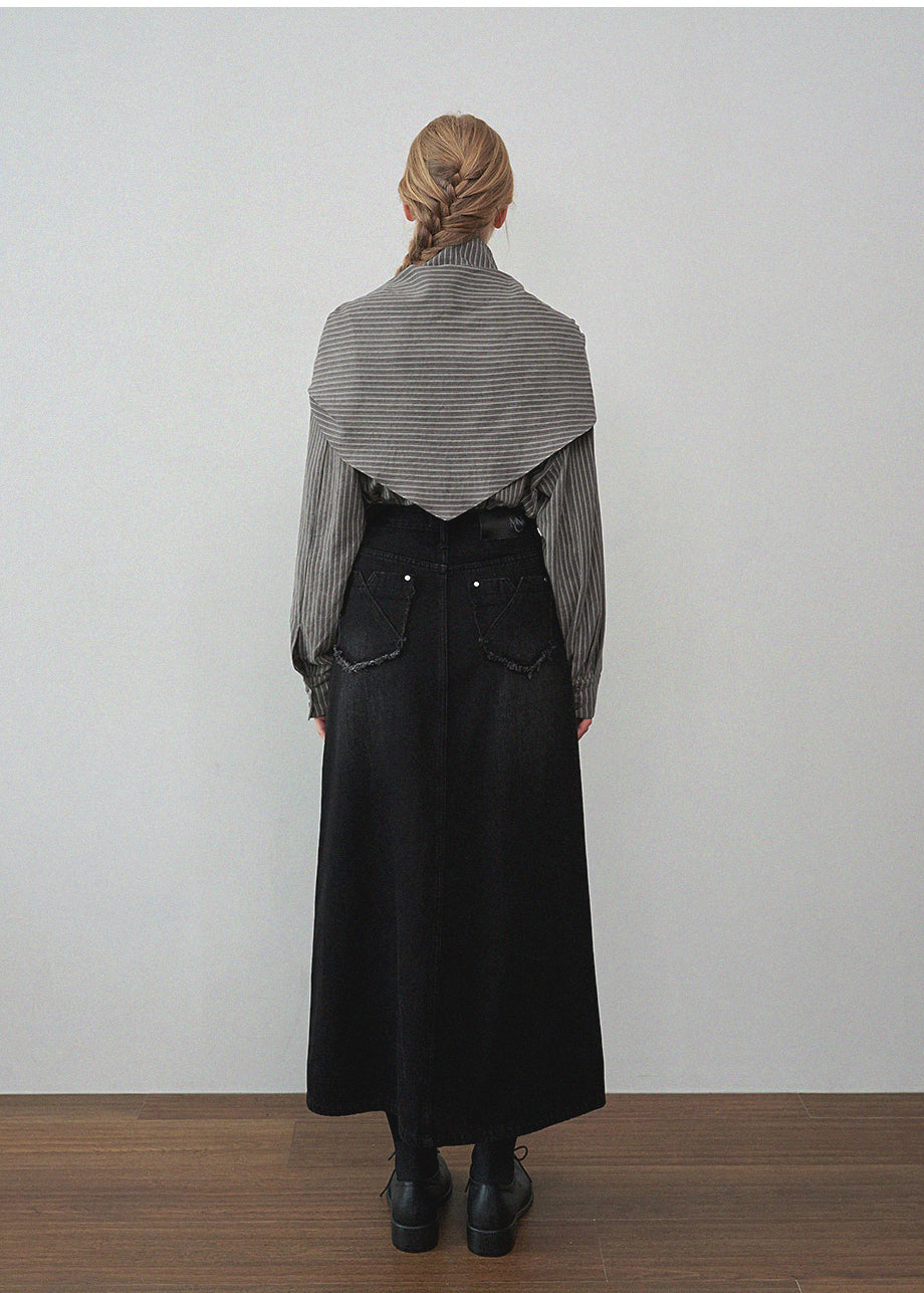 カジュアルでヴィンテージなムードのデニムスカートです。耐久性に優れた裏起毛デニム生地で仕立てられており、型崩れしにくく暖かい着心地が魅力です。程よい厚みの起毛素材で、秋から冬までシーズンを問わず快適に着用できます。複数回のウォッシング工程によって生まれた独特の色合いとディテールが、高級感のあるヴィンテージテイストを演出します。上品なカジュアルムードで、デイリーにもトレンド感ある着こなしが楽しめます。ロング丈のセミAラインシルエットで、さまざまなトップスとのコーディネートが楽しめます。バックポケットにはフリンジデザインを施し、感度の高い仕上がりに。さらにシグネチャーカットとスリットを加え、ディテールの完成度を高めました。カジュアルなデザインで、FWシーズンのデイリースカートとしておすすめの一枚です。*装飾や特殊なデザインが施された製品のため、クリーニング専門店でのお手入れをおすすめいたします。