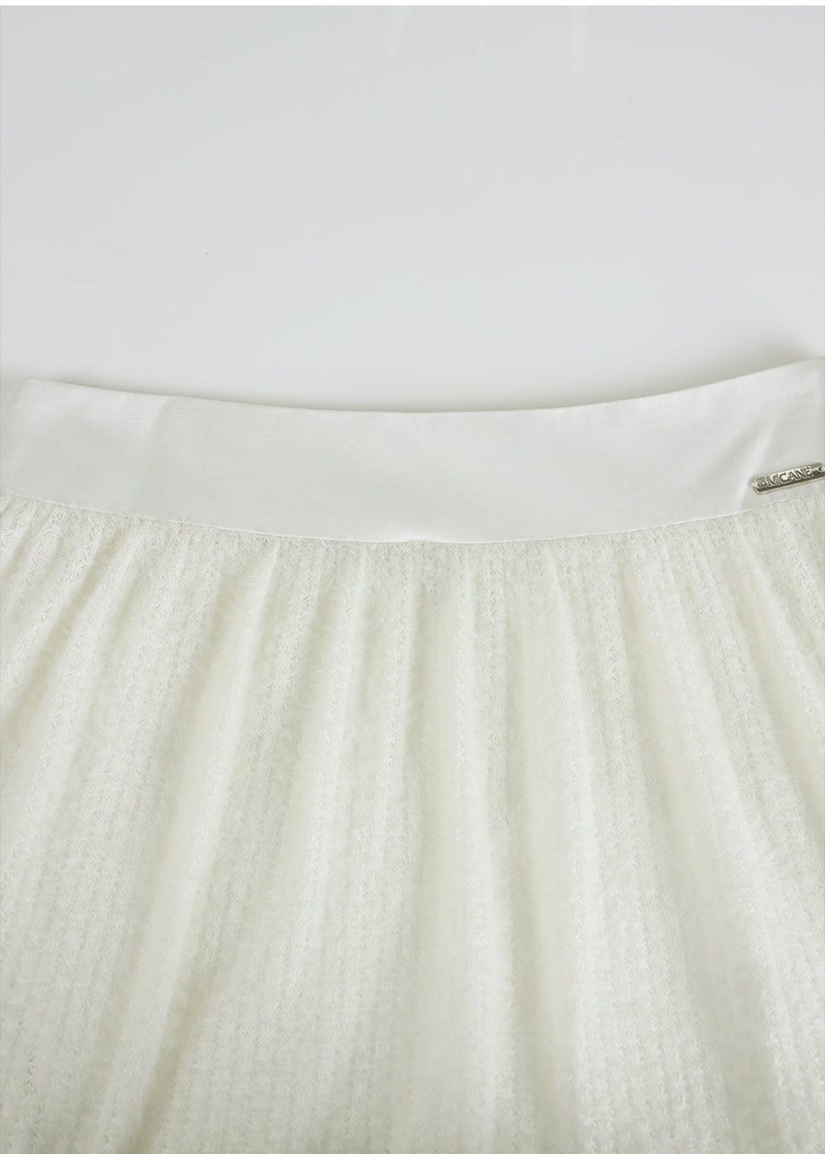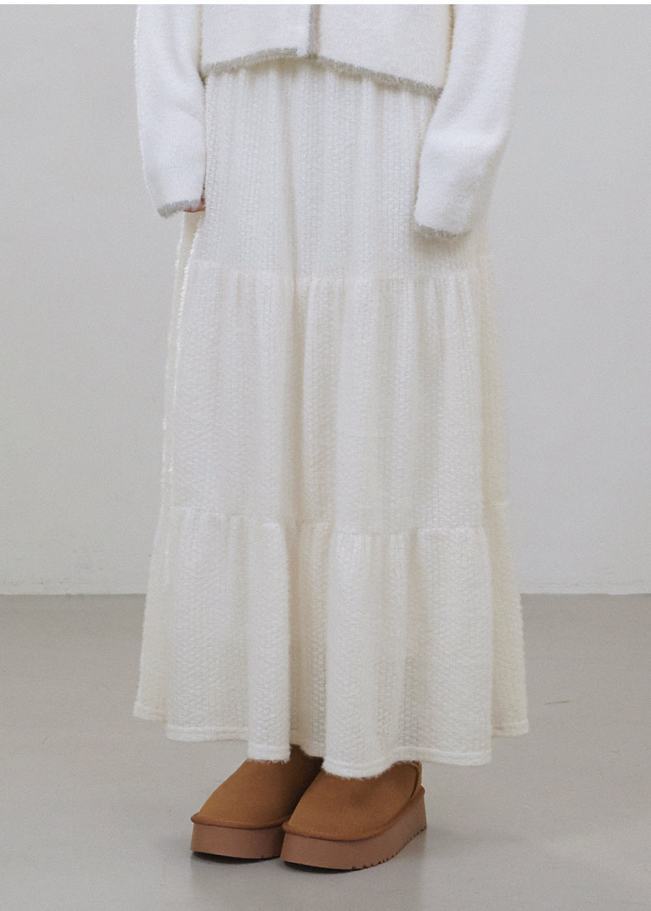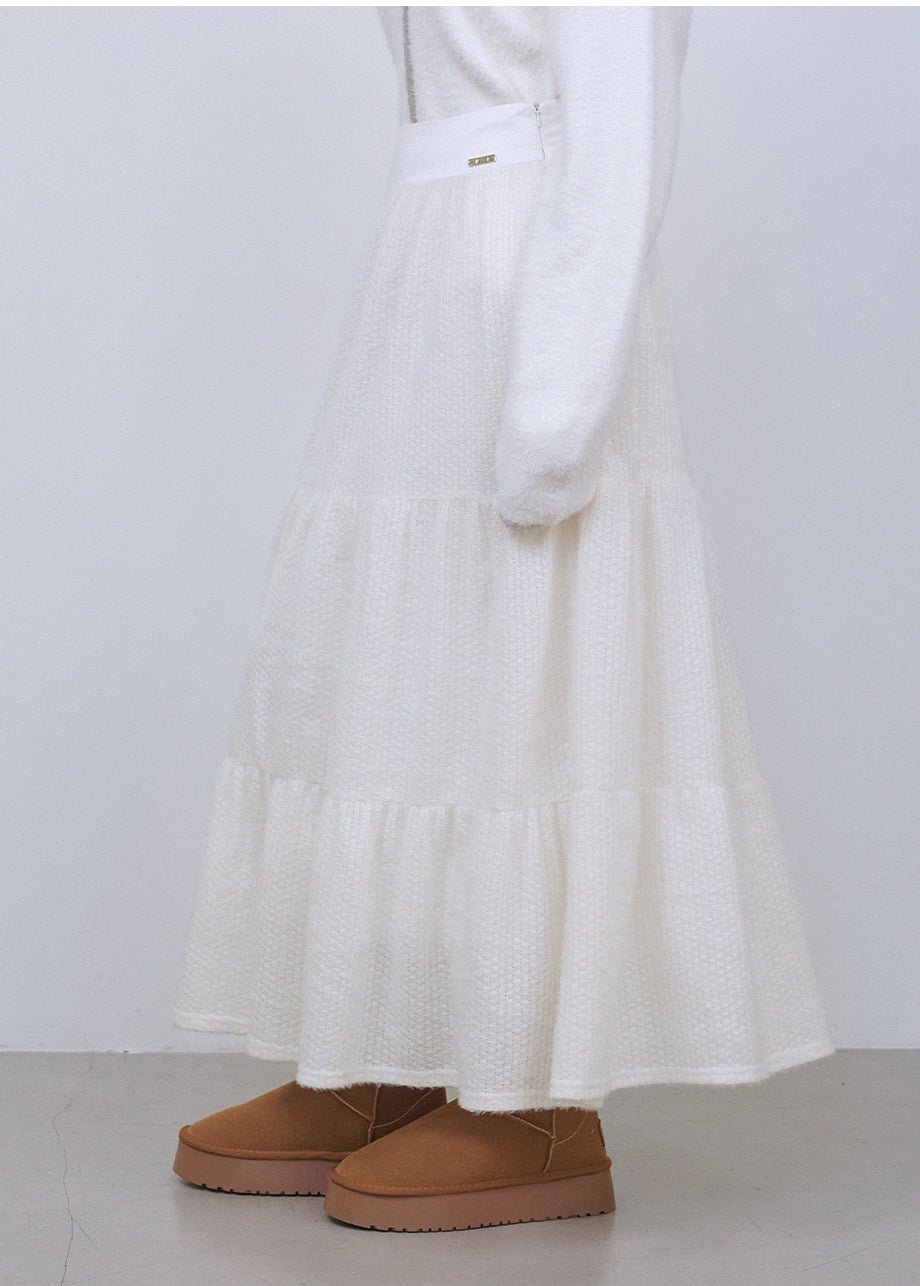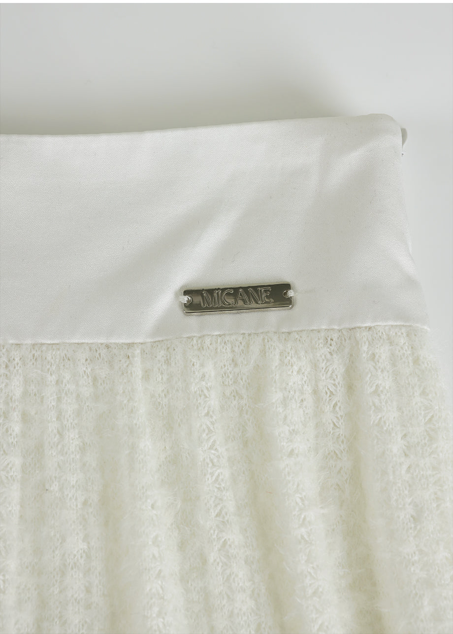 カジュアルヴィンテージムードのスカートです。柔らかくヘアリーなテクスチャーのニット素材を使用し、シーズンムードとともに温かい着心地が特徴です。肌に触れるウエストライン部分には織り素材で配色を施し、刺激なくしっかりとホールドできるよう仕上げました。裏地が付いており、快適な着用をサポートします。ロング丈のキャンキャンデザインで、ラブリーヴィンテージなムードを演出できます。ウエストサイドにはペンダント風の装飾を加え、クオリティ高く仕上げました。*装飾や特殊なデザインが施された製品のため、クリーニング専門店でのお手入れをおすすめいたします。