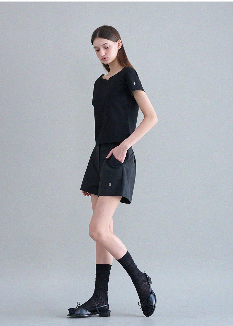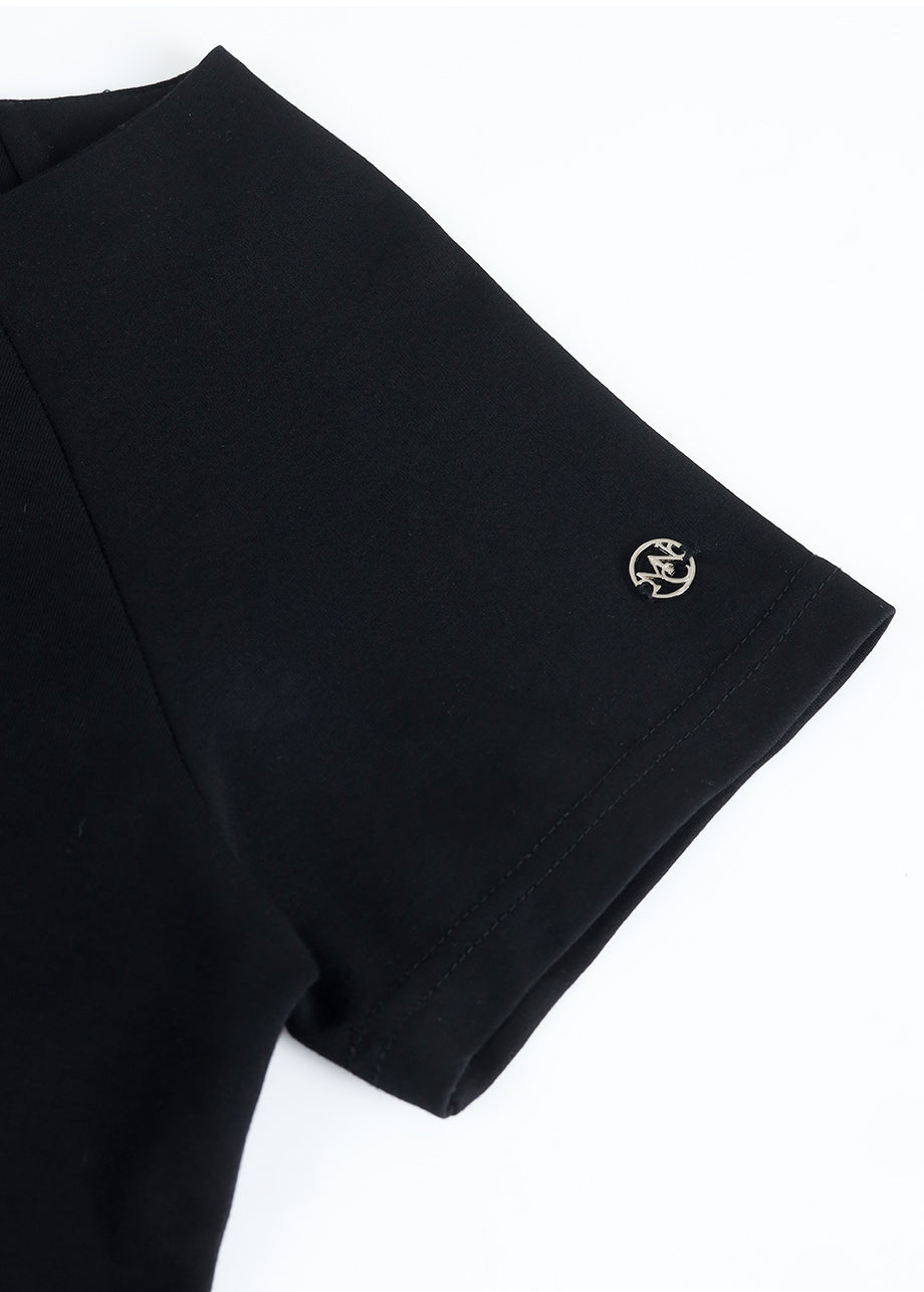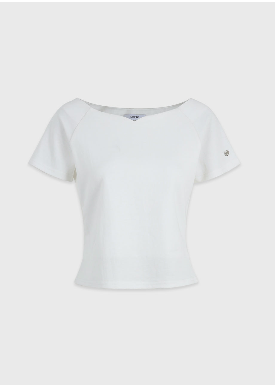 クラシックな感性のTシャツです。デコルテラインをきれいに演出し、フェミニンなスタイリングが可能です。1枚でもスタイリッシュな印象に仕上がります。*装飾が施された製品のため、クリーニング専門店でのお手入れをおすすめいたします。