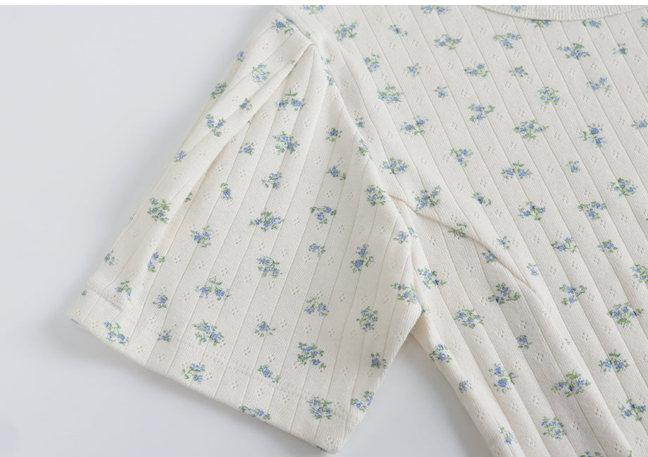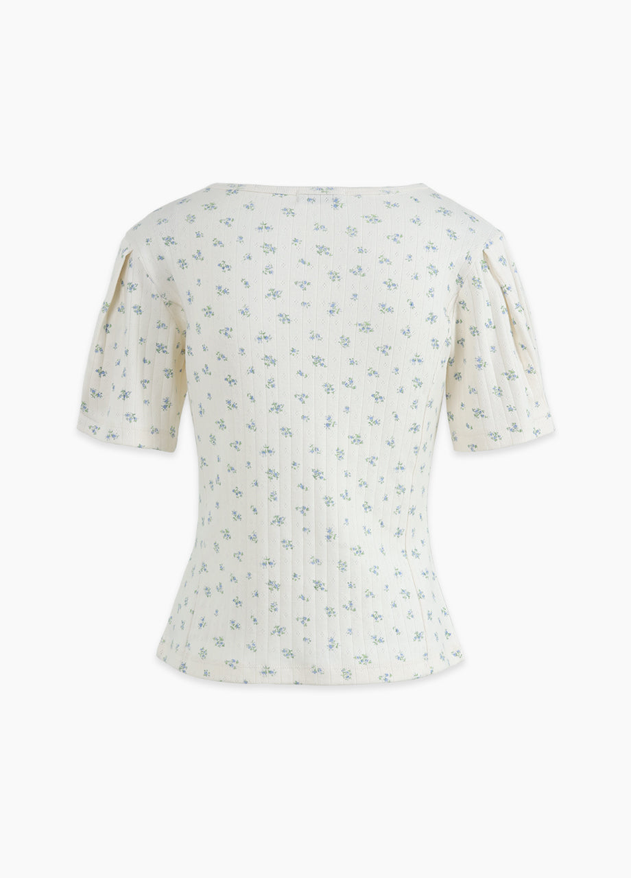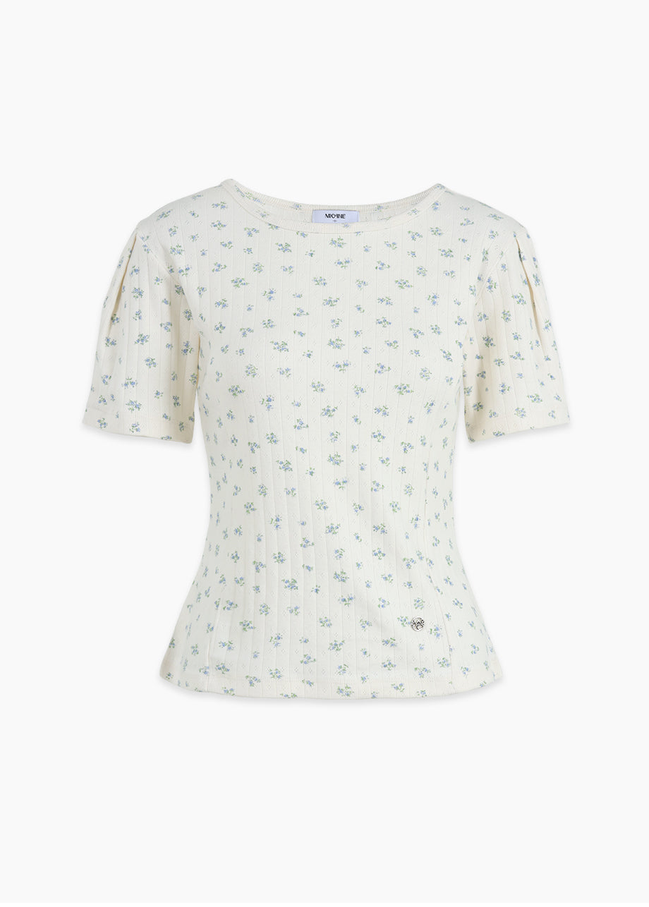 ラブリーでデイリーなムードのTシャツです。柔らかく伸縮性のある素材を使用し、クオリティを高めました。さり気ないフラワーパターンがポイントとなり、シンプルすぎない着こなしが可能です。