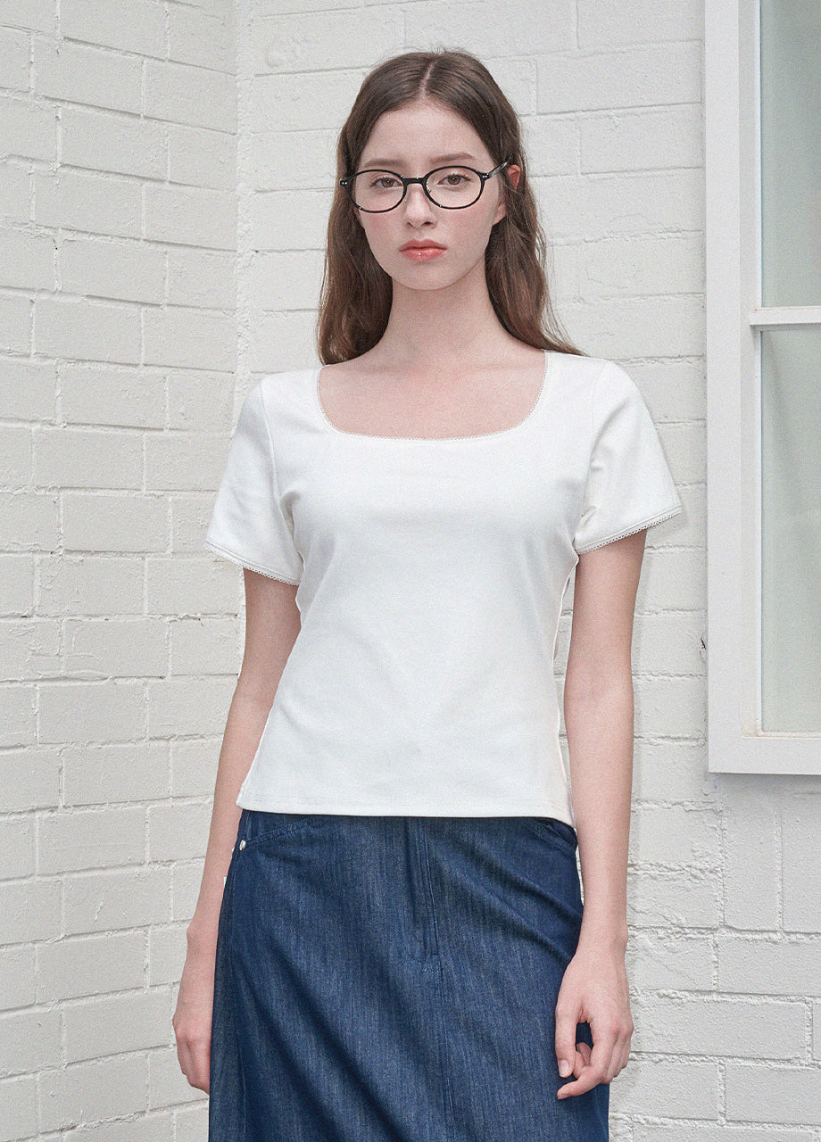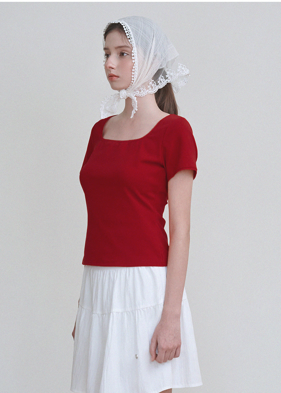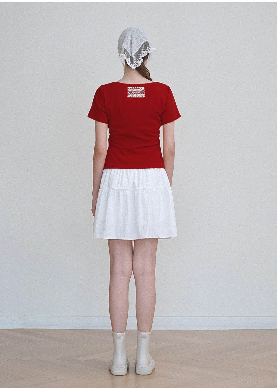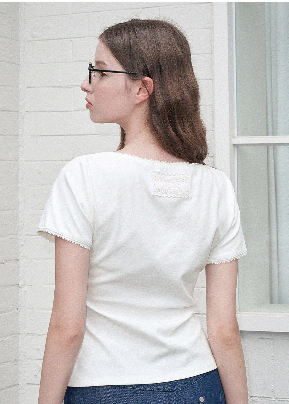 ヴィンテージムードの半袖Tシャツ。スリムなフィット感とレースのネックラインがさりげないフェミニンさを引き立てます。*装飾が施された製品のため、クリーニング専門店でのお手入れをおすすめいたします。やむを得ず洗濯機をご使用の際は、ネットに入れて冷水で洗濯することをおすすめいたします。