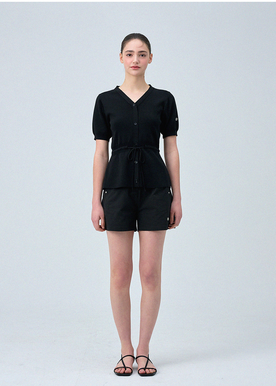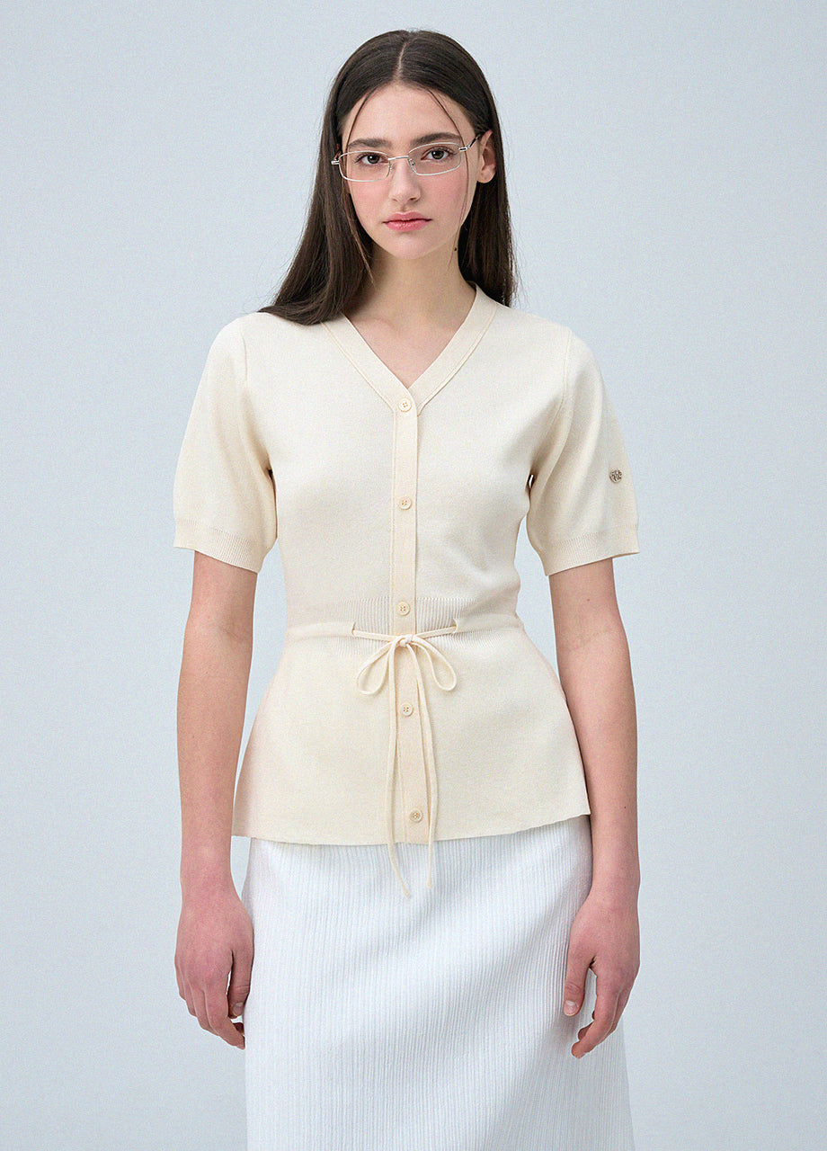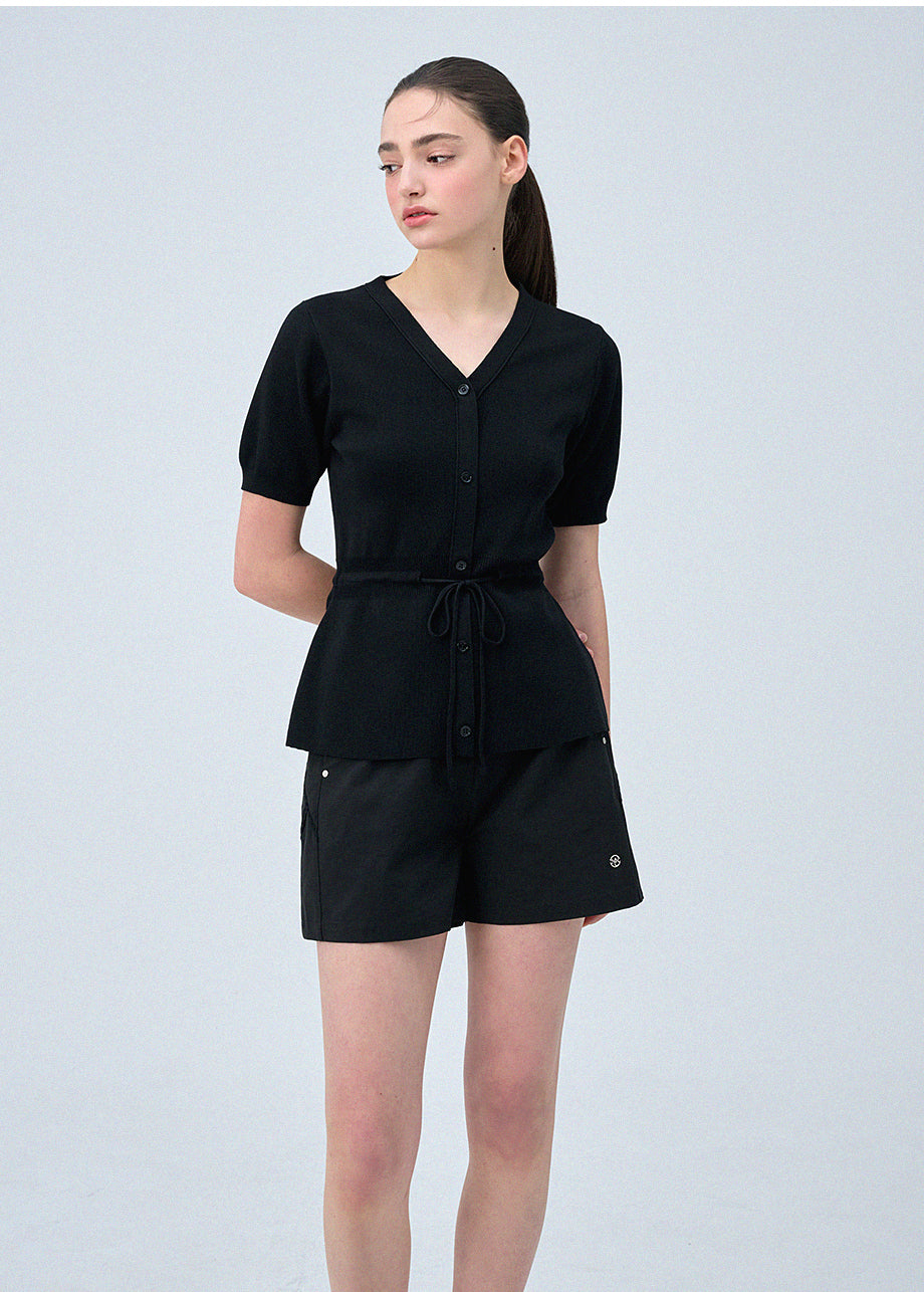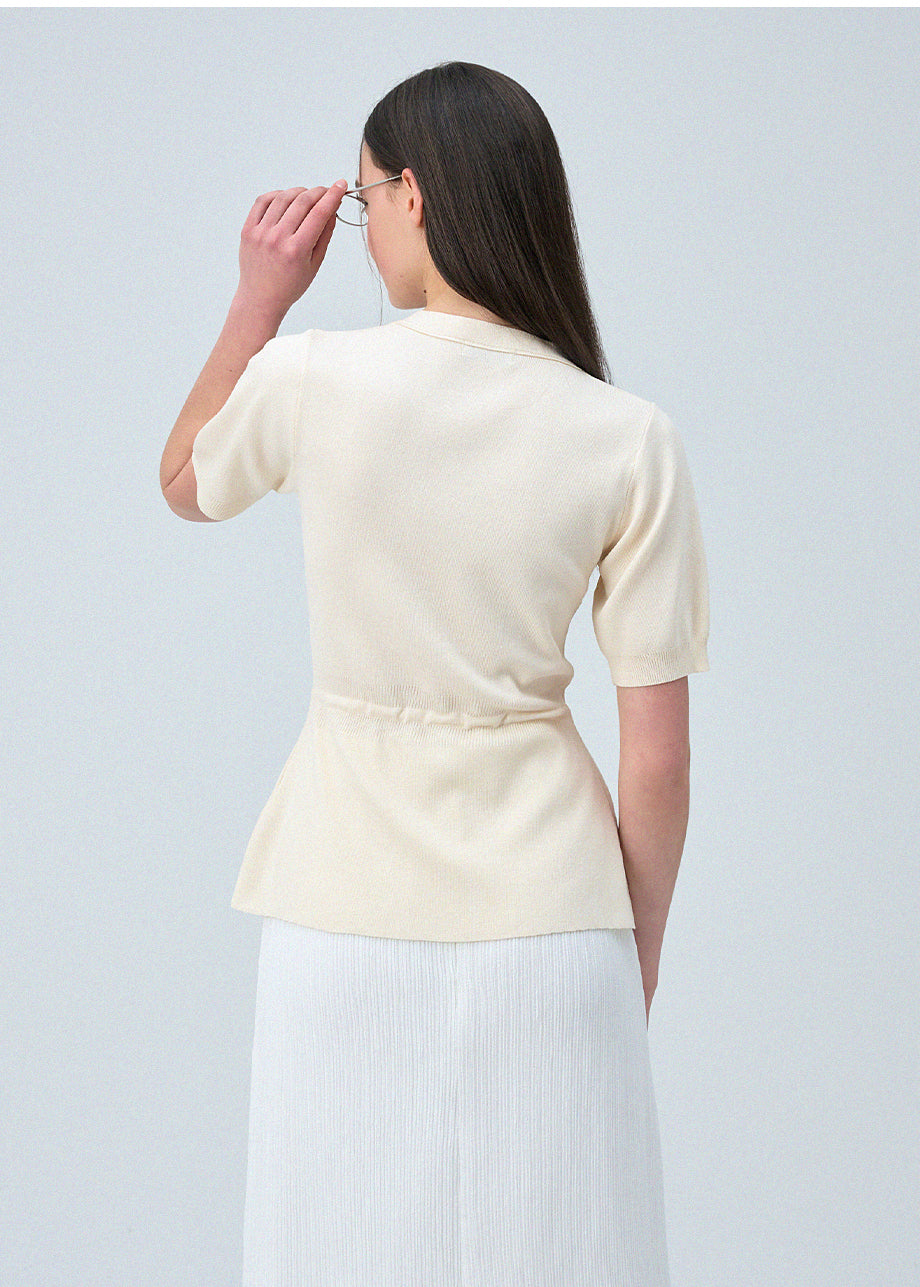 クラシックな感性のあるニットです。Vネックデザインにヒップを覆う丈感で気軽に着用できます。調整可能なウエストストリング入りのフレアシルエットが、体型カバーとスリムなラインを演出します。*装飾が施された製品のため、クリーニング専門店でのお手入れをおすすめいたします。