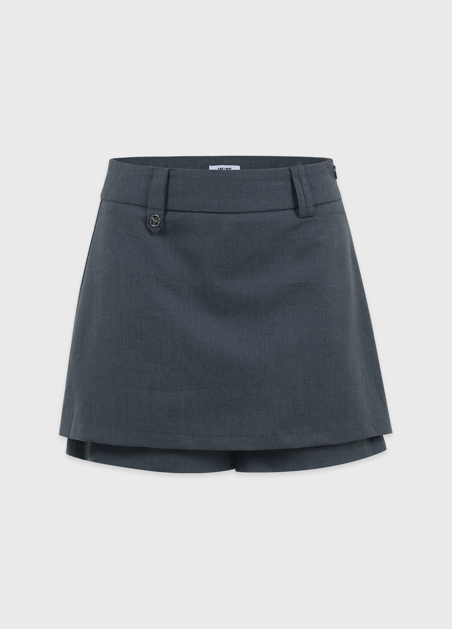 ビンテージフェミニンムードのスカートパンツです。耐久性に優れた生地で制作され、シルエットが崩れにくく、快適な着心地が特徴です。ローライズのショートパンツの上にミニスカートがレイヤードしたスタイルでトレンディかつ過度な肌見せの心配もなく着こなせる一着です。3回以上の修正を重ね、キレイなAラインのシルエットを演出し、どんな体型の方でもフィット感に悩まず着用いただけます。様々なトップスやアウターとのコーディネートもおすすめです。アンバランスなベルトループデザインにペンダントディテールと加えてクォリティーを高め、ユニークに仕上げました。*装飾が施された製品のため、クリーニング専門店でのお手入れをおすすめいたします。