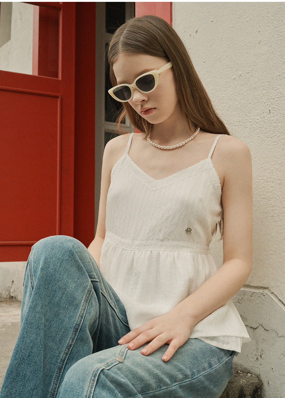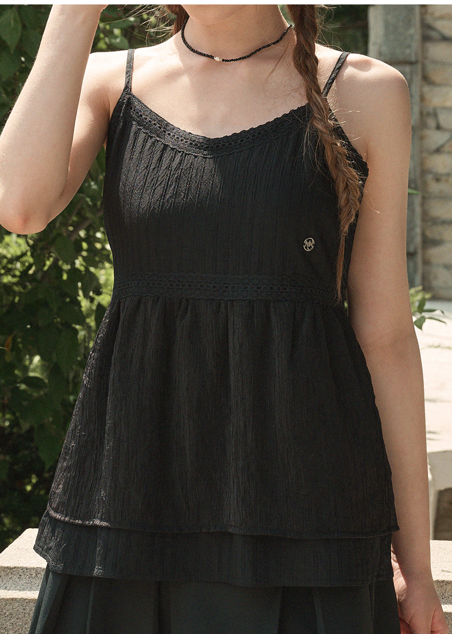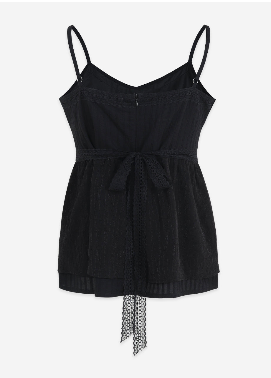 ラブリームードで着用できるビスチェです。柔らかな肌触りと軽さを感じる繊細なパターン生地と、さりげないグリッター入りの配色素材をミックスし、1枚でムードのあるスタイルに仕上がります。