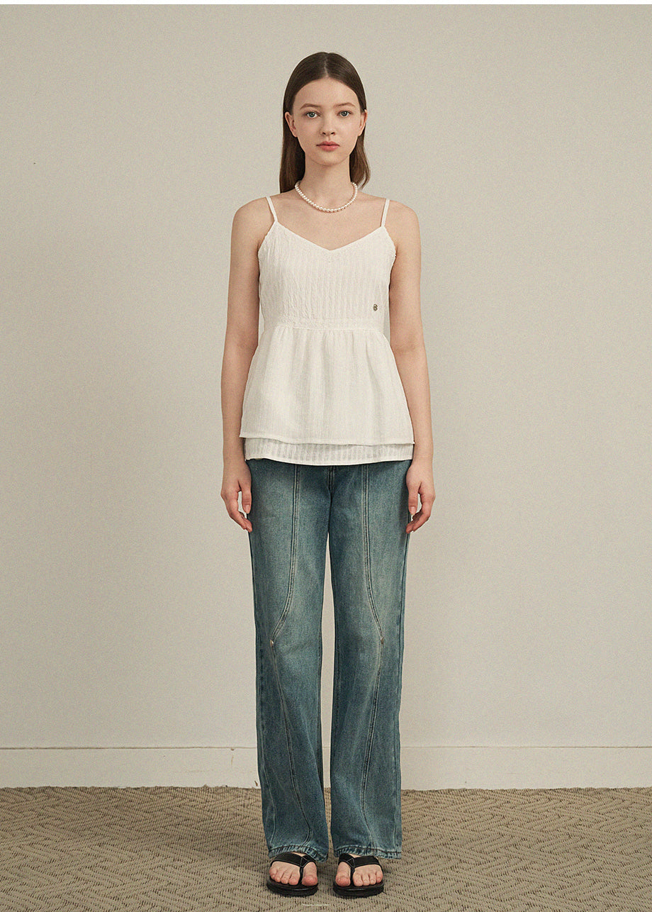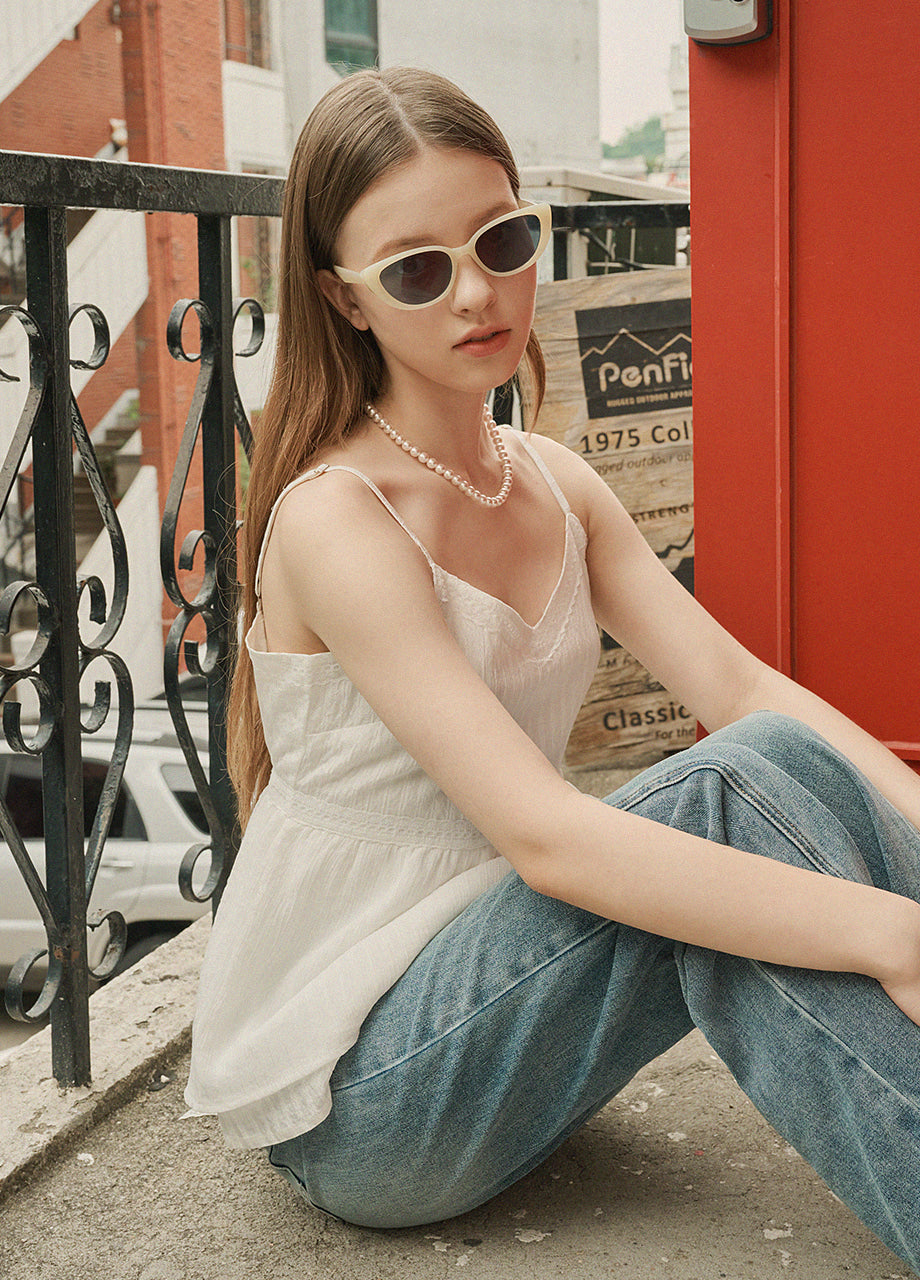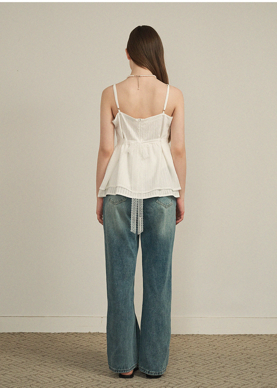 ラブリームードで着用できるビスチェです。柔らかな肌触りと軽さを感じる繊細なパターン生地と、さりげないグリッター入りの配色素材をミックスし、1枚でムードのあるスタイルに仕上がります。