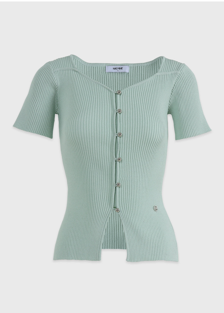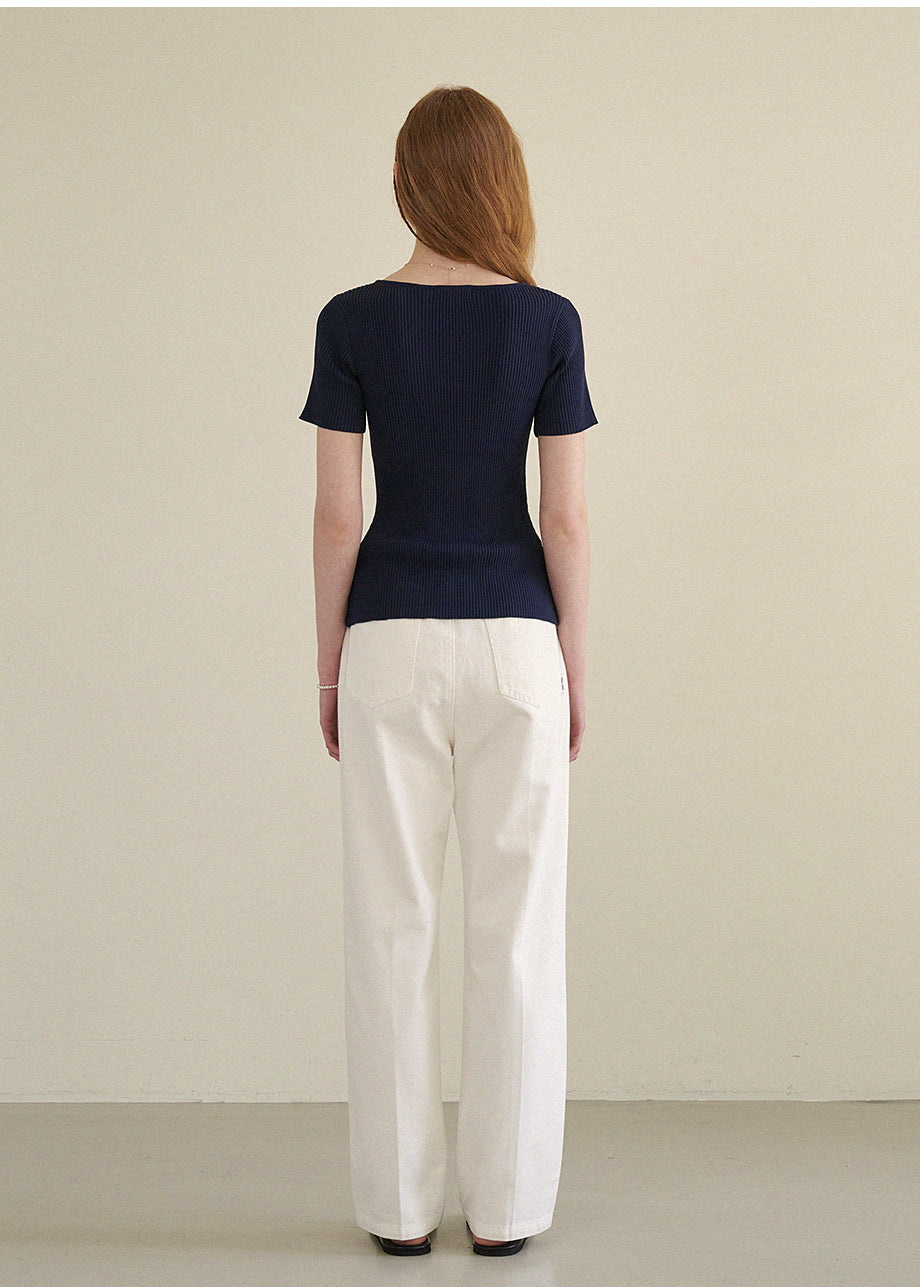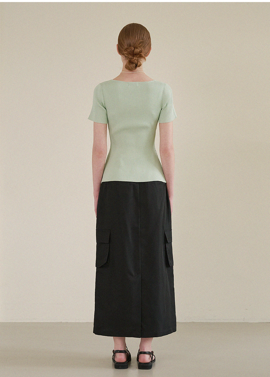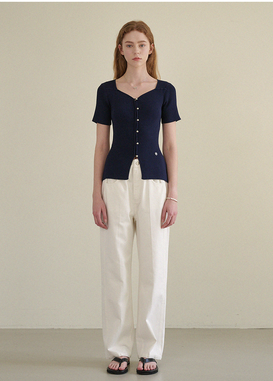 フェミニンでデイリーなムードのニットです。スクエアハートネックラインが華奢さとラブリーさを演出し、デコルテと首元を美しく見せてくれます。