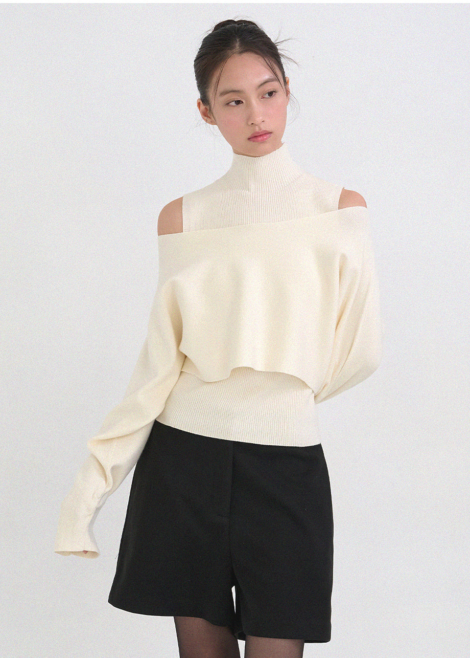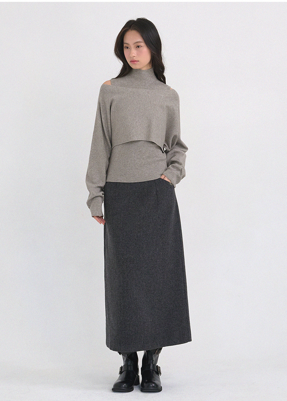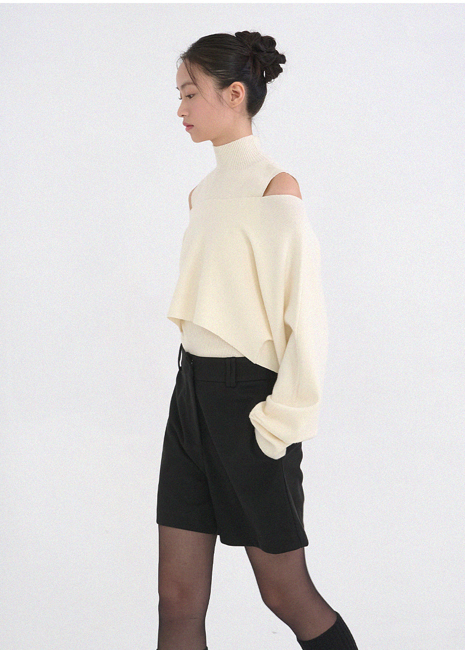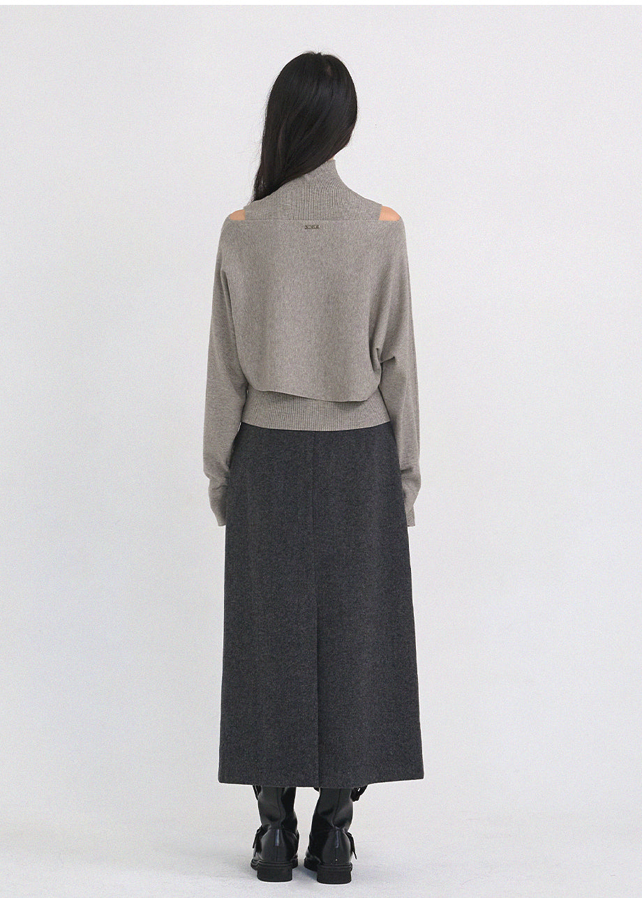 クラシックでフェミニンなムードのニットセットアップです。柔らかくしっかりとした高密度の糸を使用し、刺激のない暖かく快適な着心地が特徴です。タートルネックのノースリーブニットとボートネックのクロップドニットがセットになっており、着用するだけで上品で洗練されたムードを演出します。袖口のシャーリングディテールで華奢な雰囲気をプラスし、アウターのインナーとしてもポイント使いにおすすめです。季節感にマッチするデザインで、FWシーズンのフォーマルルックやオフィスルックなど幅広く活用できます。背面ネック中央のペンダント装飾で上質に仕上げました。*装飾が施された製品のため、クリーニング専門店でのお手入れをおすすめいたします。