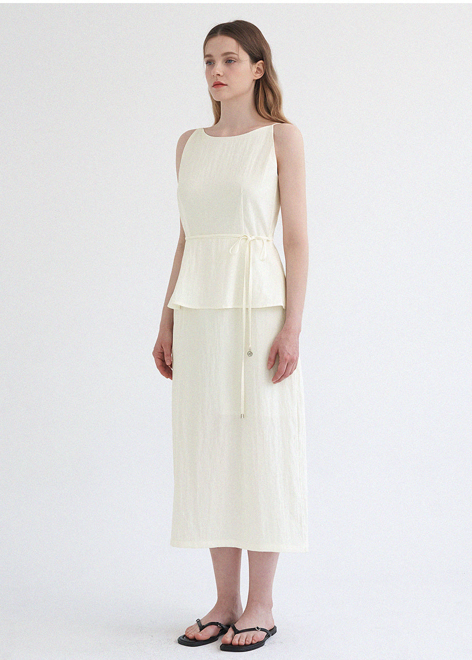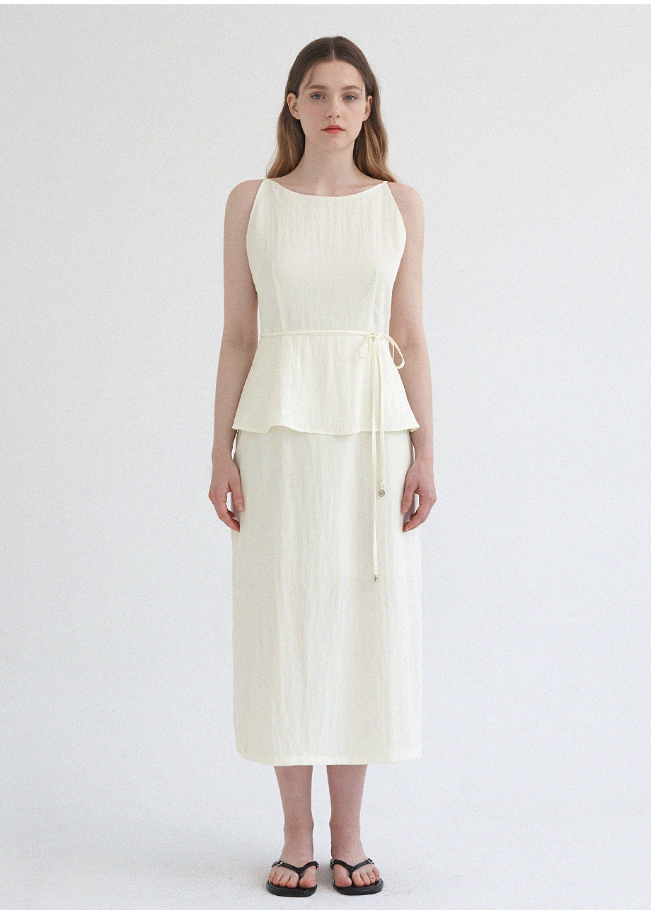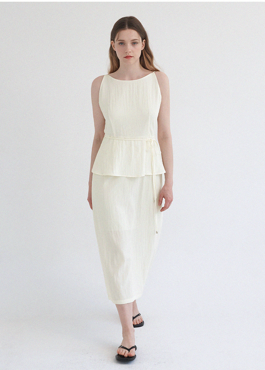 クラシックでフェミニンなムードのノースリーブロングワンピースです。レイヤード風のデザインが一枚でもコーデを完成させてくれます。*装飾が施された製品のため、クリーニング専門店でのお手入れをおすすめいたします。