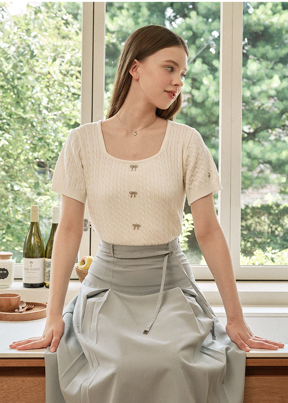 ラブリーでデイリーなムードのニットTシャツです。しっかりと編み込まれた夏用素材で、フィット感とクオリティを高めました。