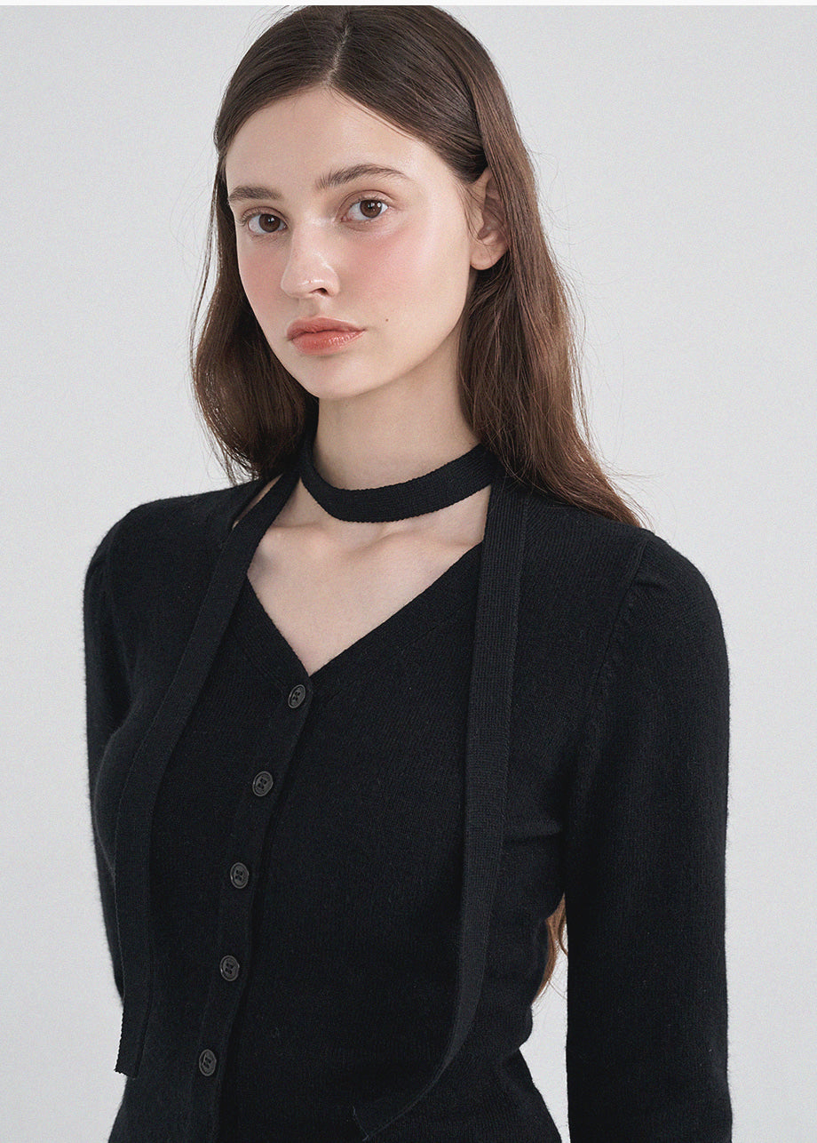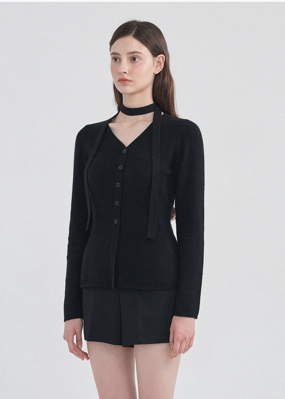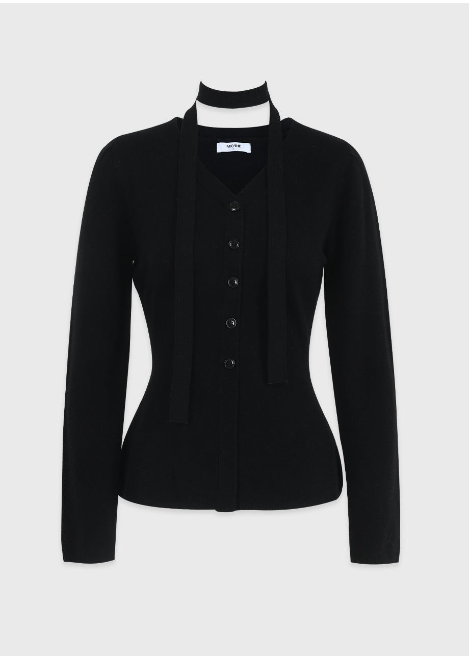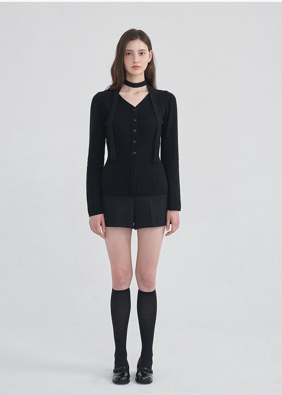 クラシックフェミニンムードのニットです。上質な天然繊維として知られるアンゴラとウールをブレンドした柔らかい素材で上品な着心地が特徴。セットのタイストラップで様々なスタイリングが楽しめます。Vネックデザインにフェイクボタンディテールを加えてクラシックなムードも演出できます。ウエストのラインを整えて裾のペプラムデザインで制作され、体型をカバーしつつ、よりスリムな着こなしを叶えてくれます。肩のピンタックがおしゃれなポイントになり、ネック後ろ中央にはペンダントで装飾を施し、上品に仕上げました。*装飾が施された製品のため、クリーニング専門店でのお手入れをおすすめいたします。ご注意:濃色に白い毛が見える場合がありますが、天然素材の特性であり、不良品ではございません。